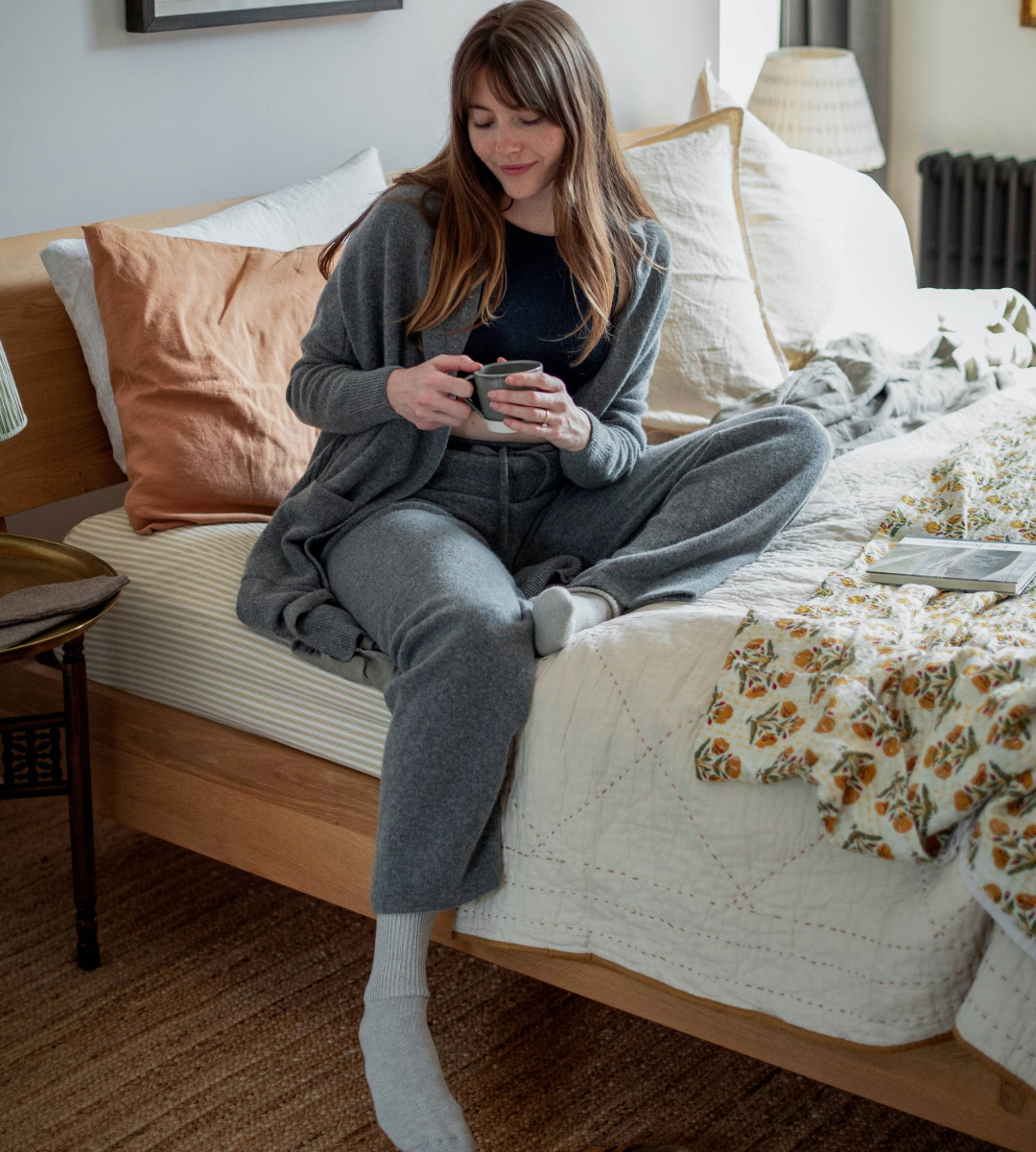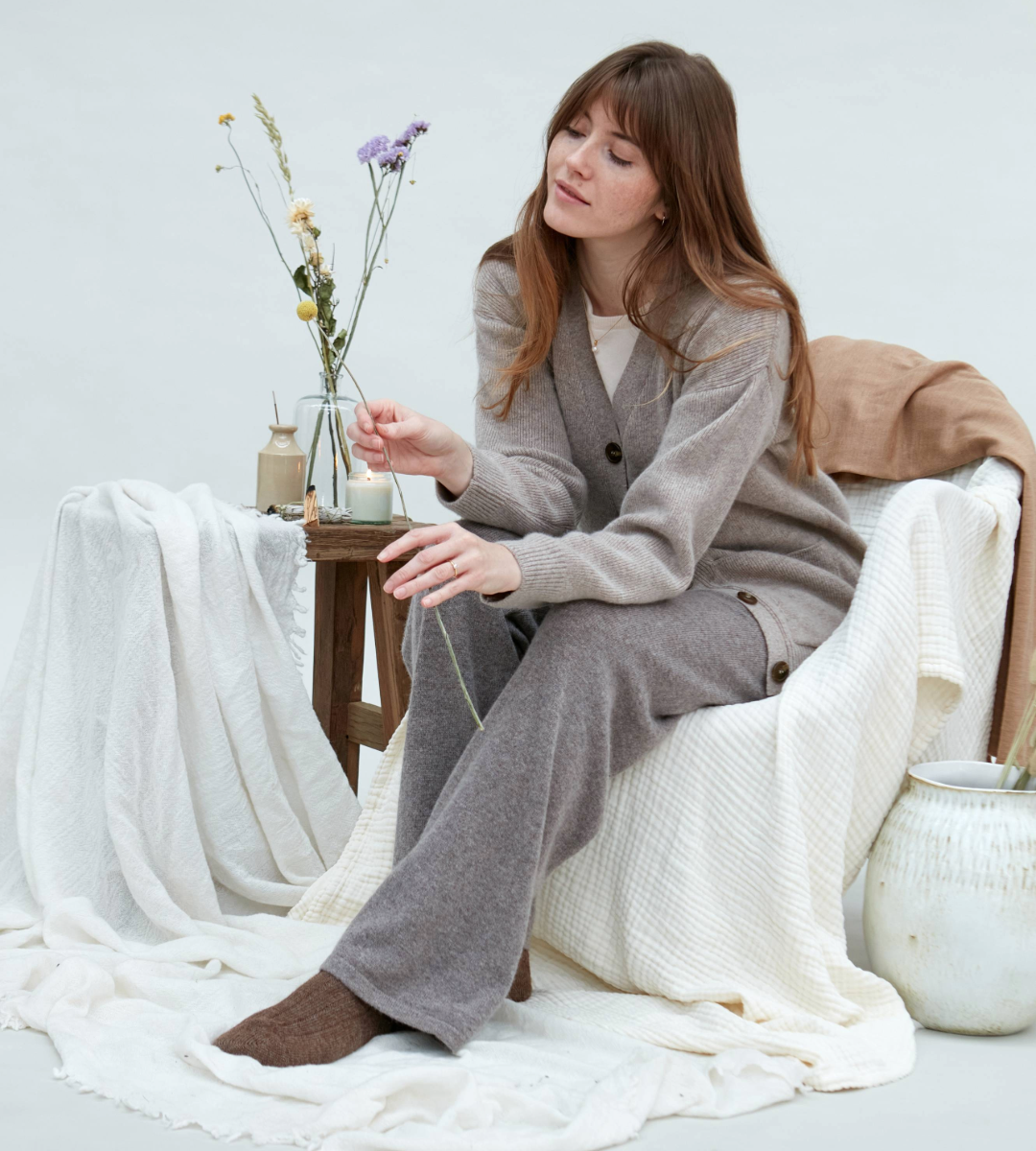 We knit, sew, wash, steam and press over 95 percent of our products in our own factories. This means that we are in control of the entire process, with no middlemen. Our yarns are spun by our carefully handpicked spinners, crafted by our teams in England and India, then delivered directly to our customers from our Leicestershire factory.