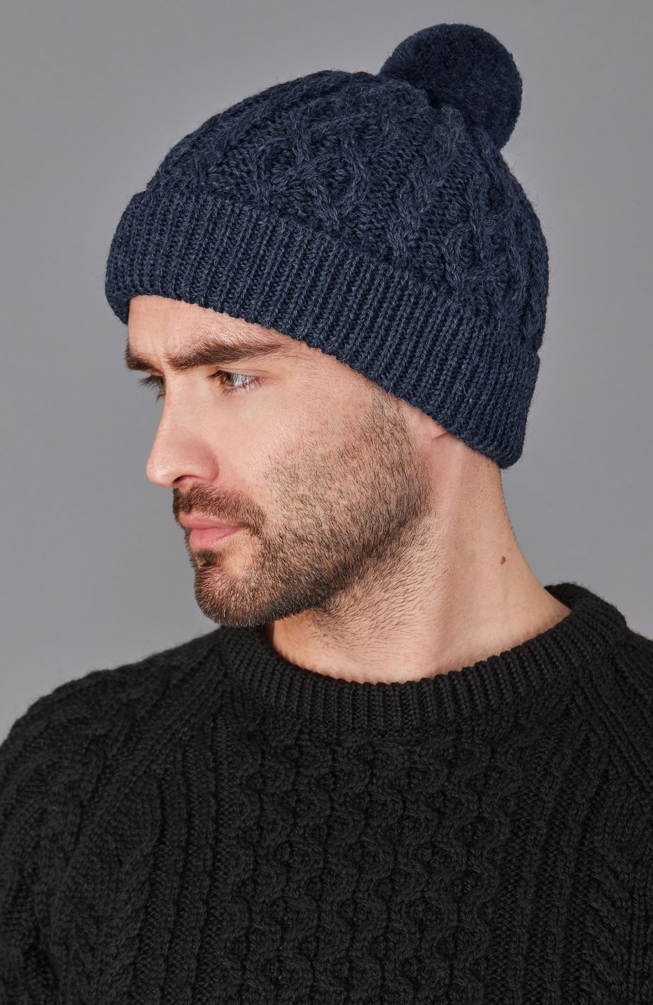 Warme Aran-Zopfmütze – hergestellt in Großbritannien