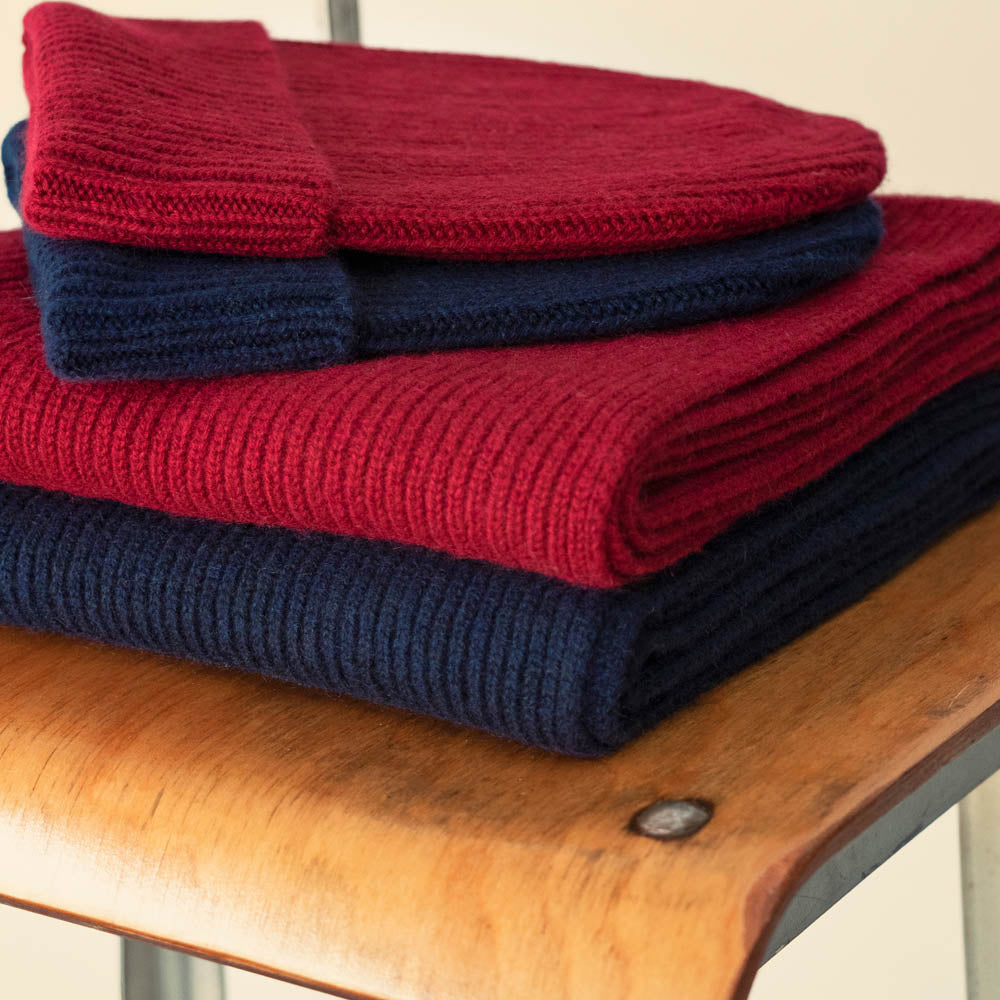Geschenkset aus gerippter Mütze und Schal aus 100 % Kaschmir