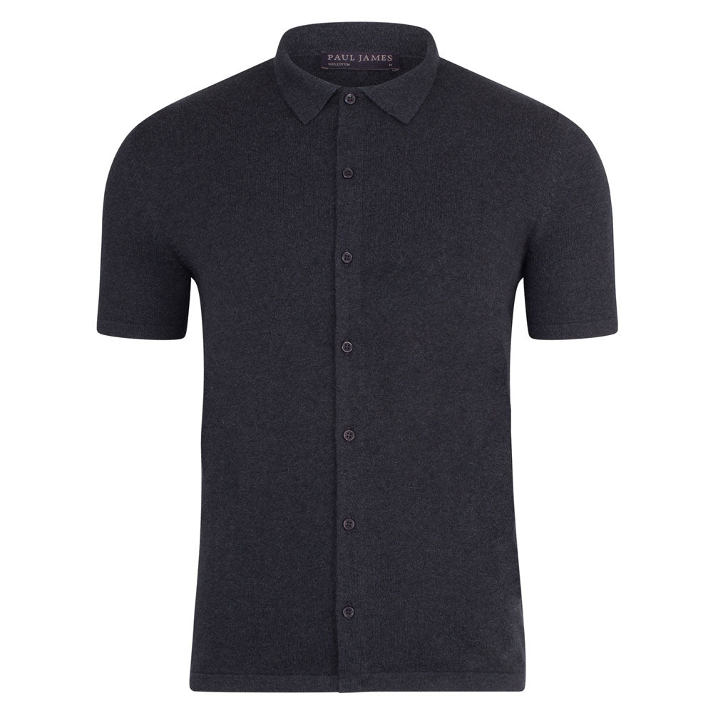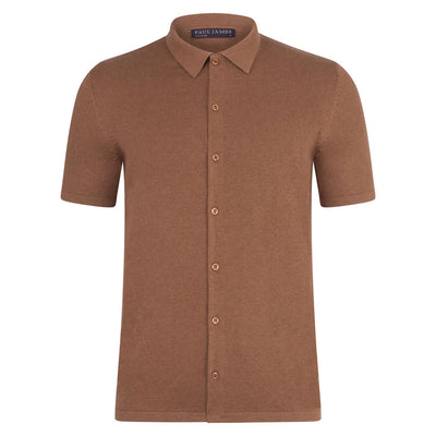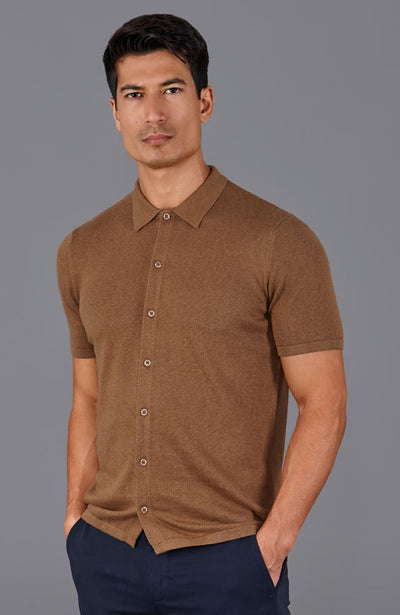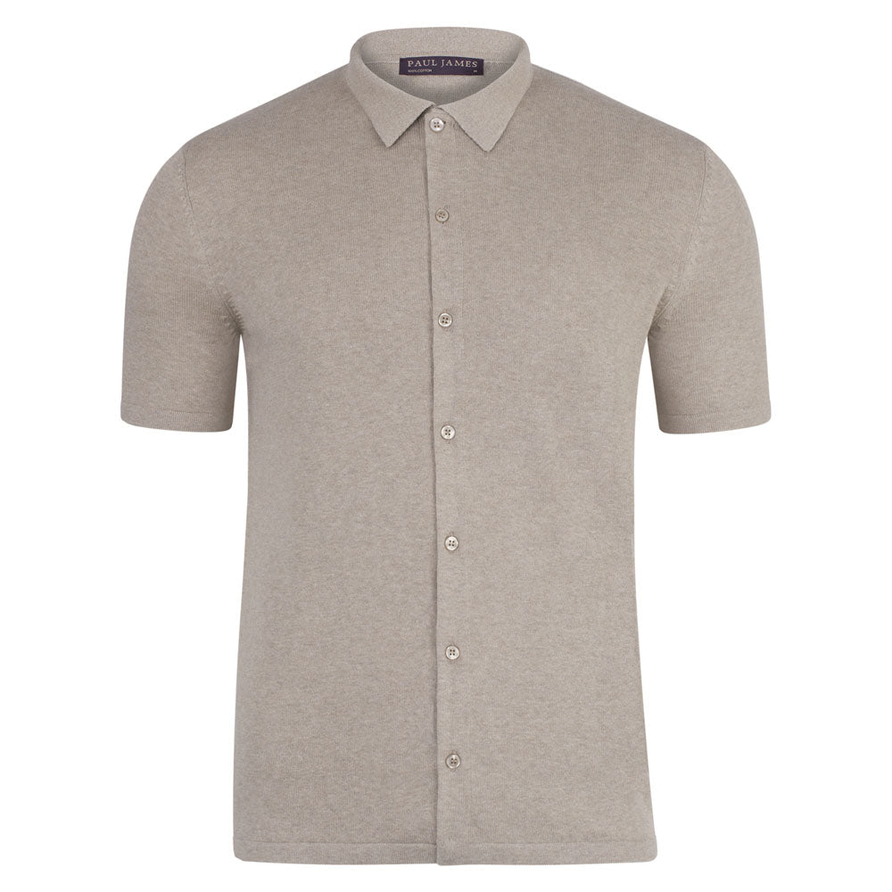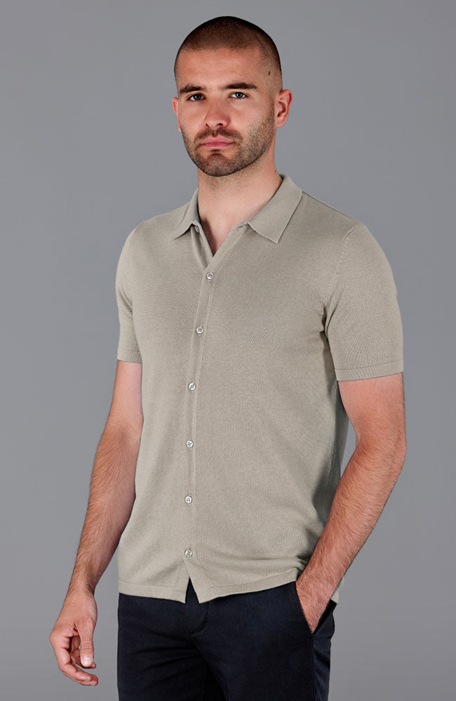 Kurzärmliges, durchgeknöpftes Strickhemd aus 100 % Baumwolle