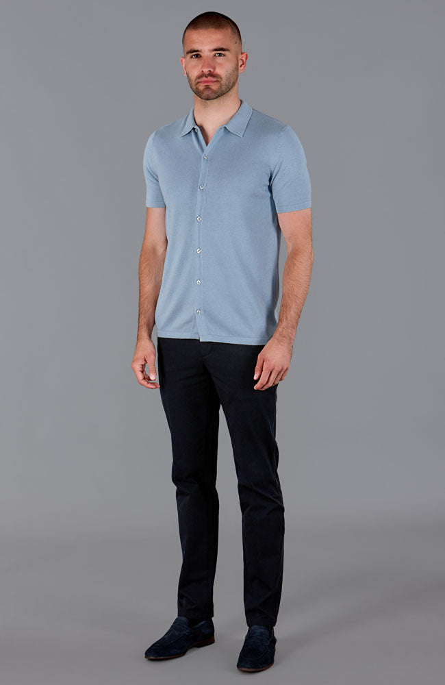 Veredeln Sie Ihren Frühlings-Sommer-Look mit seiner schmeichelnden regulären Passform und der klassischen glatten Strickstruktur. Marshall ist ein kurzärmliges Strickhemd aus 100 % Baumwolle. Perfekt in Kombination mit Chinos für ein nachmittägliches Mittagessen in der Kneipe oder in Kombination mit klassischem Schnitt für elegante, lässige Arbeitskleidung – dieser leichte Strick sieht mühelos elegant aus.