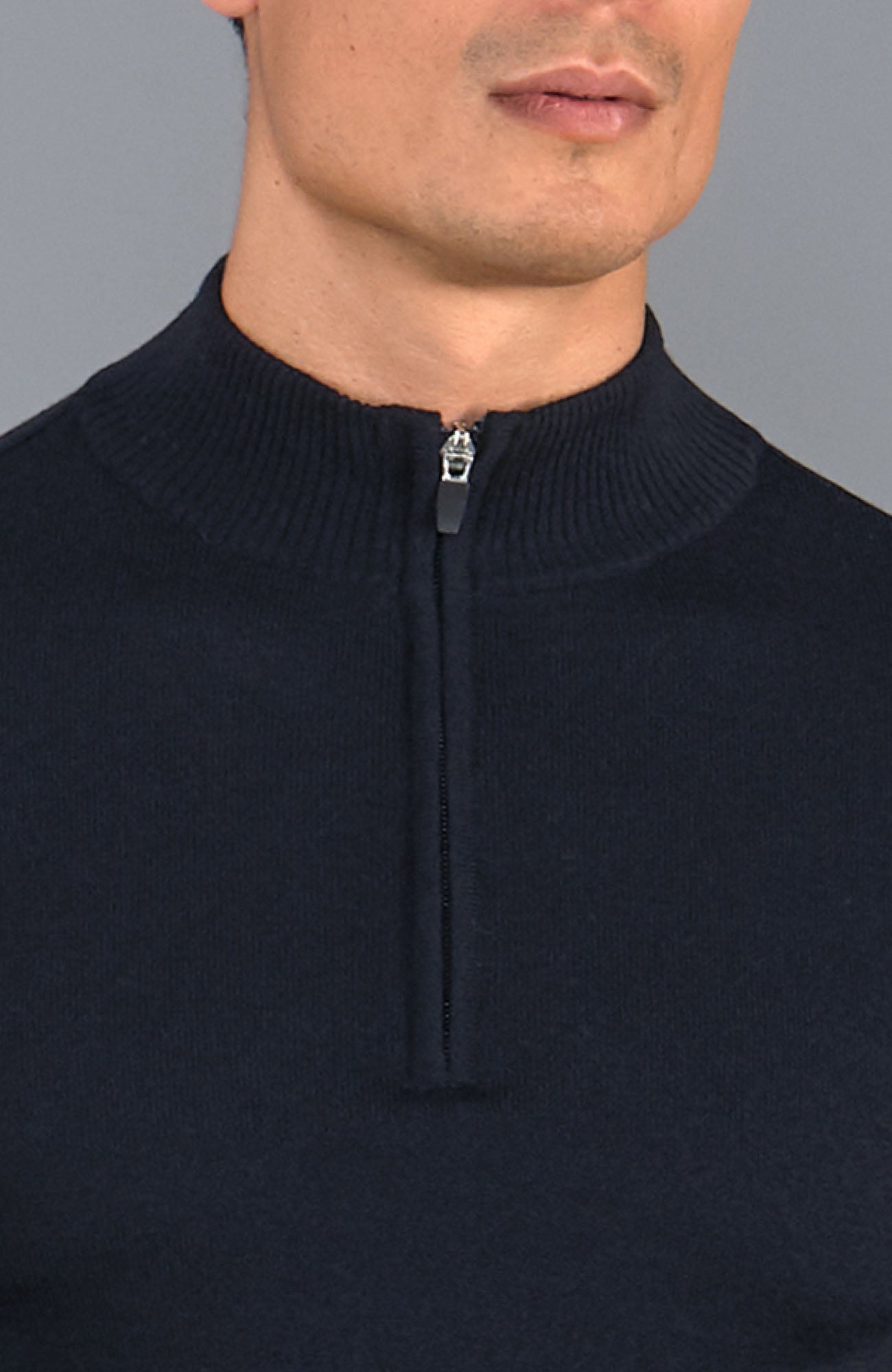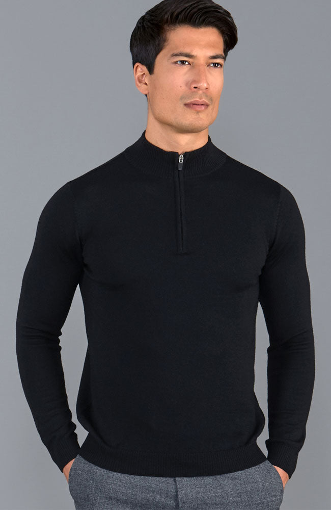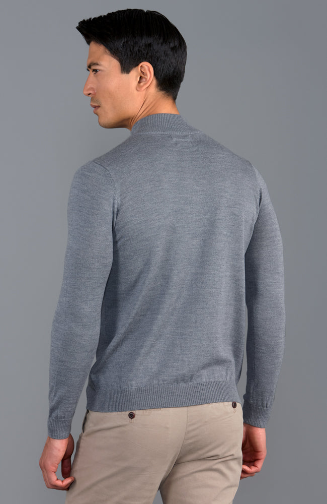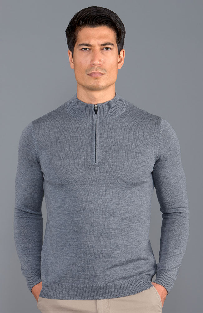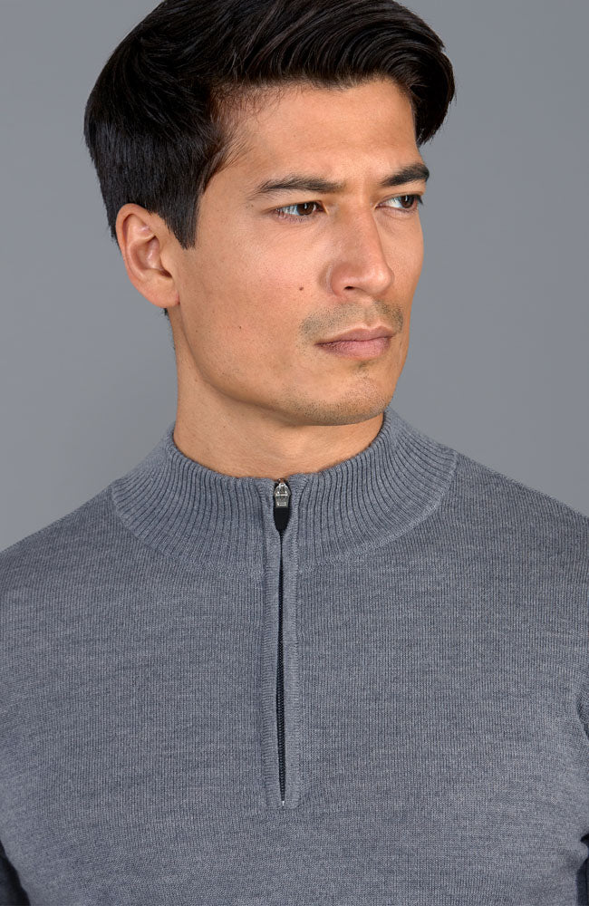 Extrafeiner Herrenpullover aus Merinowolle mit Viertelreißverschluss