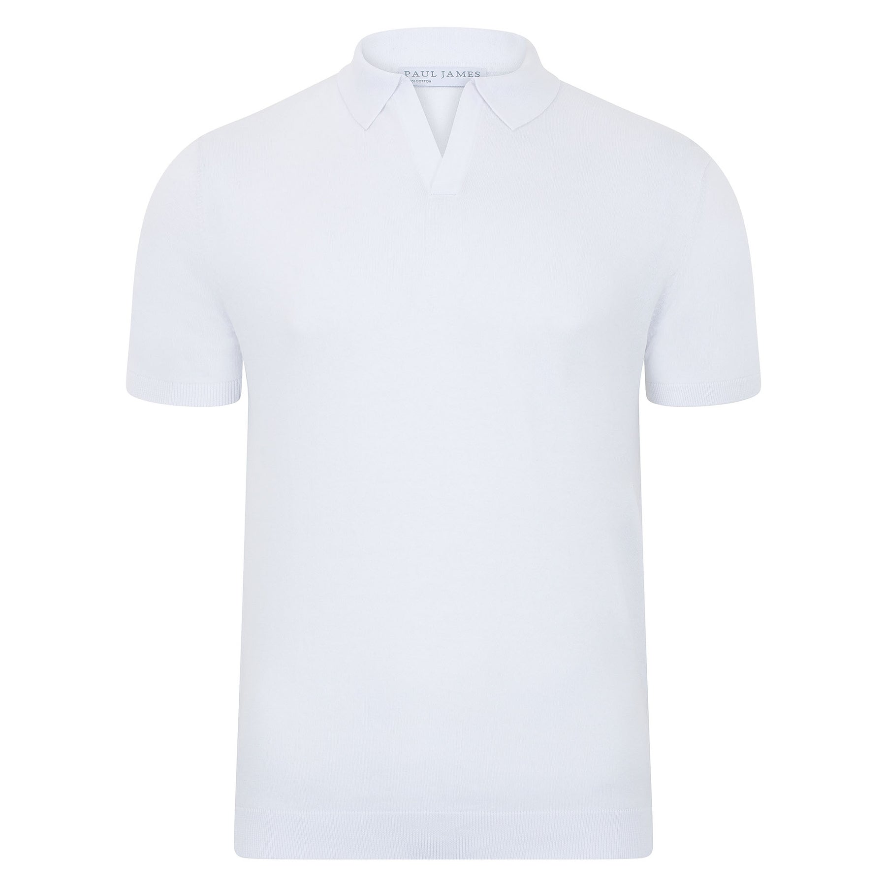 white mens buttonless polo shirt