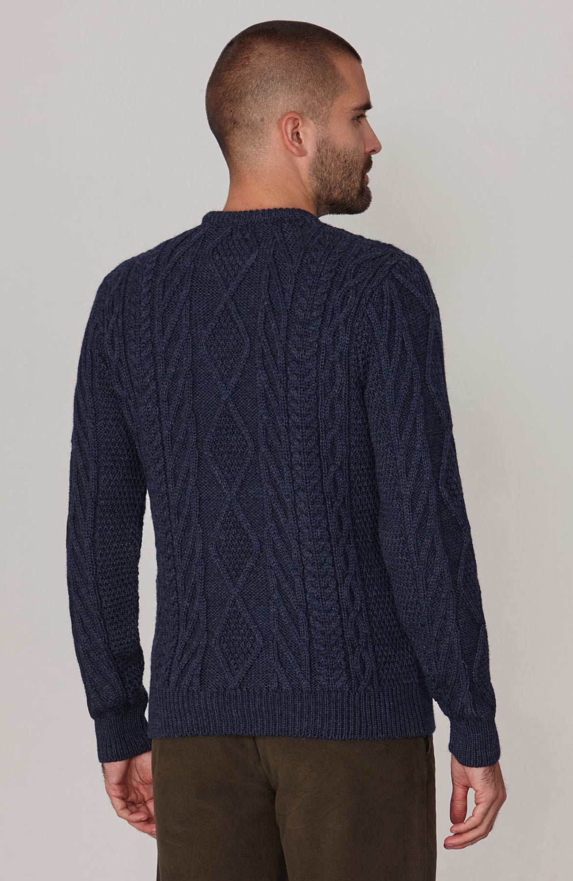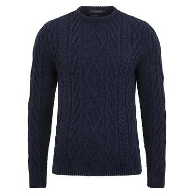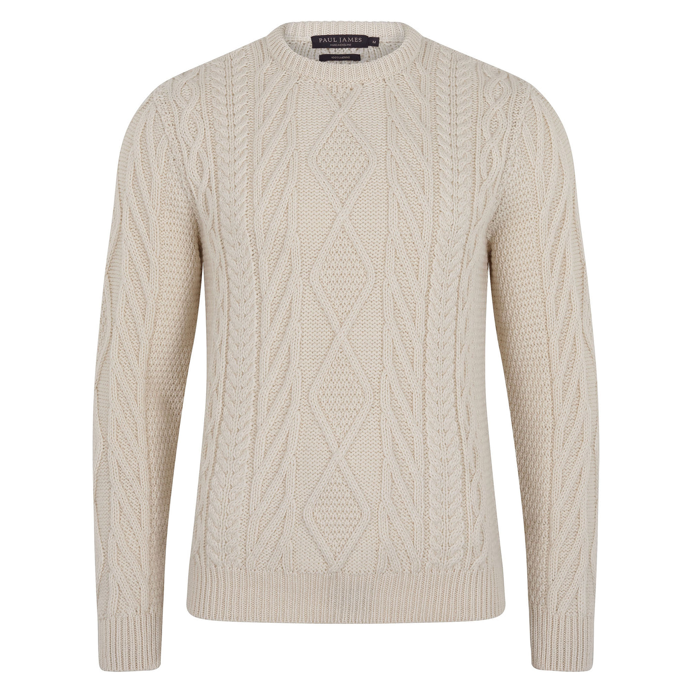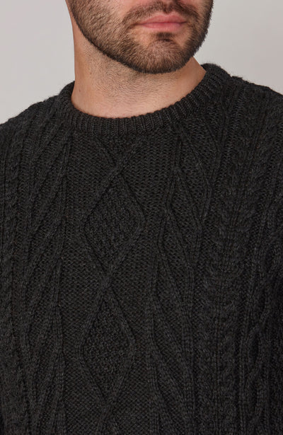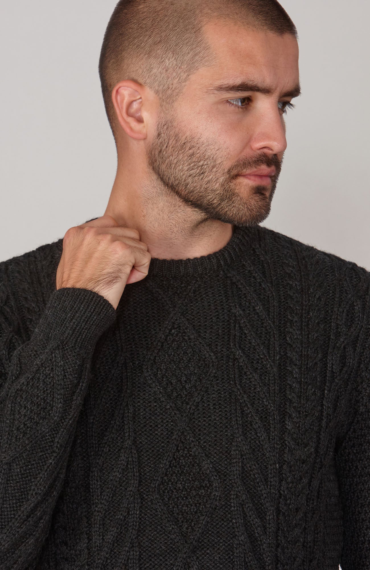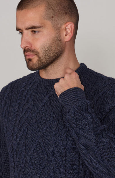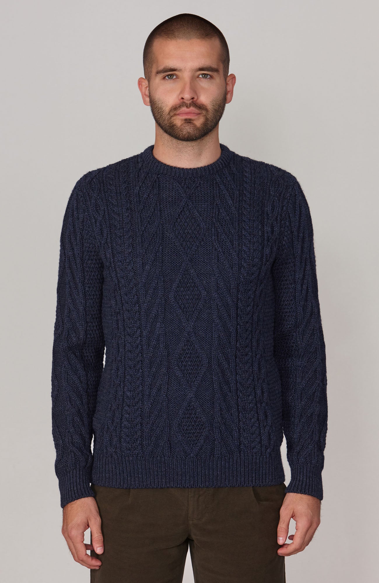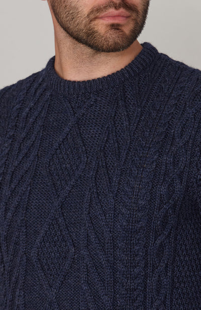 Cameron is a timeless heavyweight crew neck jumper, expertly crafted in our Leicestershire factory from super soft 100% Peruvian merino wool. Designed with intricate diamond and rope cable detailing, this sweater takes inspiration from heritage Aran knitwear, combining traditional stitch patterns with a modern silhouette. Perfect for cold weather, the insulating properties of chunky merino wool ensure exceptional warmth and comfort throughout the season.