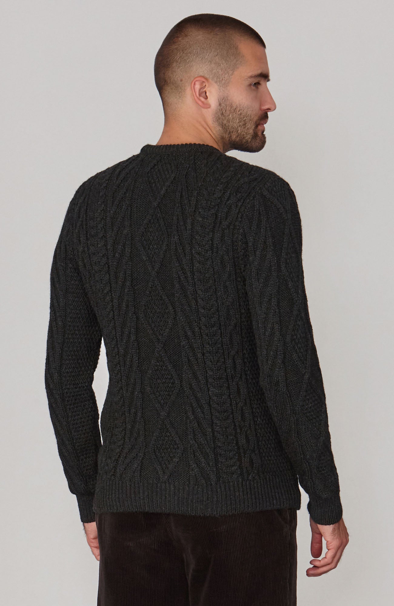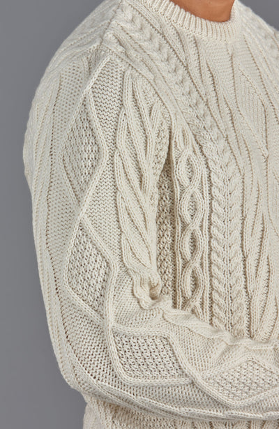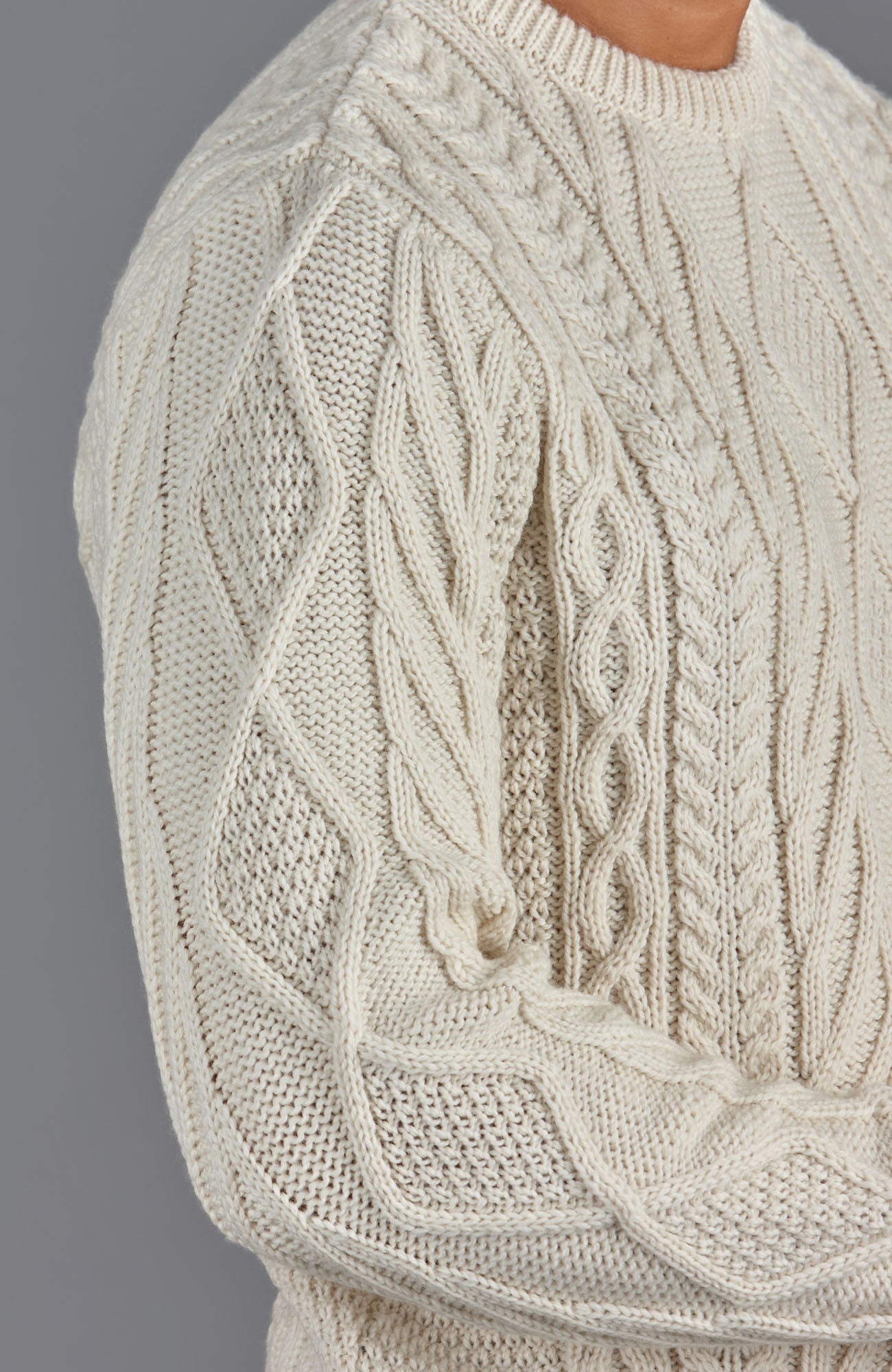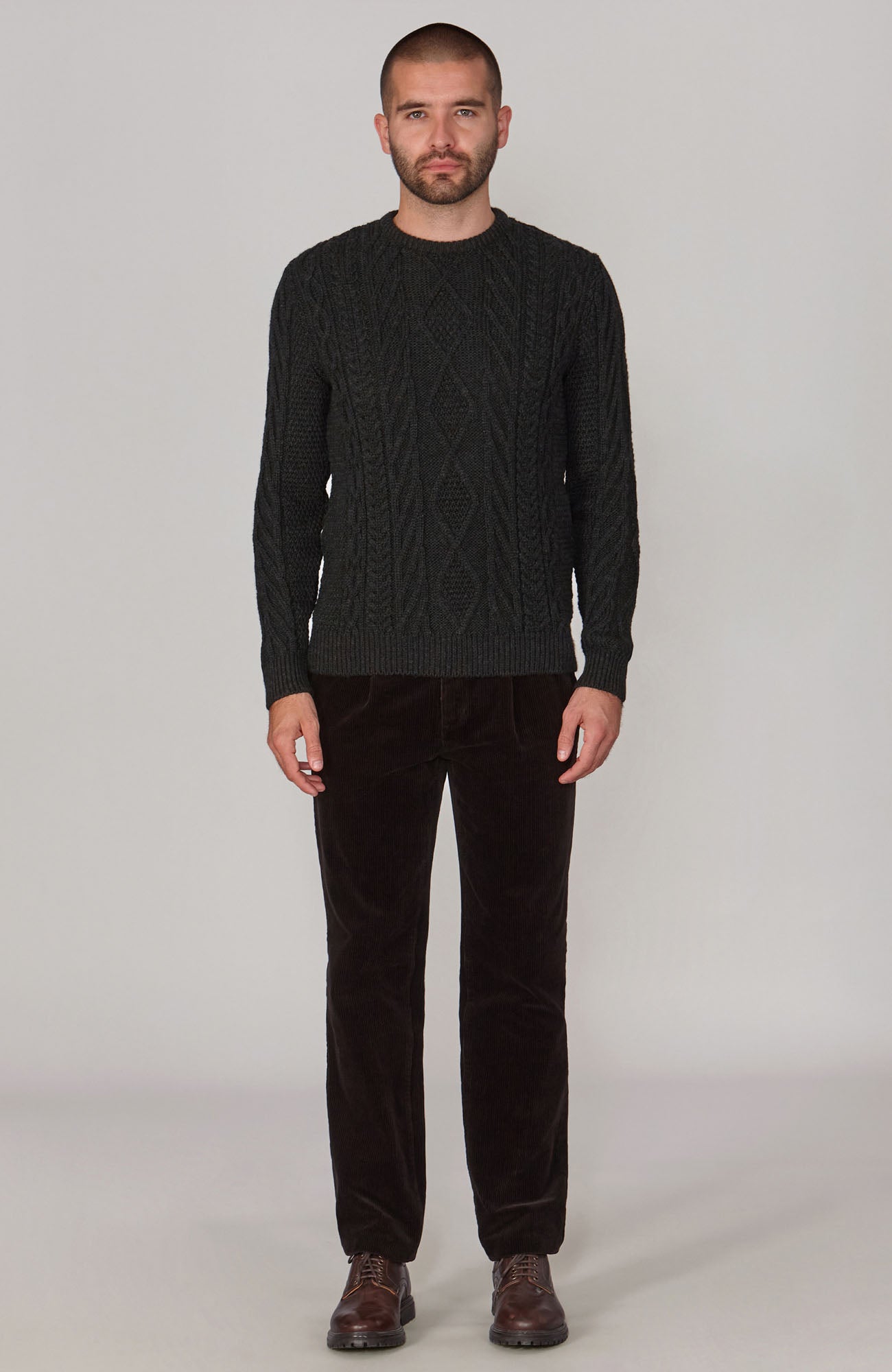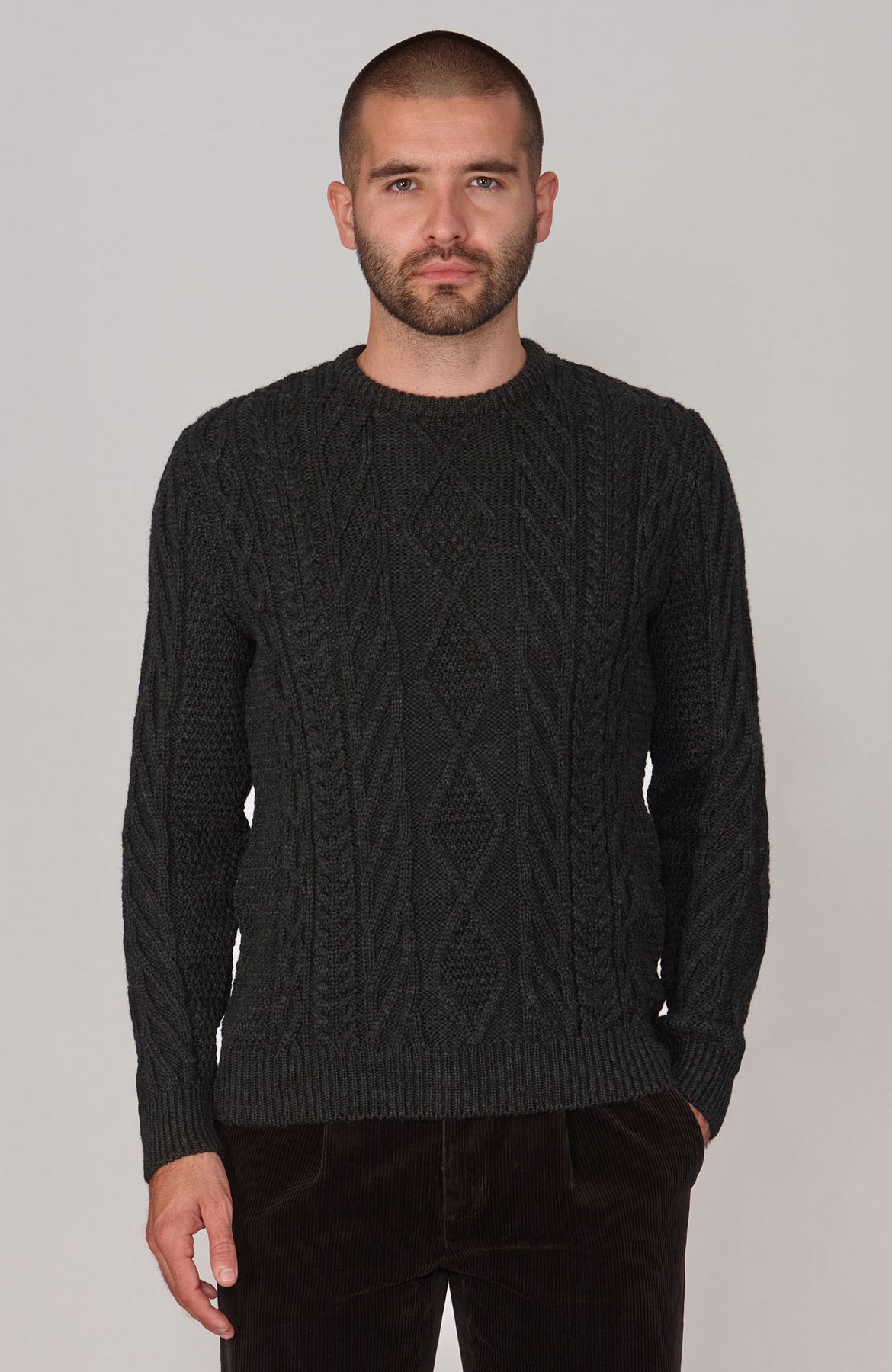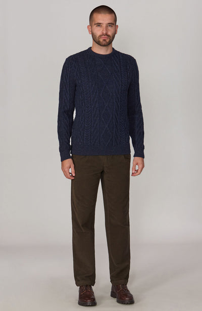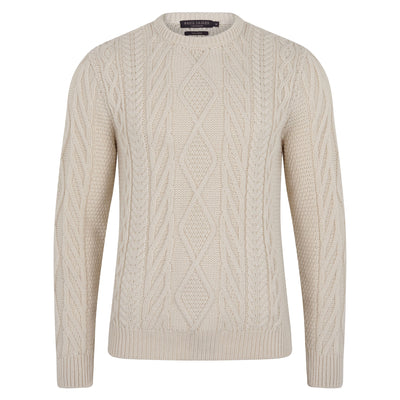 Cameron is a timeless heavyweight crew neck jumper, expertly crafted in our Leicestershire factory from super soft 100% Peruvian merino wool. Designed with intricate diamond and rope cable detailing, this sweater takes inspiration from heritage Aran knitwear, combining traditional stitch patterns with a modern silhouette. Perfect for cold weather, the insulating properties of chunky merino wool ensure exceptional warmth and comfort throughout the season.