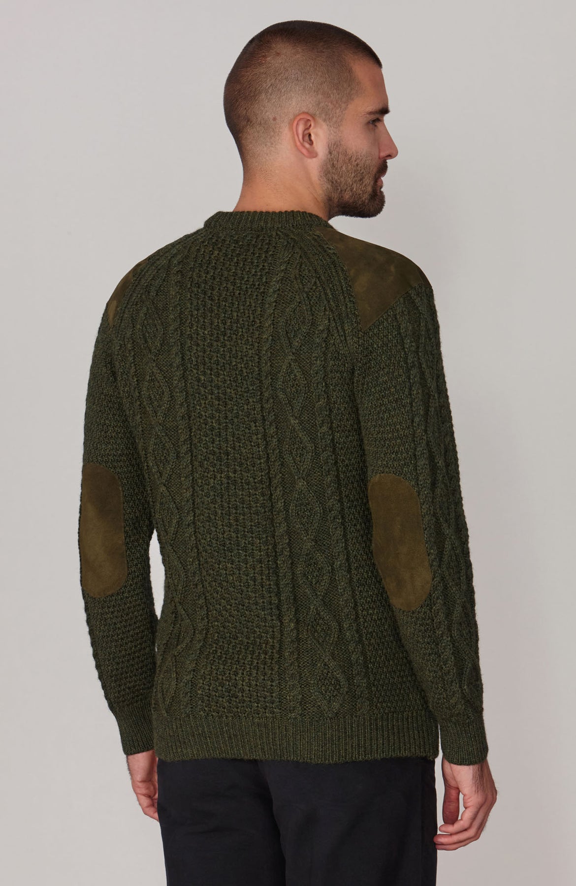The Archie Shooting Jumper is made in our Leicestershire factory from heavyweight (800g) 100% Andean merino wool, featuring genuine suede leather patches, making it a stylish choice for any heritage winter wardrobe.