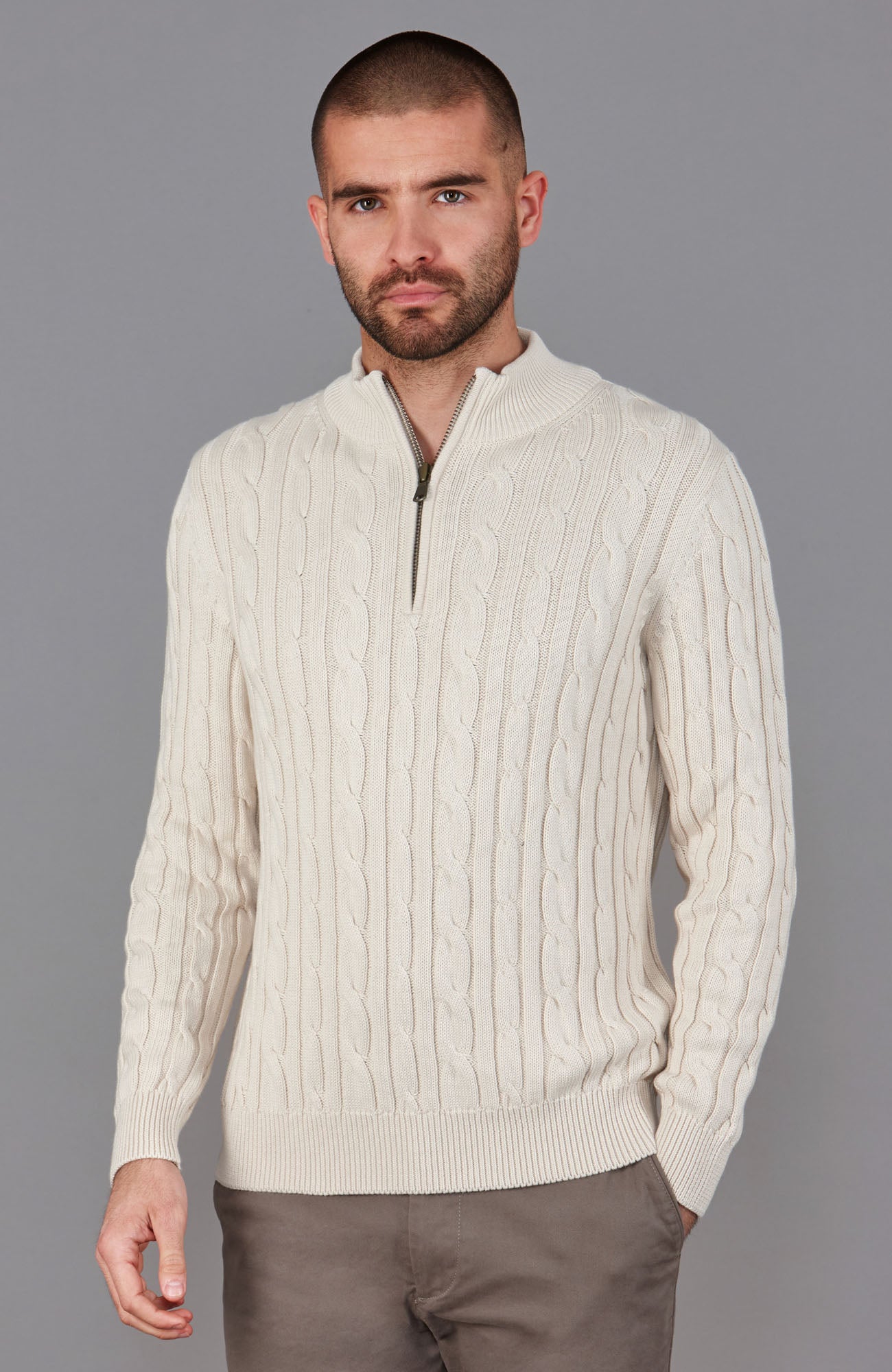 Mens Midweight Cotton Cable Zip Neck Jumper