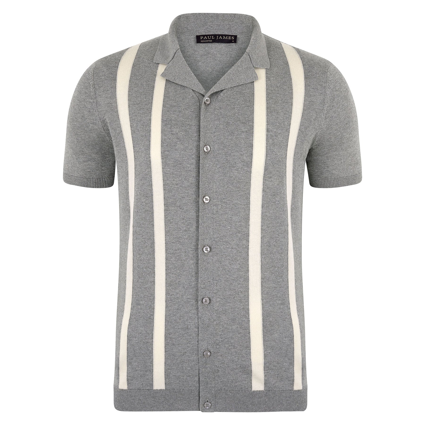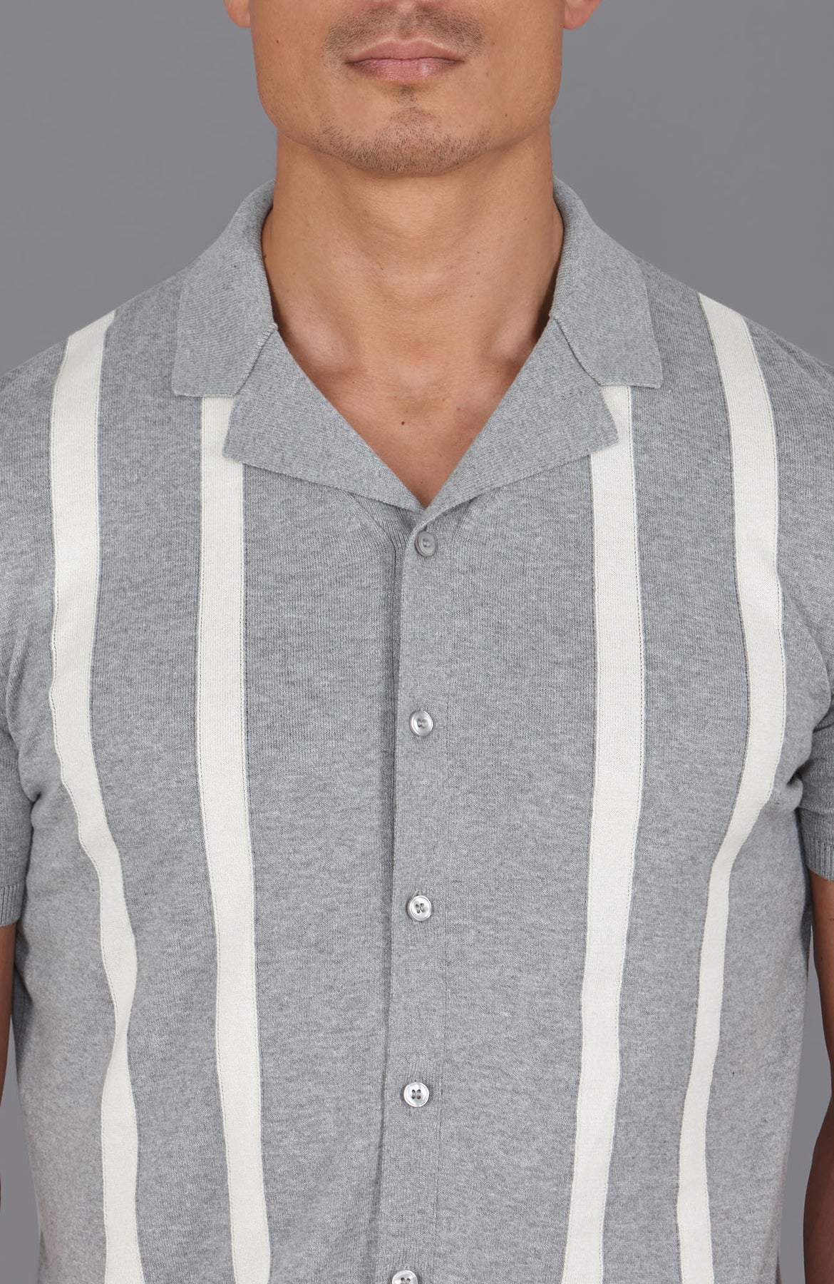 Mens Ultra Fine Cotton Cuban Collar Striped Shirt