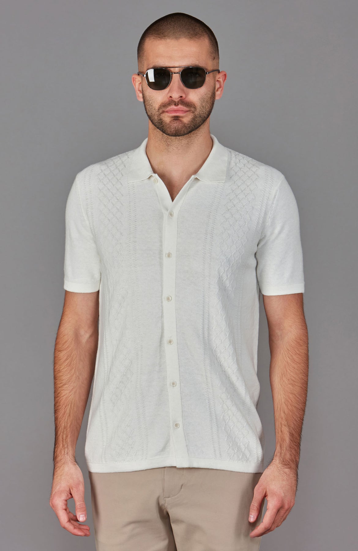 - Knitted button-through shirt