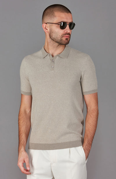A spring summer essential, Pietro is a lightweight cotton polo shirt with an eye-catching two-tone micro-texture, classic buttoned placket and bird's eye collar with ribbed cuffs and hems.