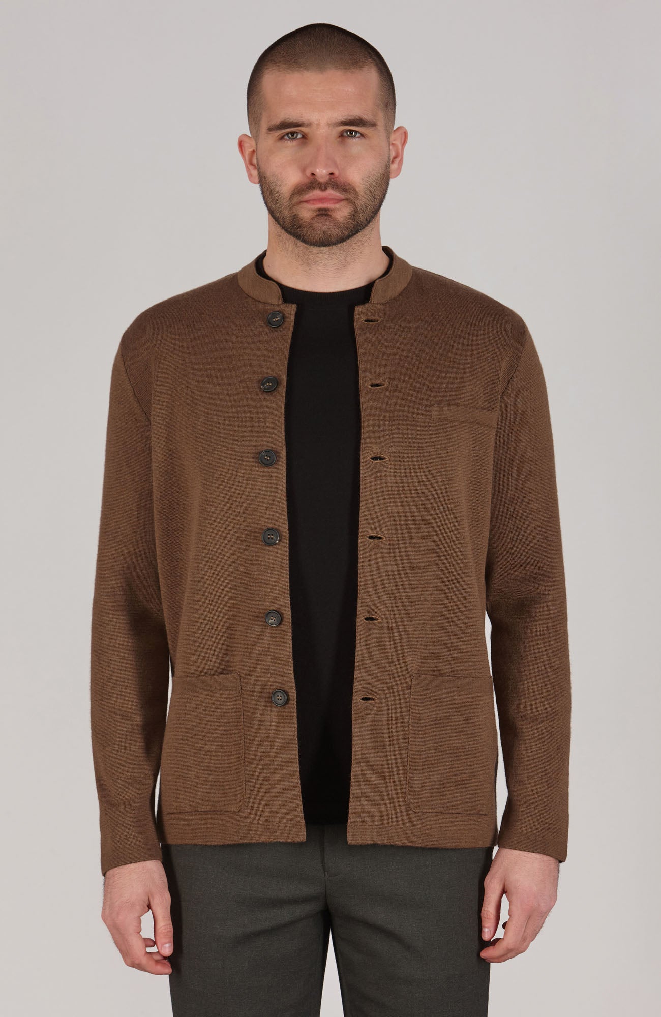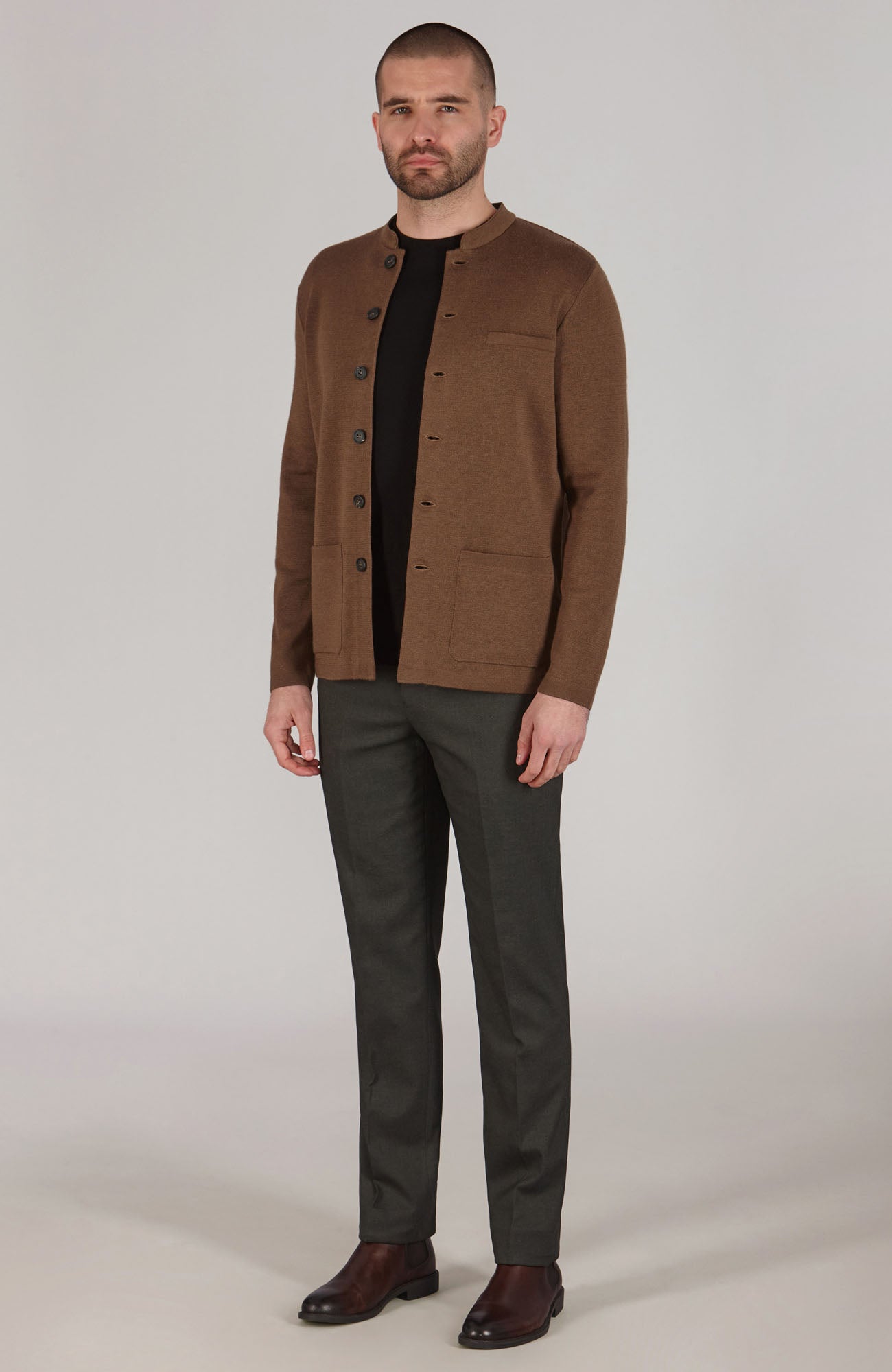 Mens Extra Fine Merino Wool Knitted Nehru Jacket