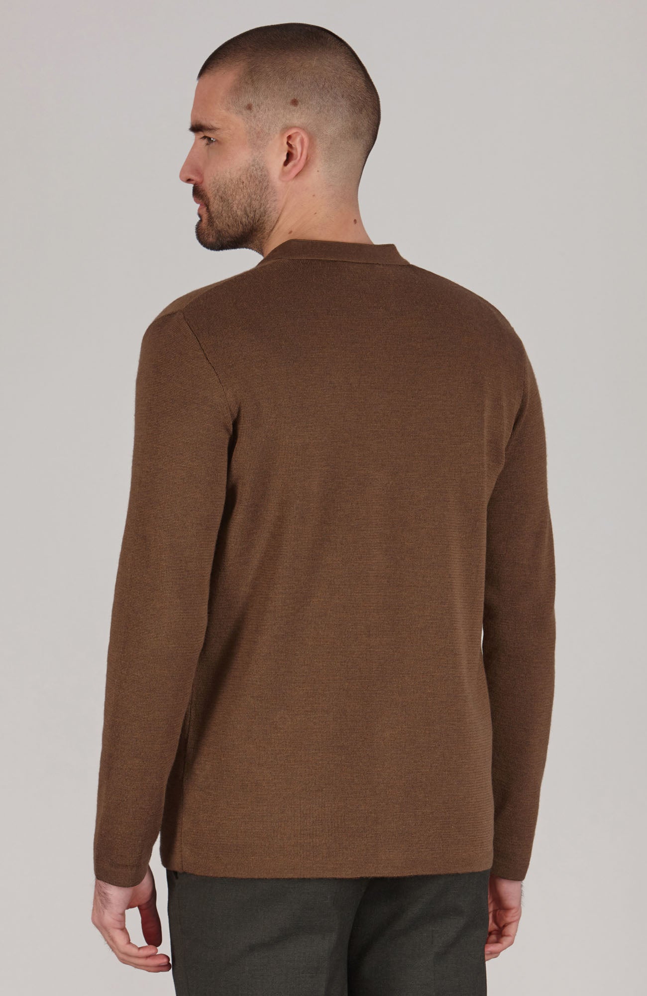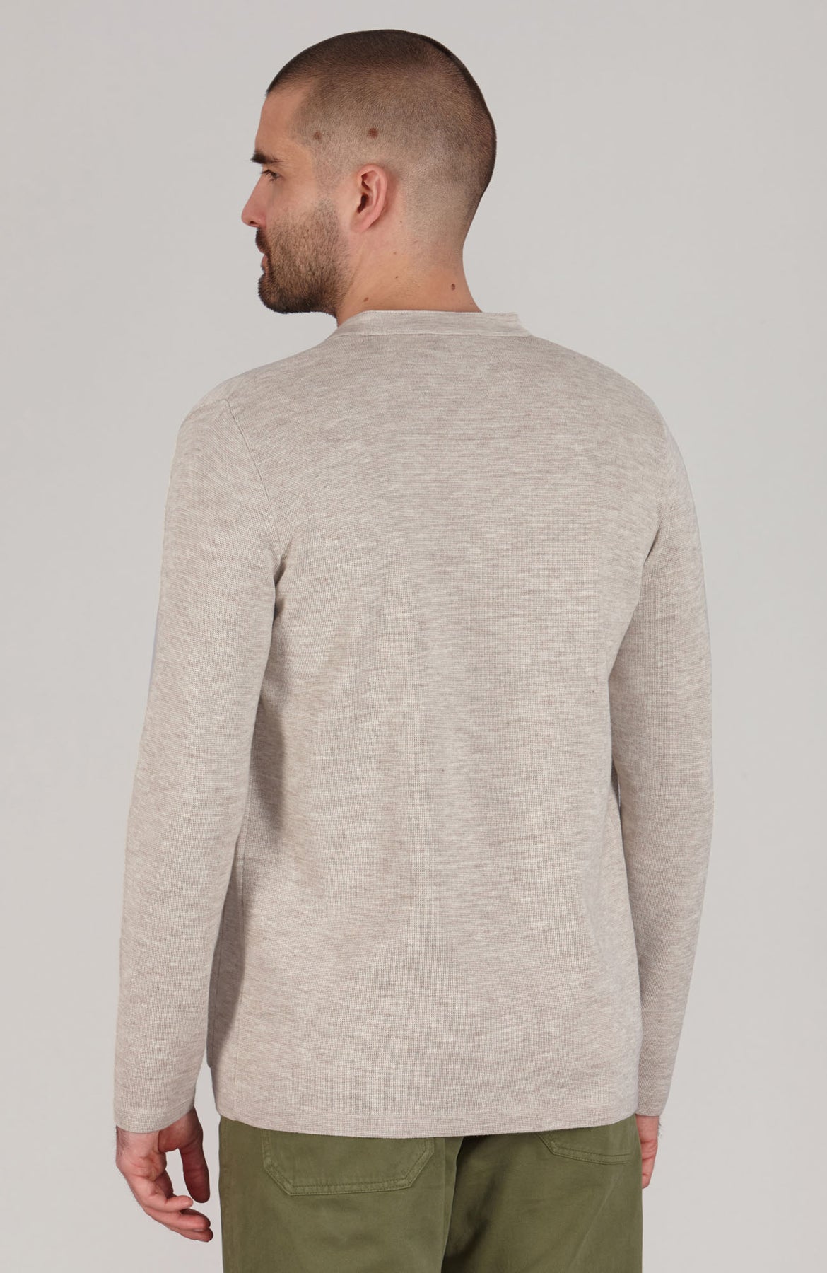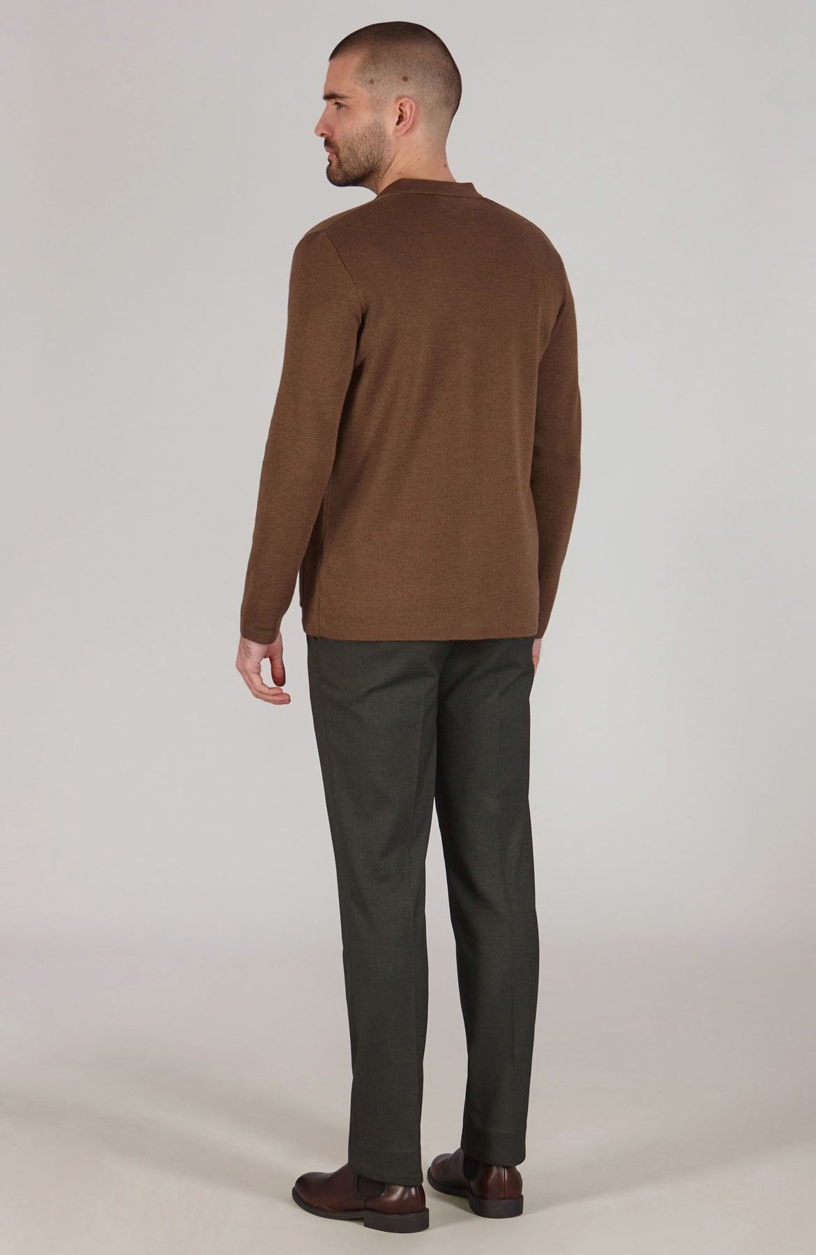 Featuring a structured double-layer mandarin collar, half-Milano knit construction, and a relaxed, deconstructed silhouette, the Alonzo offers the sophistication of tailoring with the comfort of knitwear.