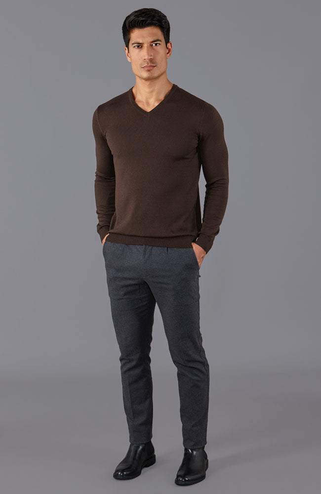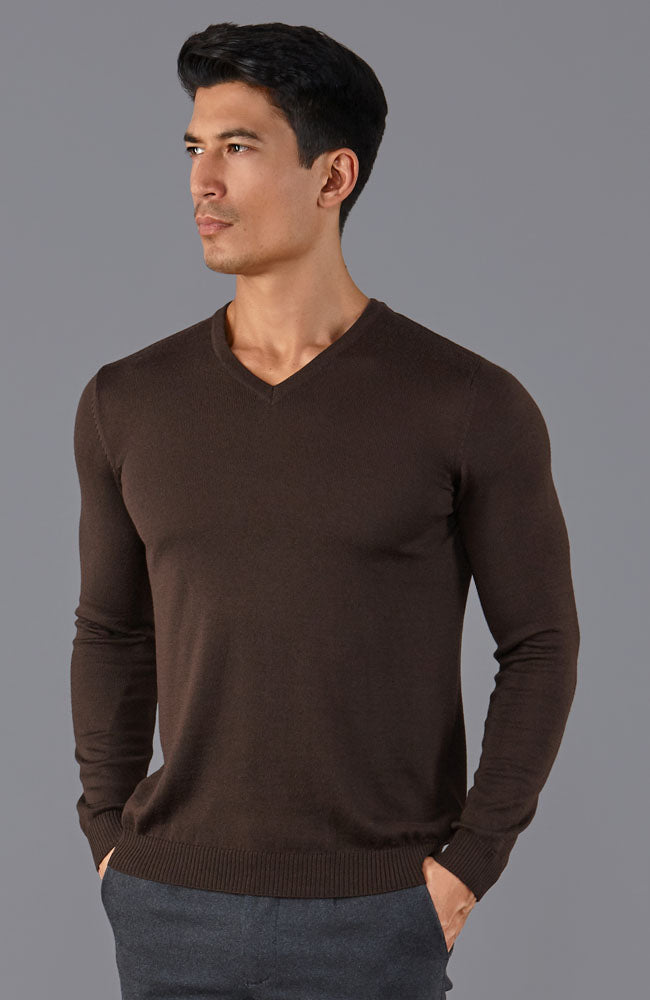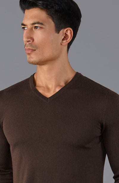 Extrafeiner Herren-Pullover aus Merinowolle mit V-Ausschnitt