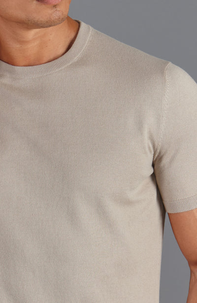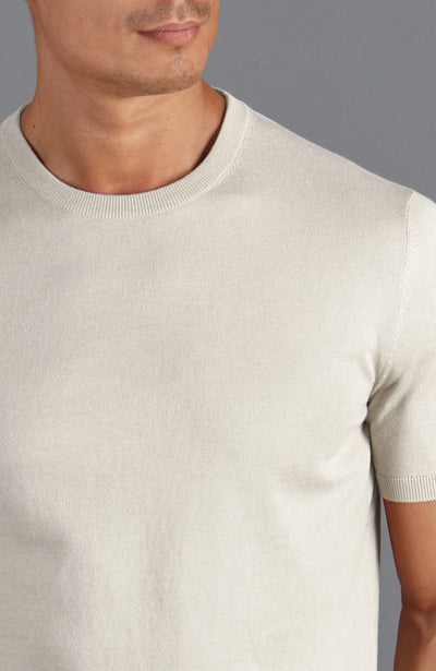 Kurzärmliges Strick-T-Shirt mit Rundhalsausschnitt aus 100 % Baumwolle