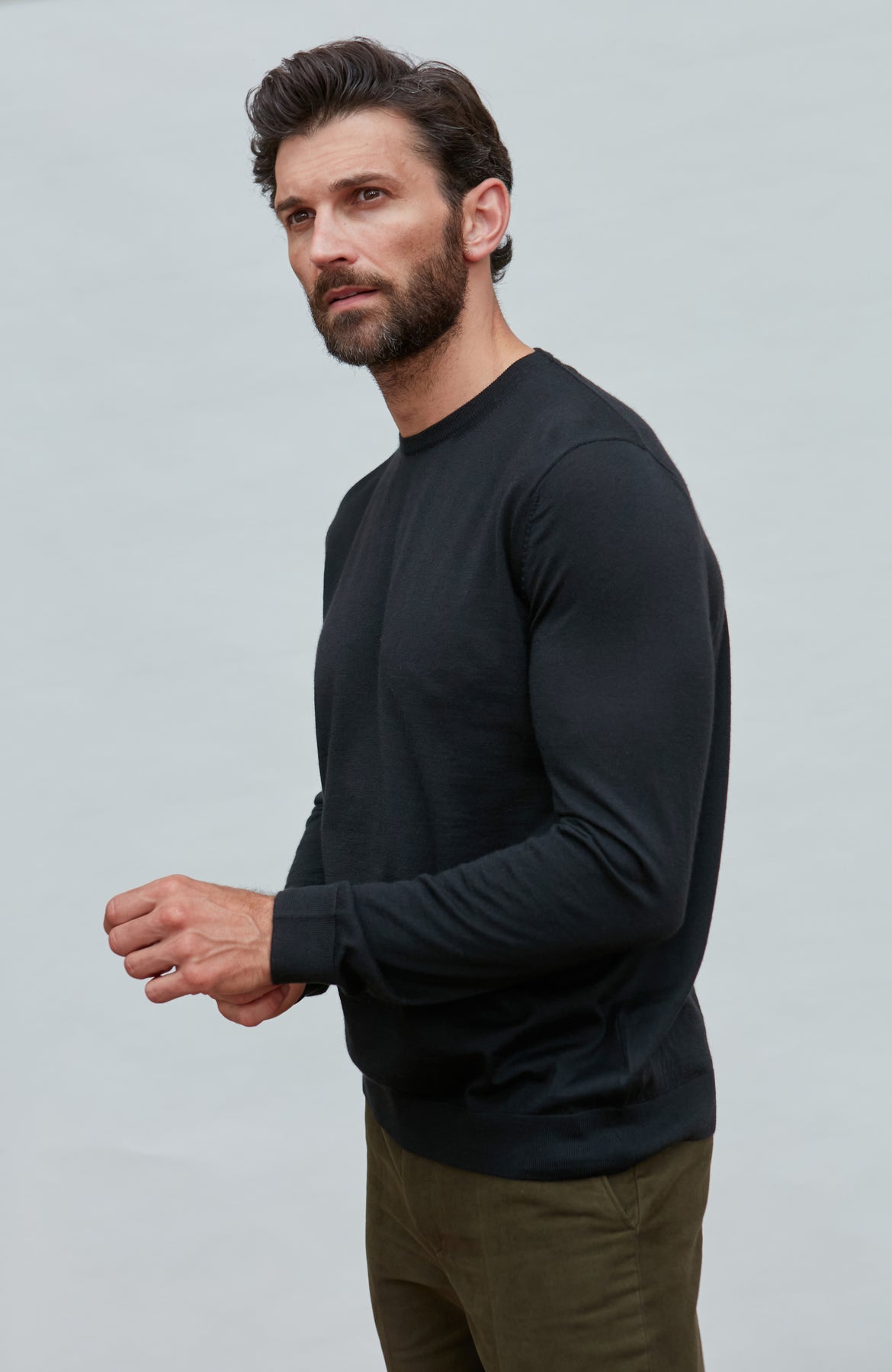 Matteo is a long sleeve crew neck jumper made using Papi Fabio's (Est. 1890) Italian spun 70% super-fine merino wool and 30% silk blended yarn.