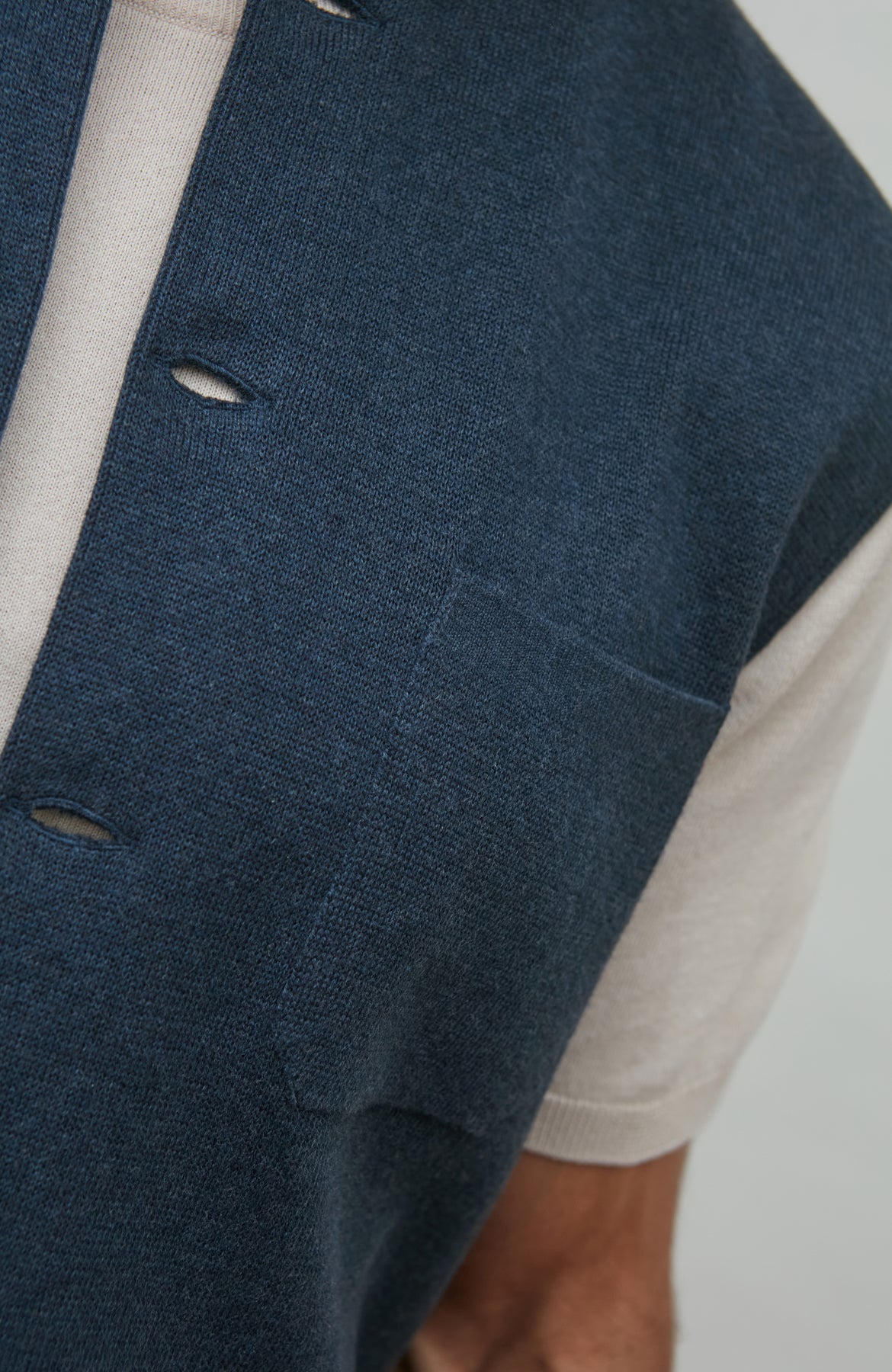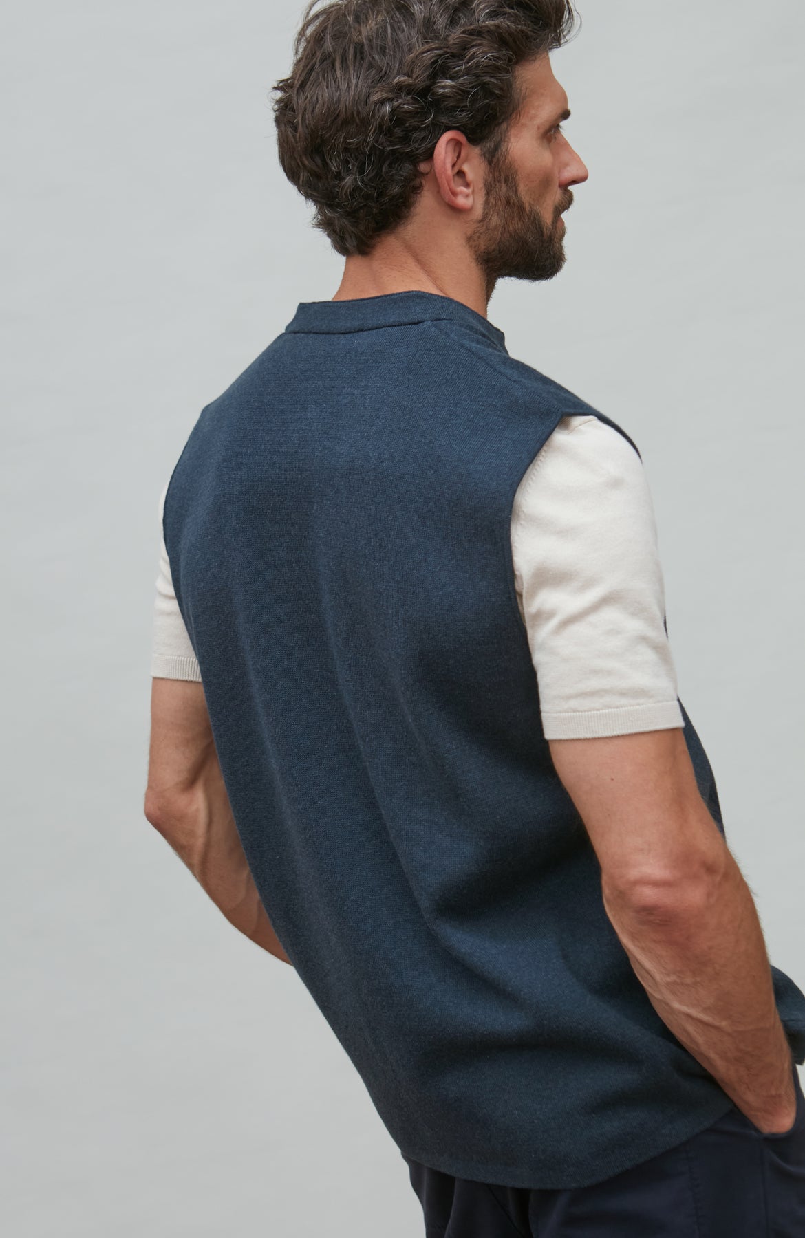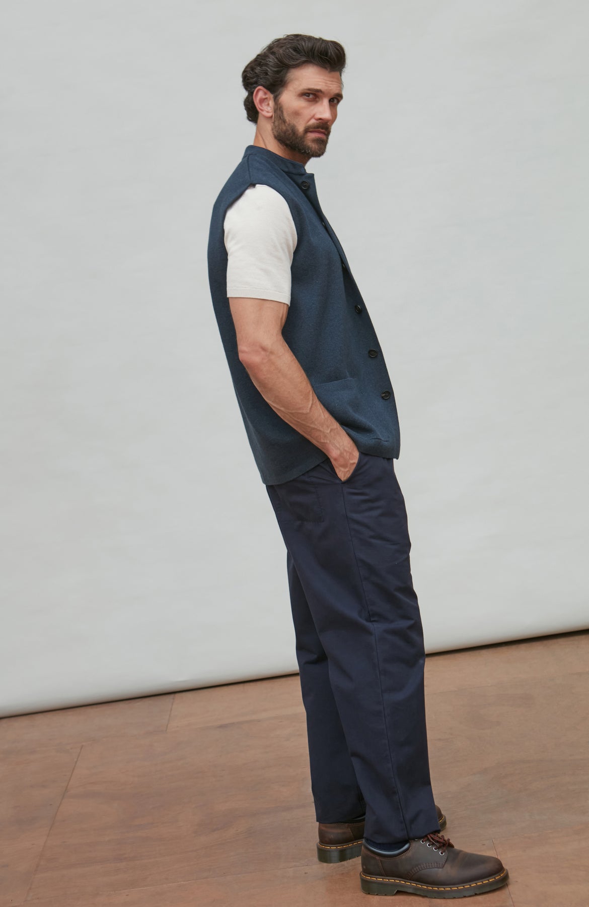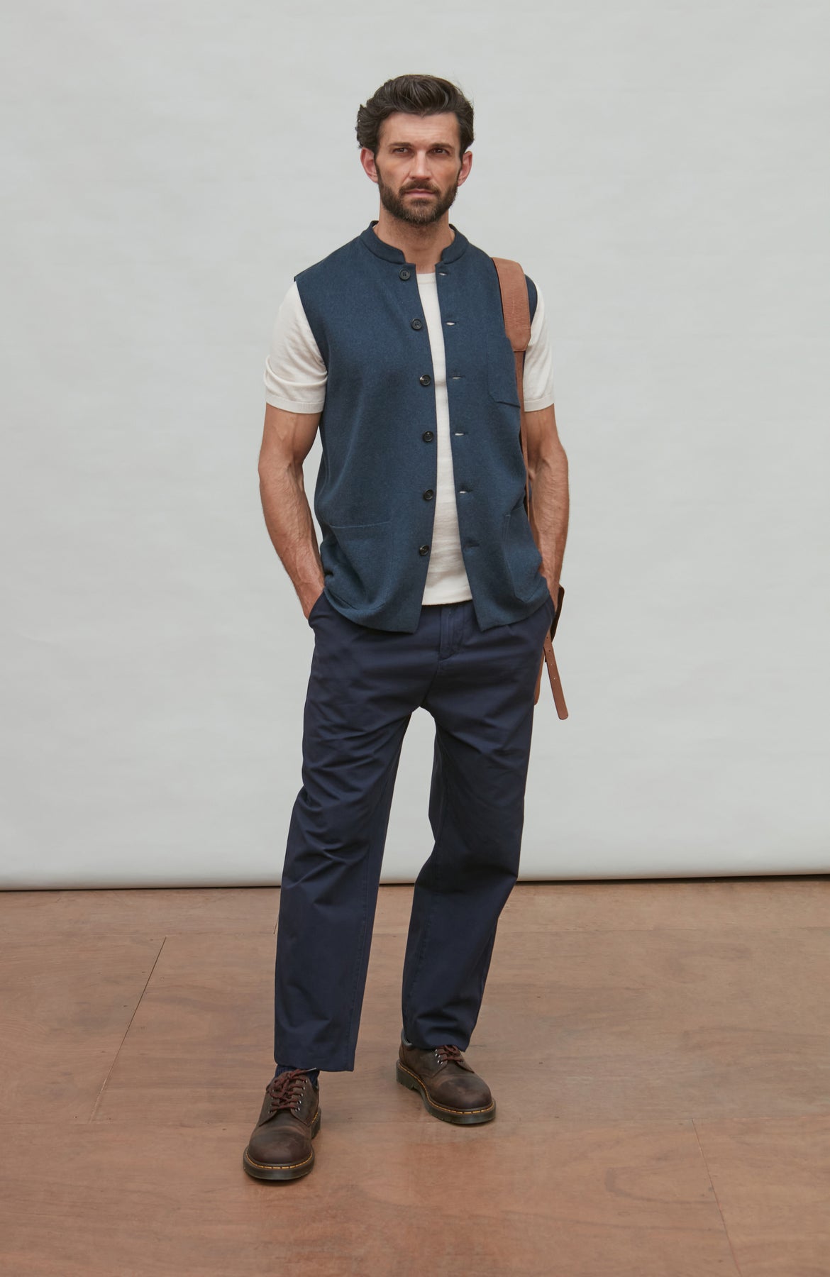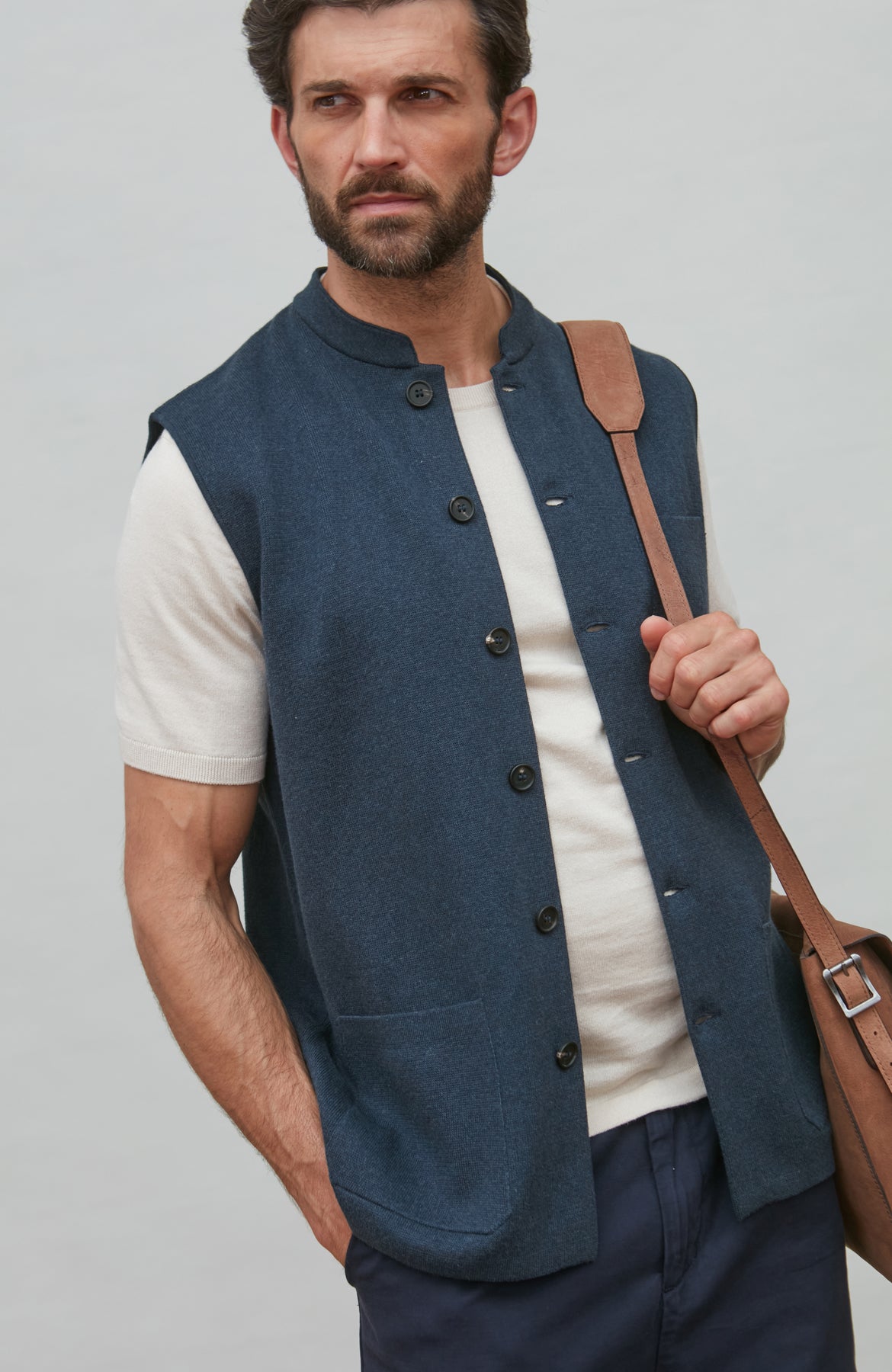 Mens Midweight Cotton Knitted Nehru Waistcoat