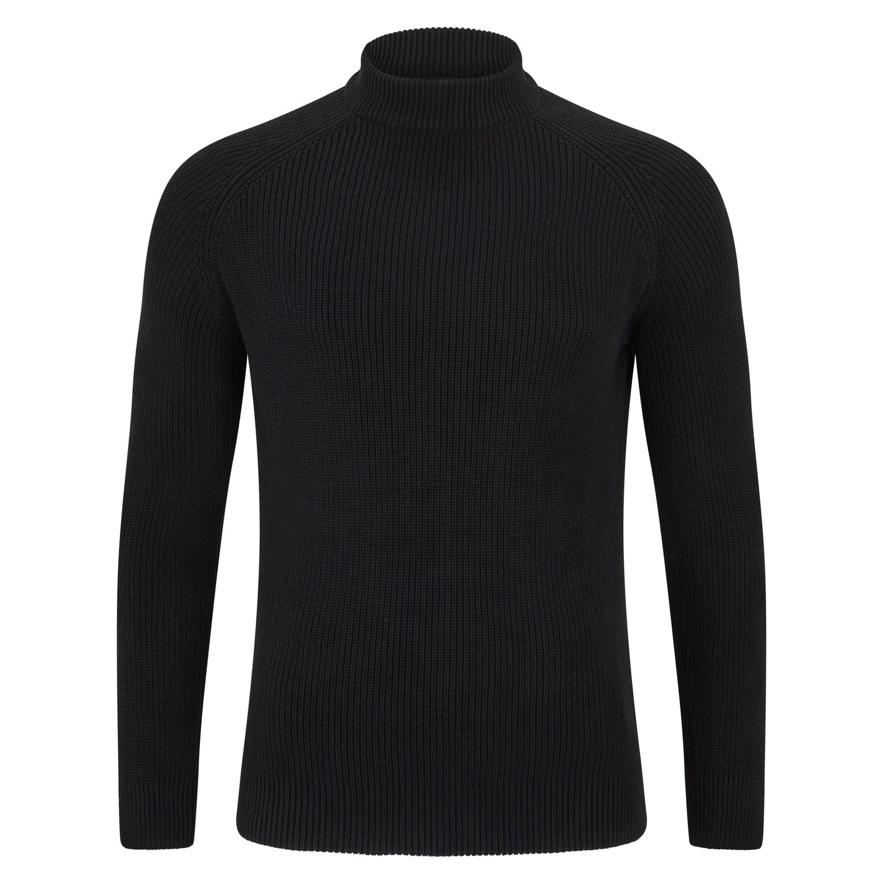 Mens Midweight Cotton Ribbed Mock Turtle Neck Jumper