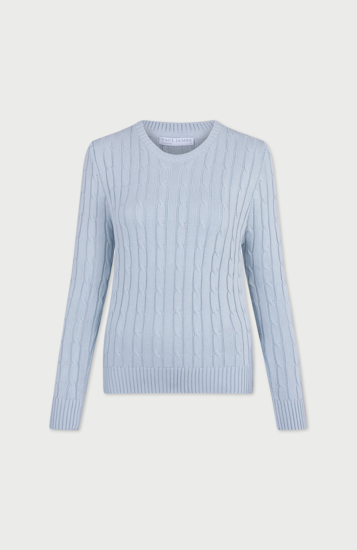 Paleblue Womens Cotton Cable Jumper By Paul James