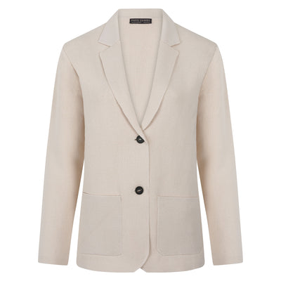 Tara is a timeless knitted blazer made from pure cotton and finished with premium Italian-made buttons, two patch pockets and inside pocket detail.