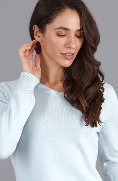 Damen-Pullover mit V-Ausschnitt aus reiner Baumwolle