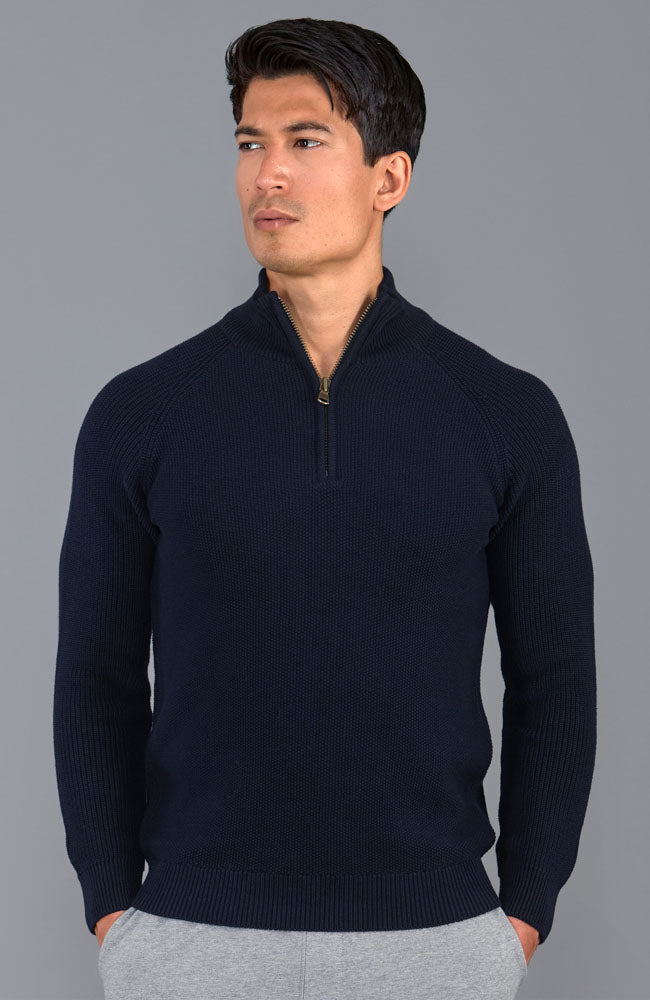 Mens Midweight Cotton Zip Neck Jumper