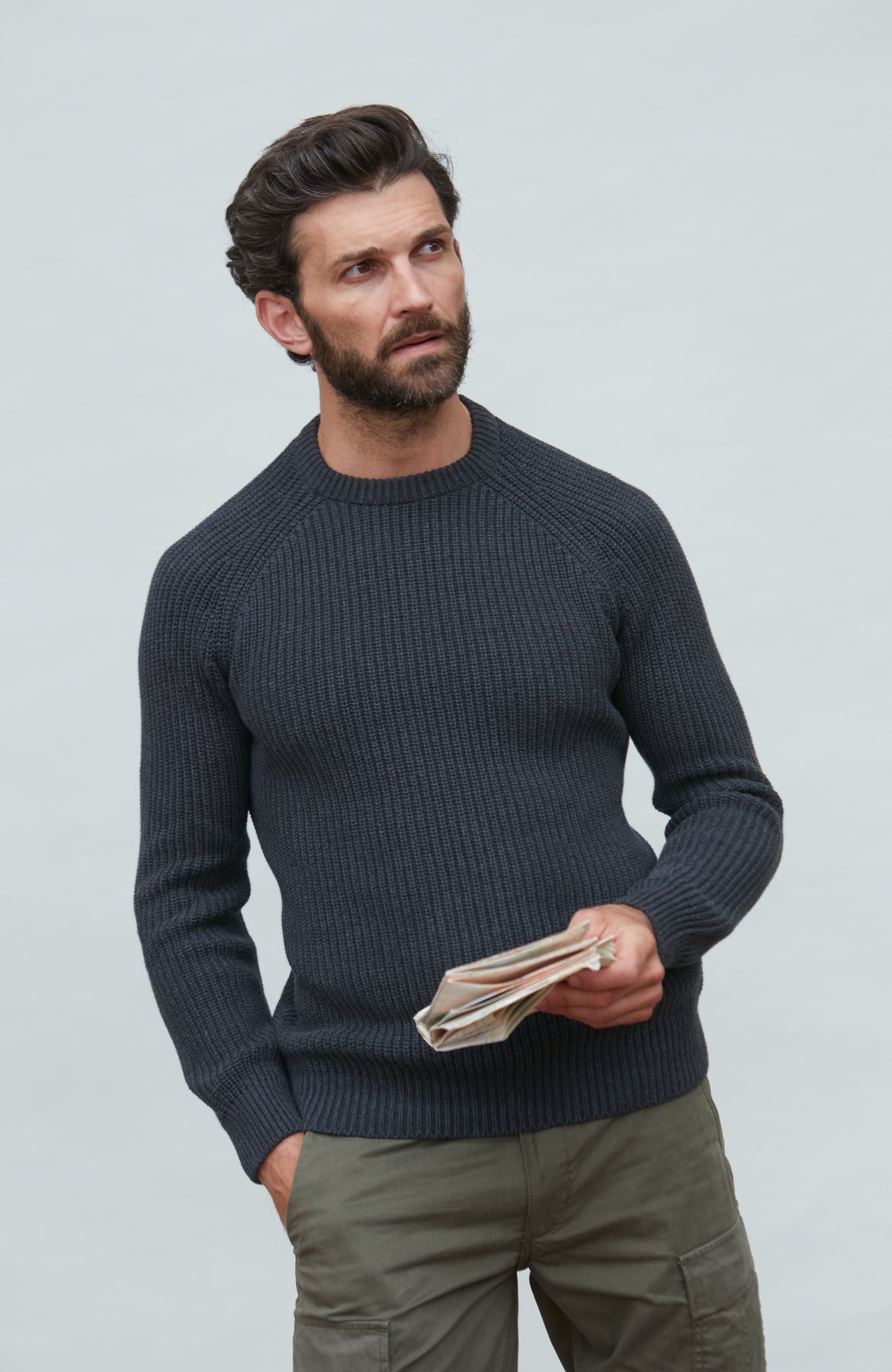 ANTHRACITE MENS FISHERMAN RIB KNIT JUMPER