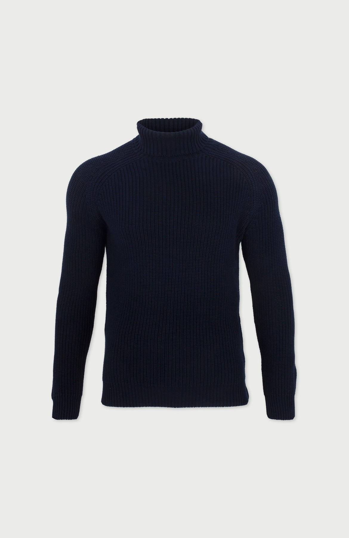 Mens Midweight Cotton Fisherman Rib Knit Roll Neck Jumper