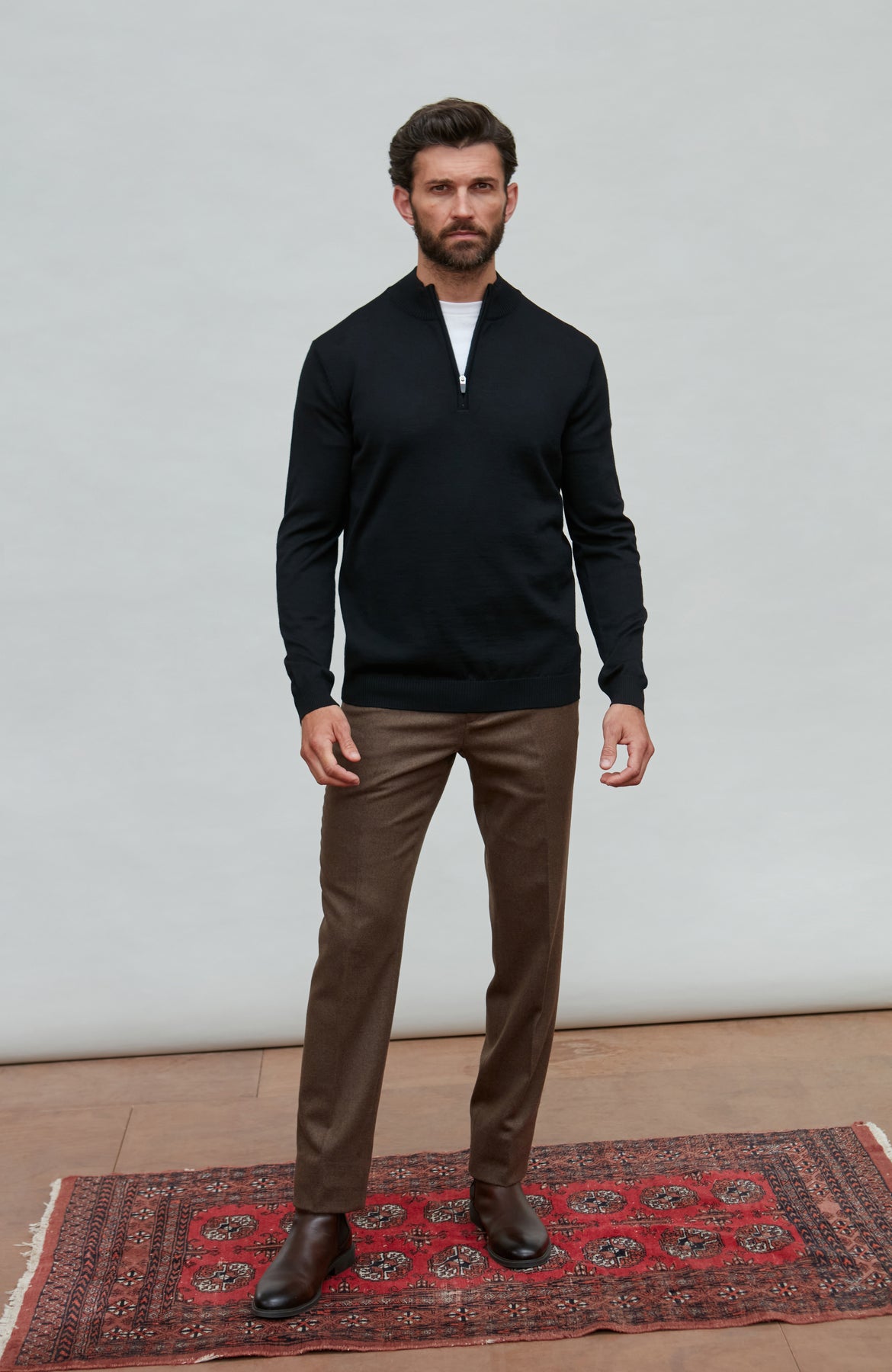 100% Extra Fine Merino Wool Zip Neck Sweater