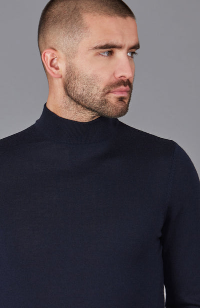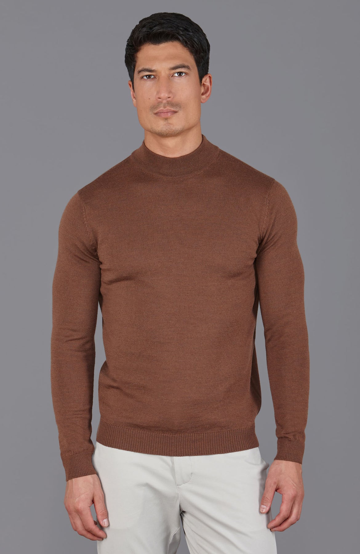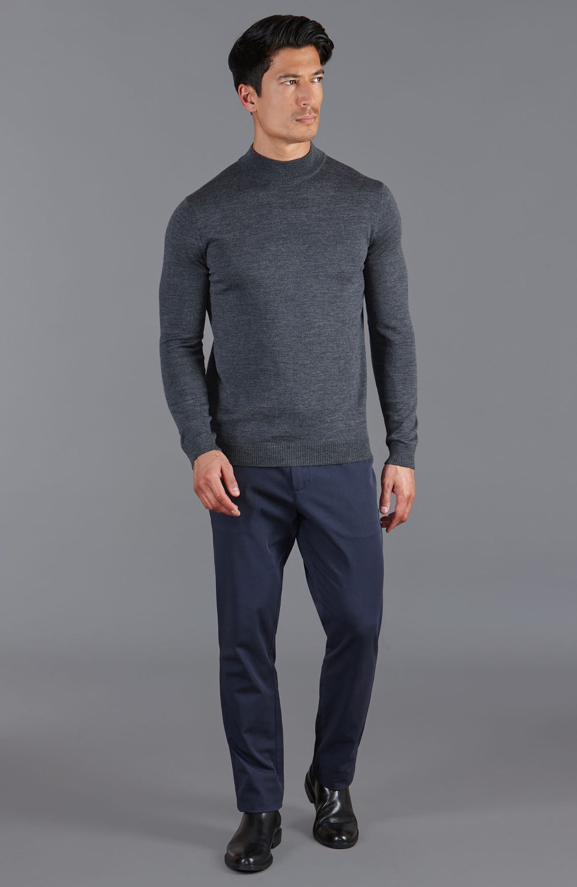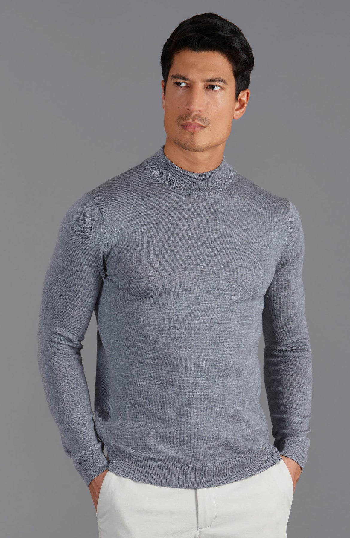 Mens Extra Fine Merino Wool Mock Turtleneck Jumper