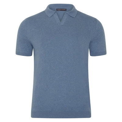 blue mens knitted polo shirt