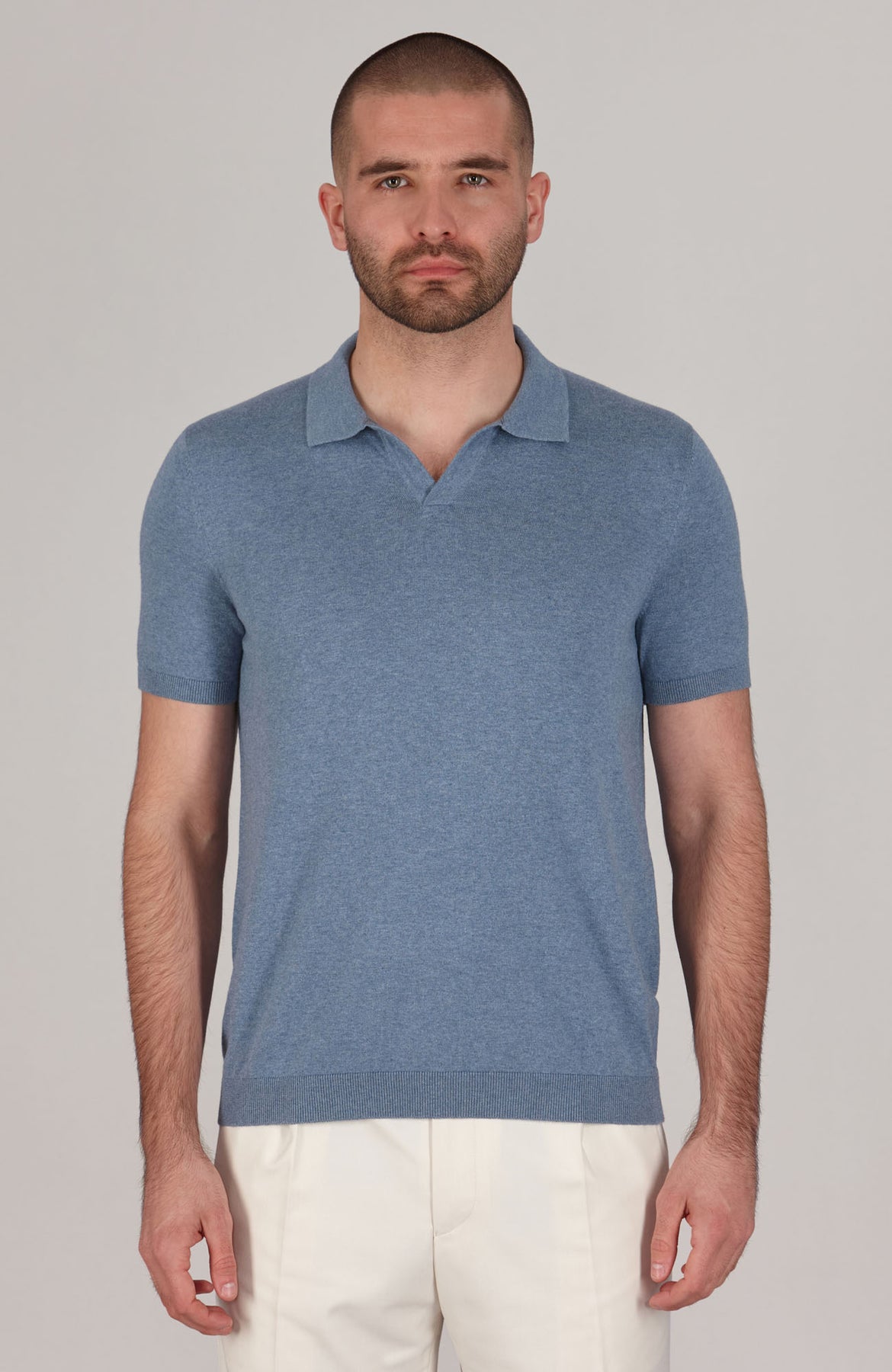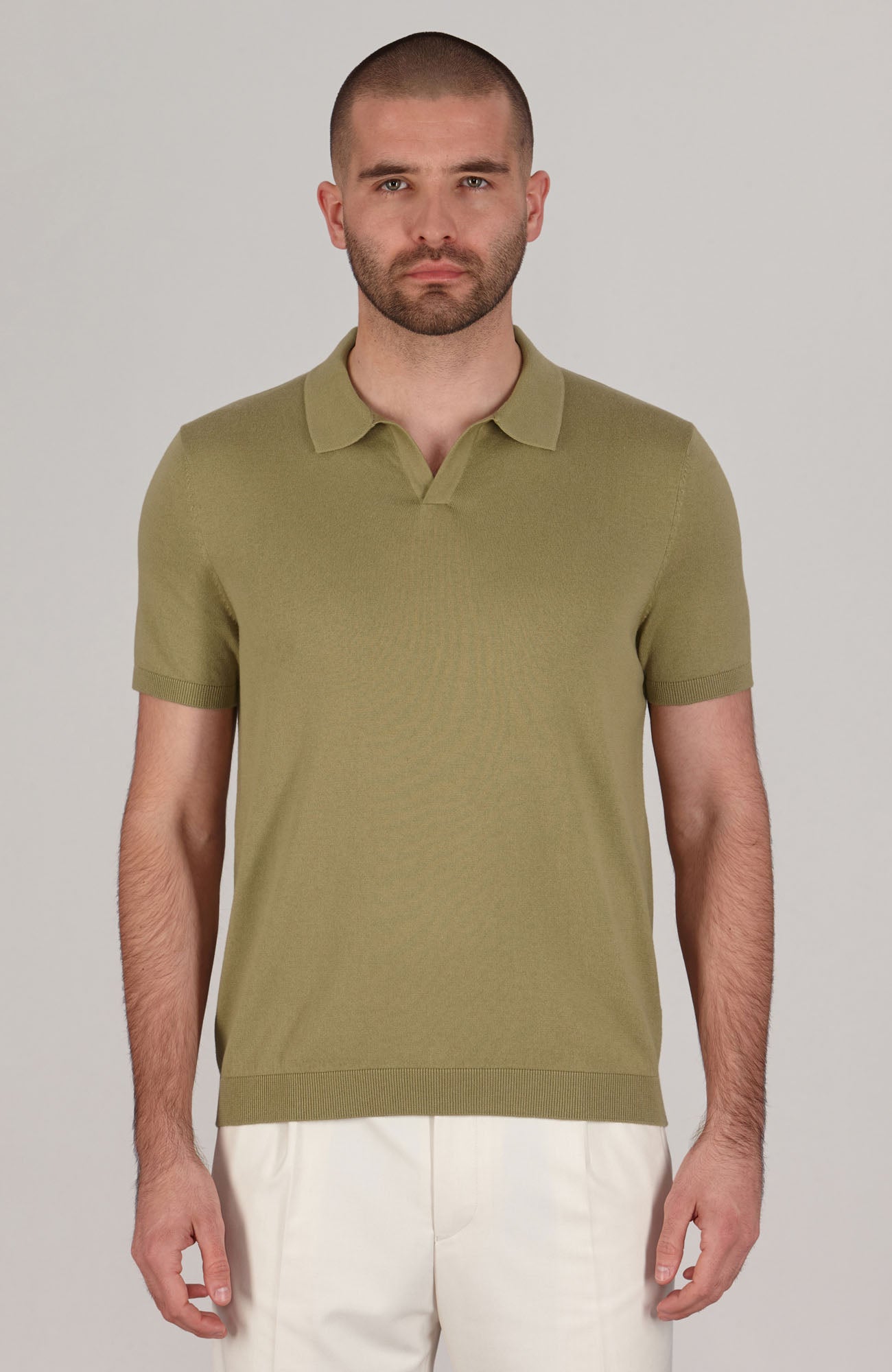 • 100% cotton knitted buttonless short sleeve polo shirt