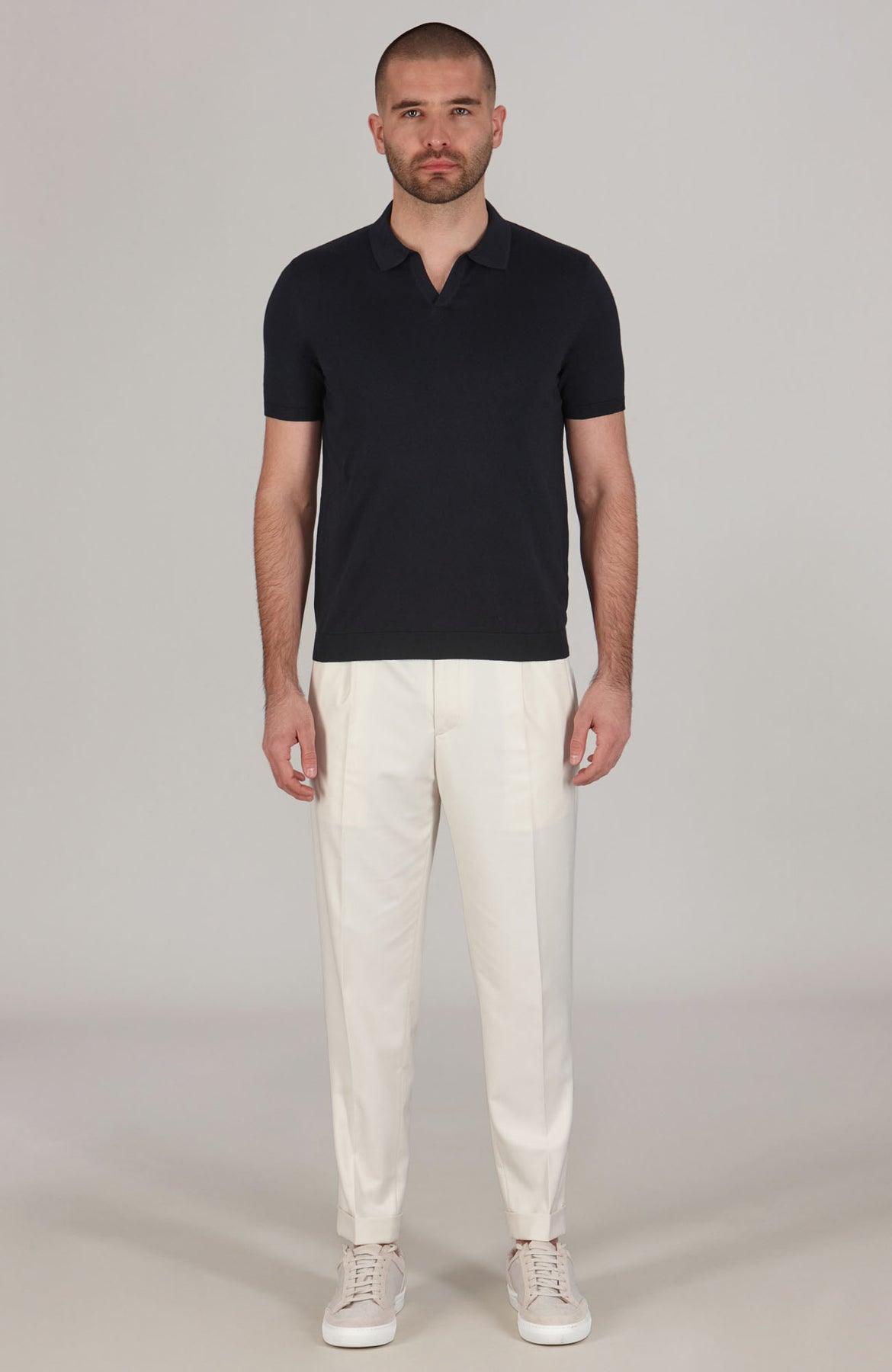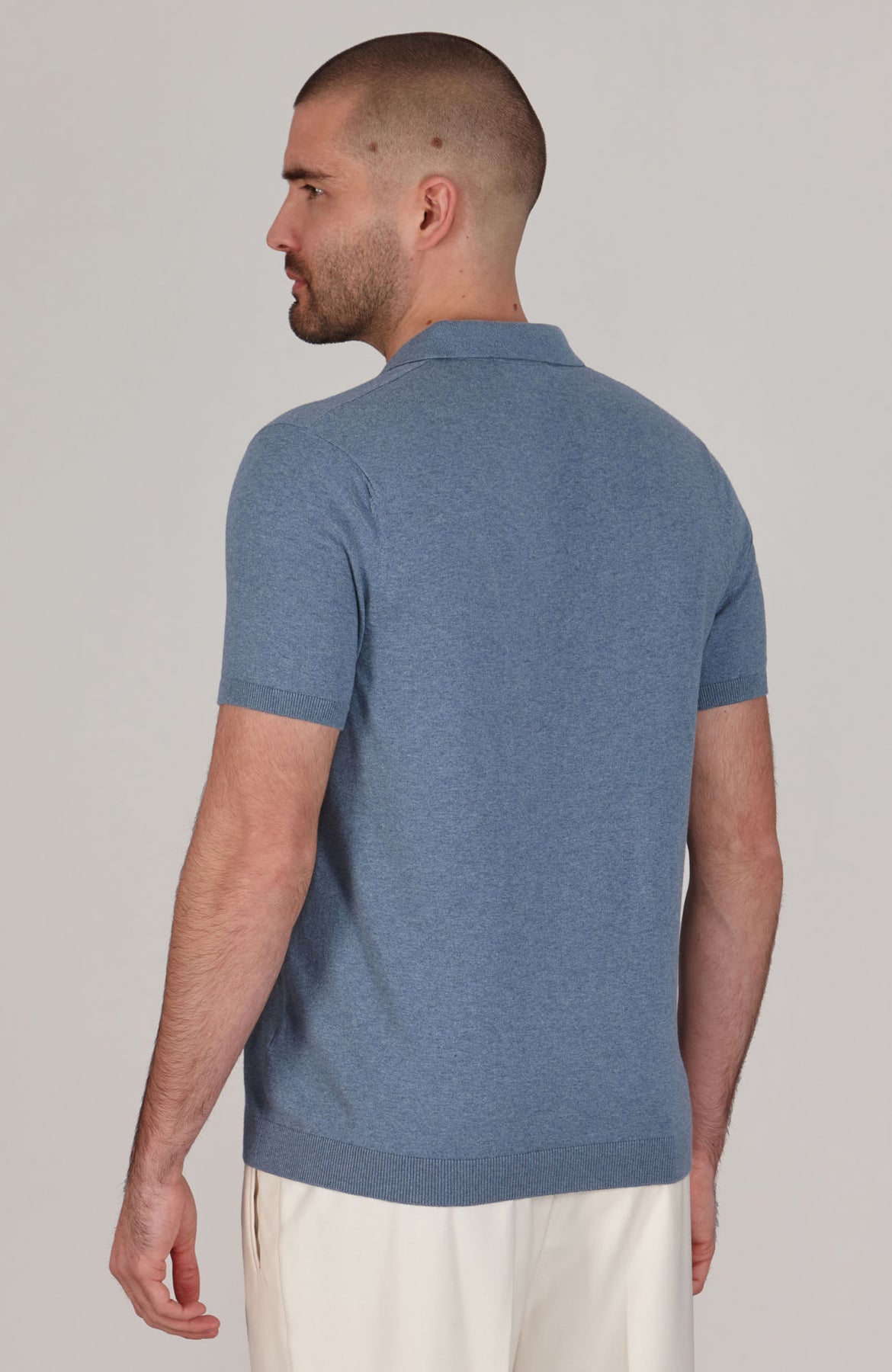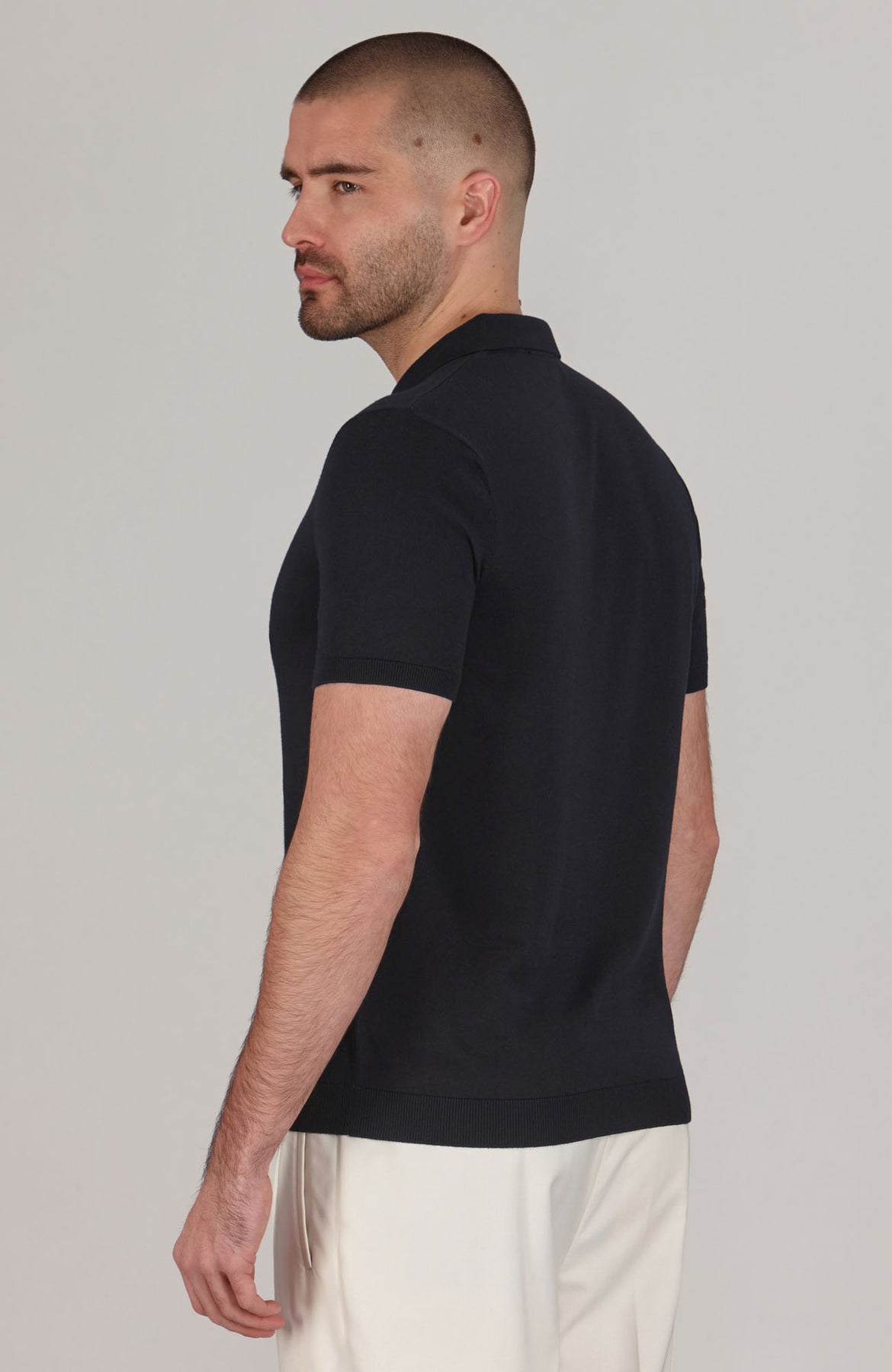 white mens buttonless polo shirt
