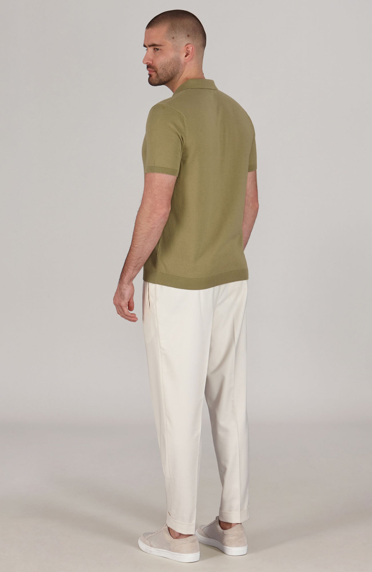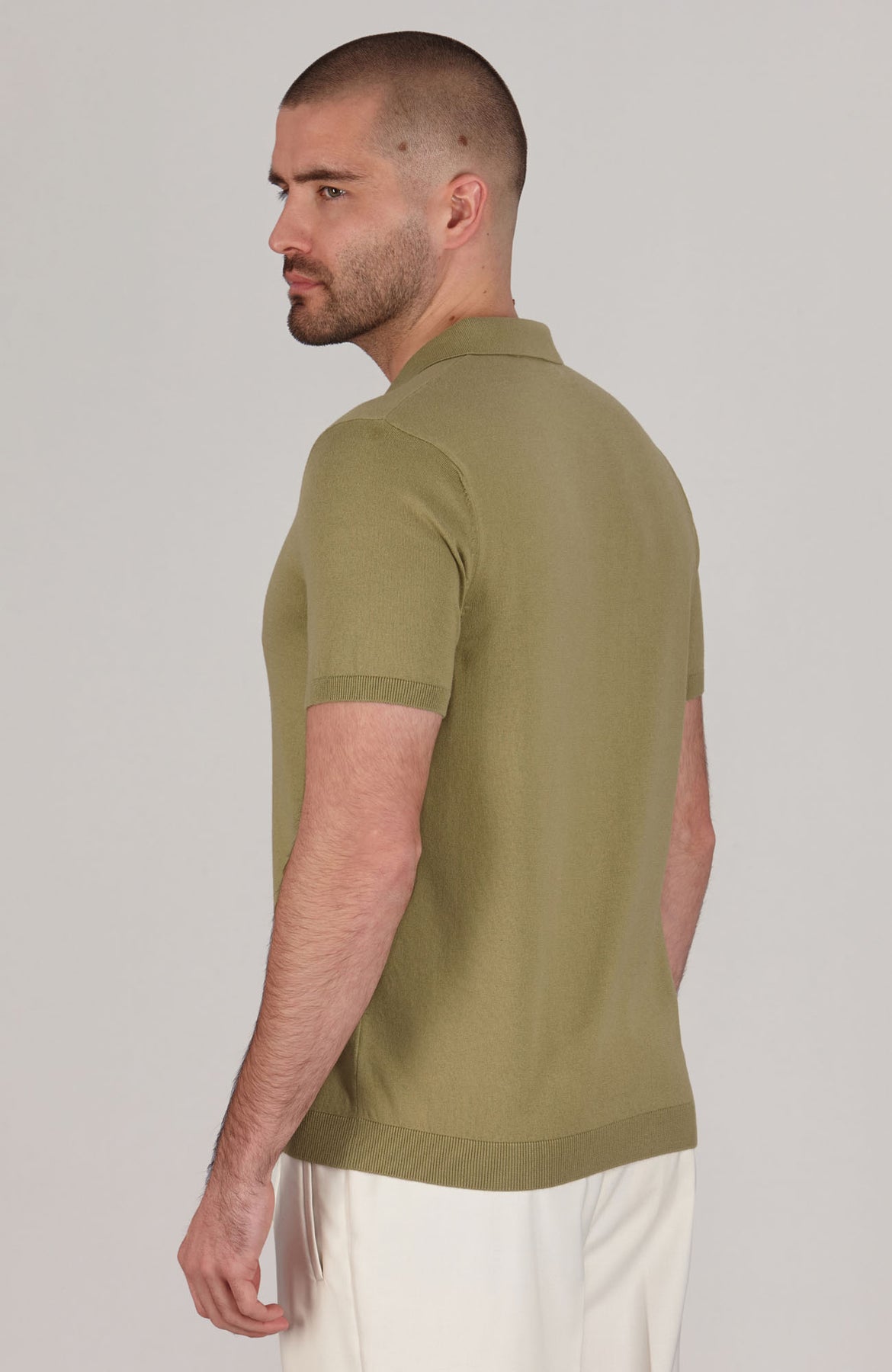 beige mens buttonless polo shirt