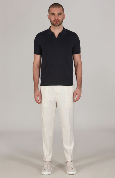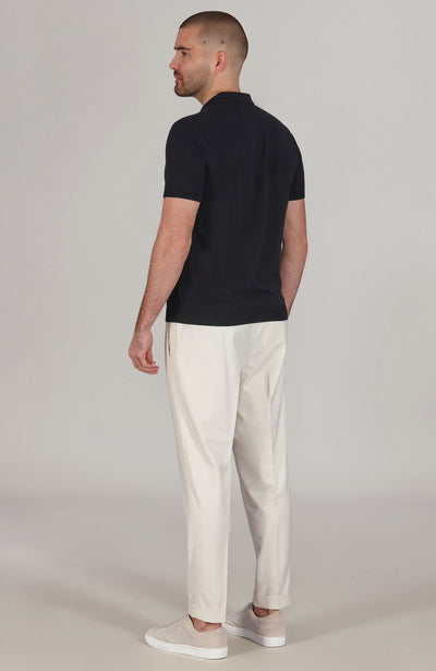 Crafted from 100% ultra-fine cotton, the Nathan polo shirt features an open collar and a fitted design with ribbed hem and cuff details. This semi-fitted, breathable short-sleeve knit is a stylish alternative to traditional t-shirts and are essential for your spring and summer wardrobe. Pair it with your favorite chinos, shorts, or tailored trousers for an effortlessly smart-casual look.