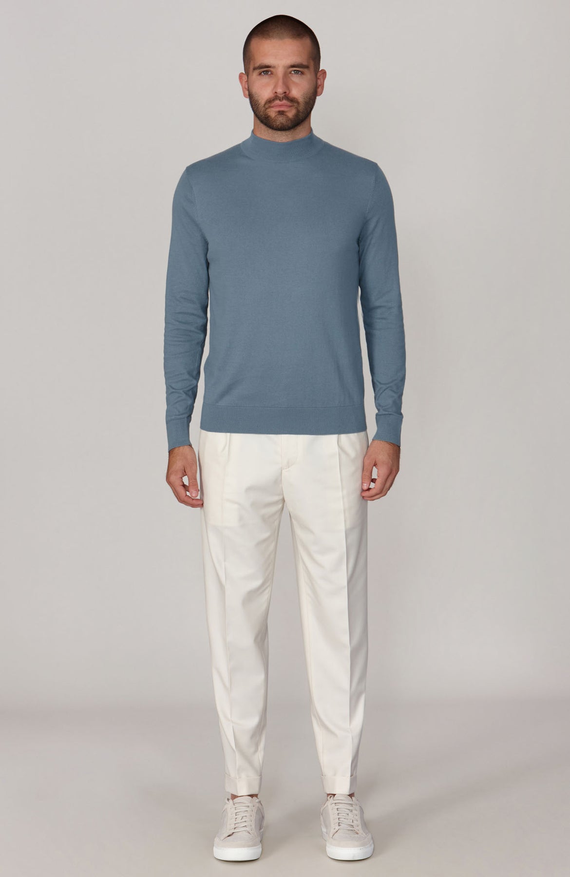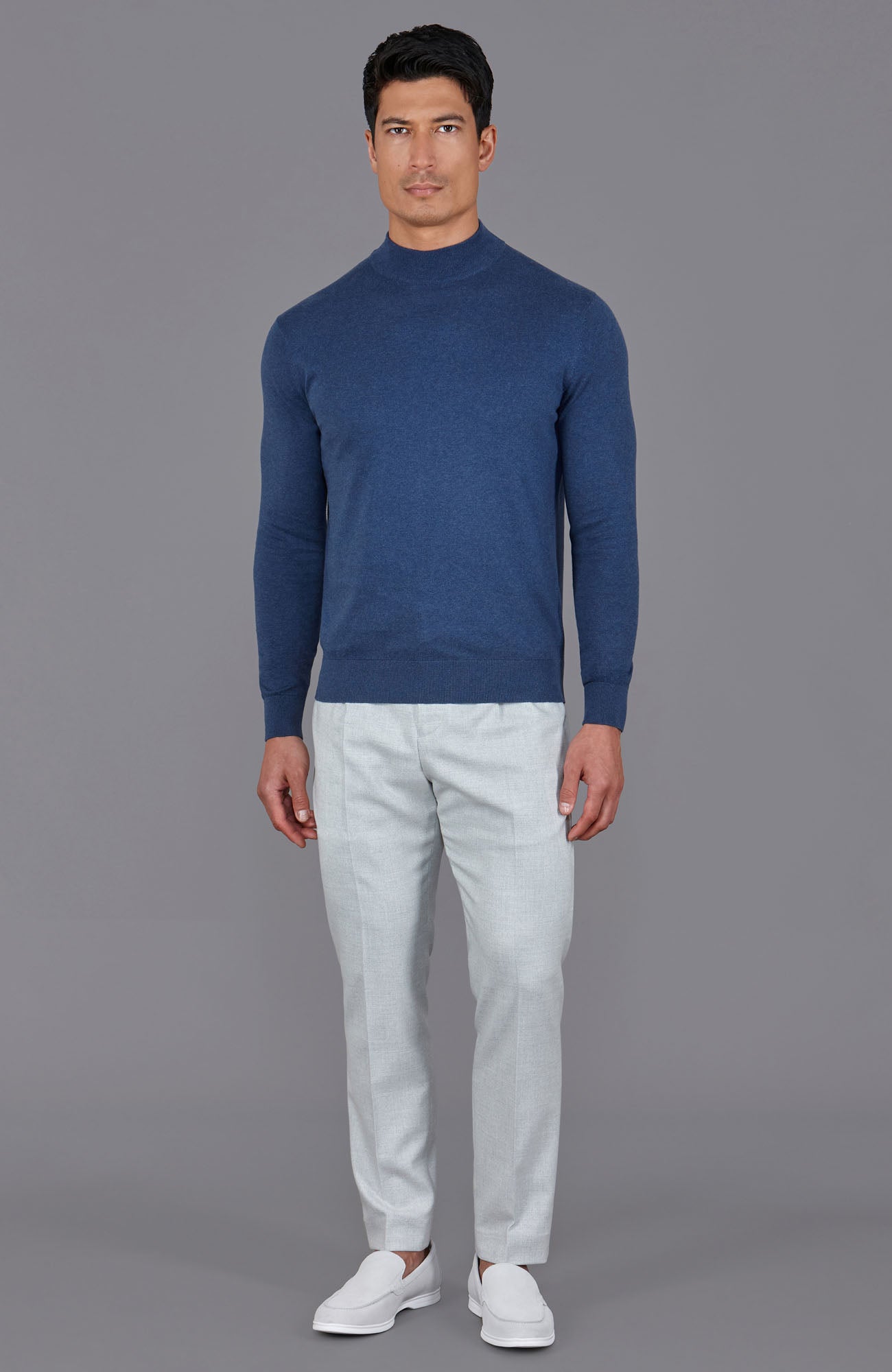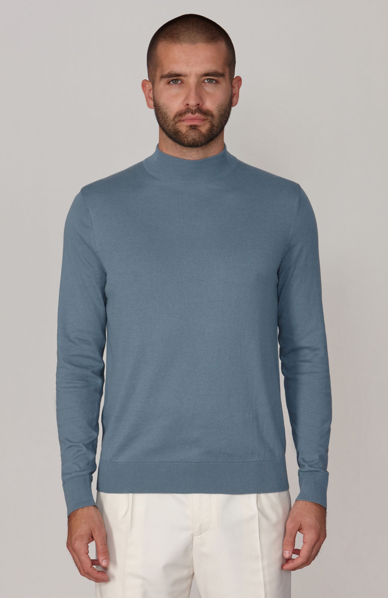 A modern classic, our Spencer mock turtleneck or grown on neck jumper is made from an ultra-lightweight cotton knit. Simple to style and to dress up and down, this is your cool layer for the warmer months, or a fine base layer to any of our chunky roll neck jumpers.
