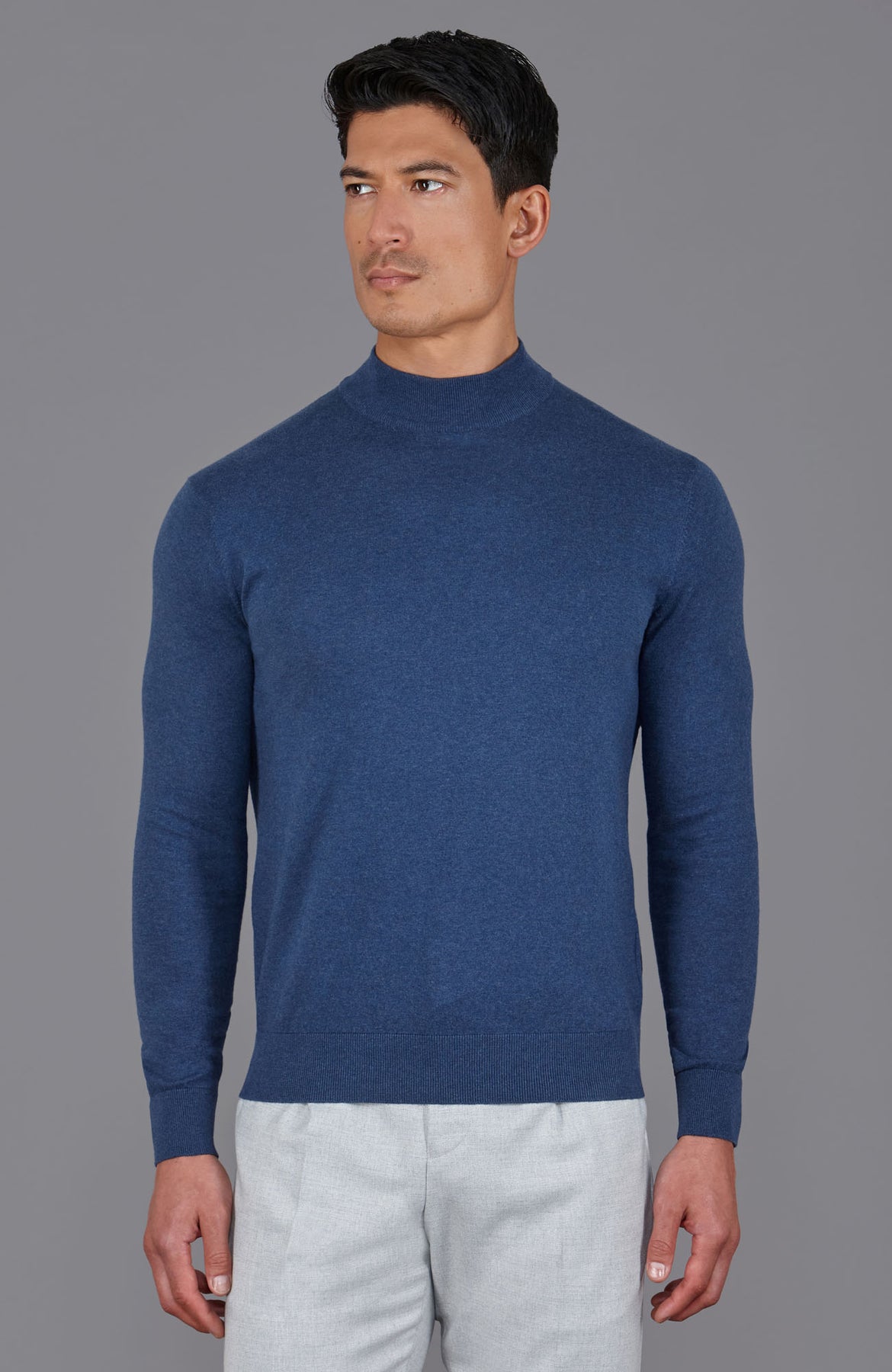 Mens Ultra Fine Cotton Mock Turtle Neck Jumper