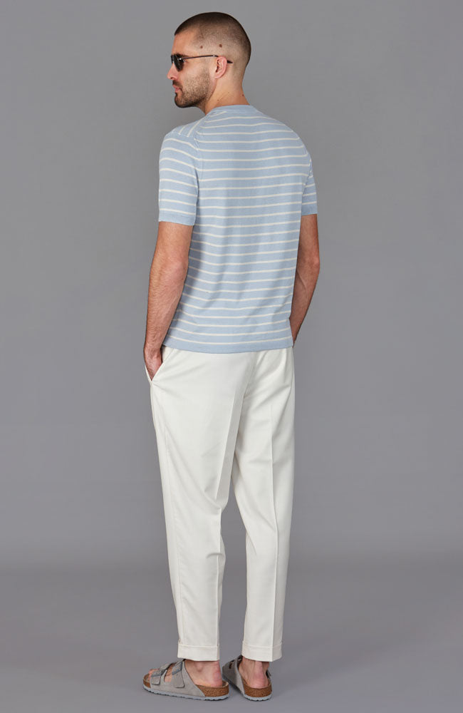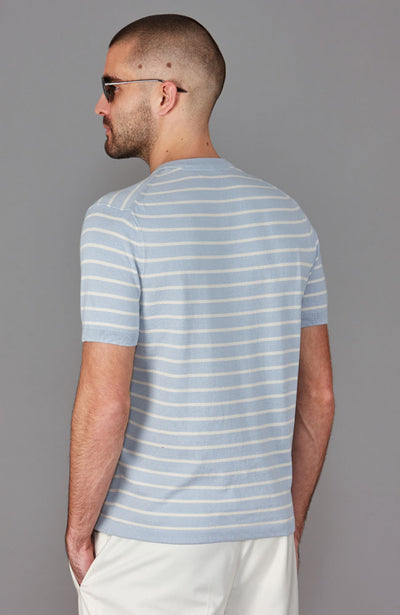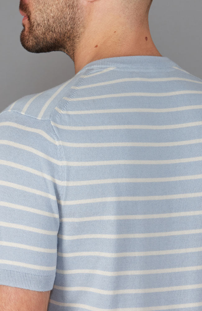 Refresh your wardrobe staples for summer with Javier, a classic crew neck knitted short-sleeve t-shirt made from ultra-fine cotton with nautical stripes. Cool and breathable, the tightly knit fabric feels incredibly soft and comfortable on your skin and offers a more luxurious upgrade to a regular jersey t-shirt for your summer wardrobe.