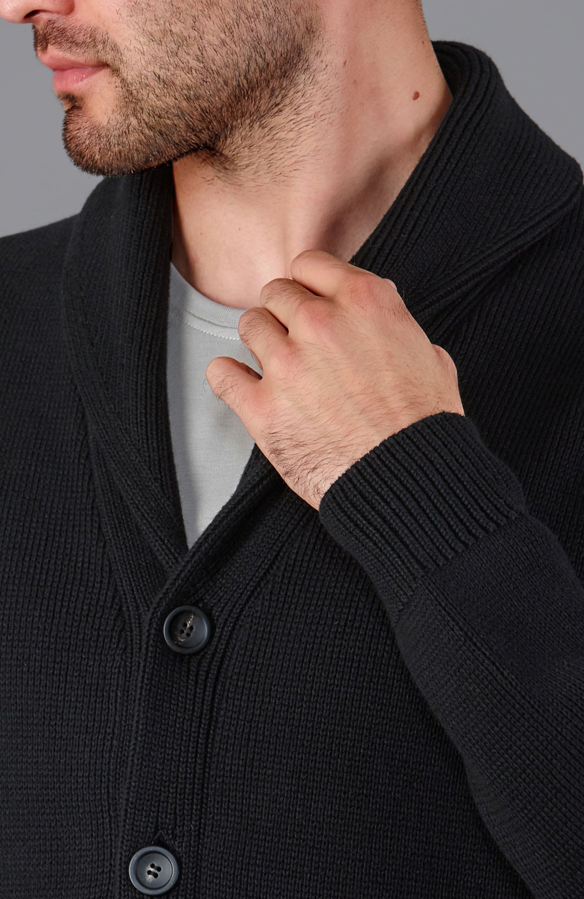black mens shawl collar cardigan