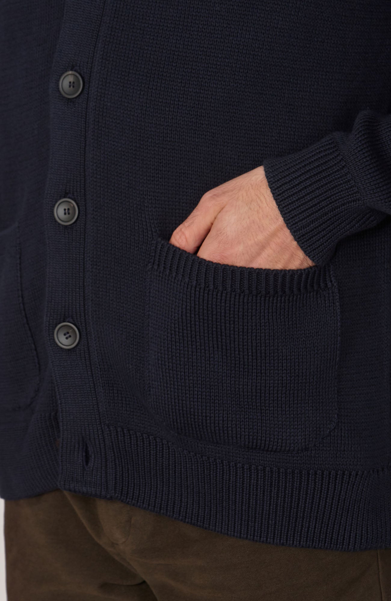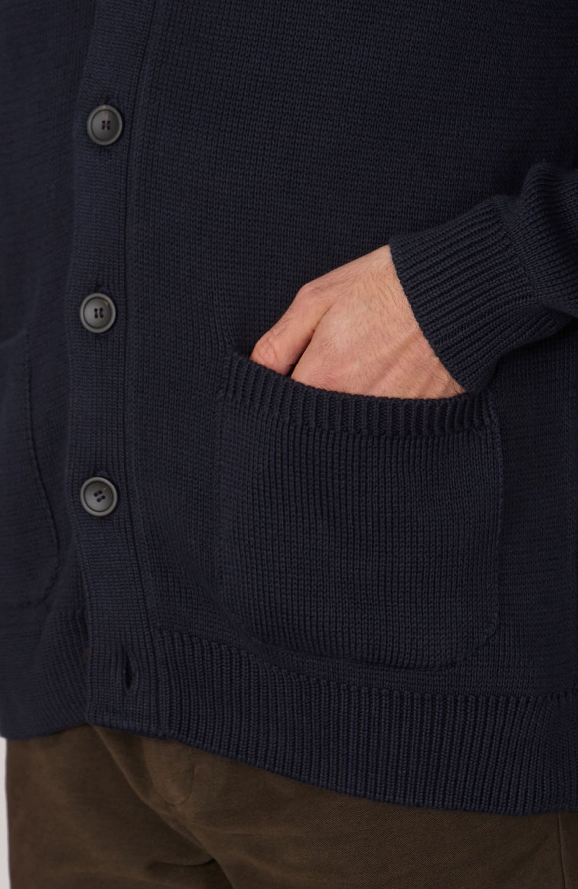 This chunky knit is the perfect addition to your transitional wardrobe with elegant buttons and front pockets. Layered over our finer knitwear or a pure cotton t-shirt, this buttoned jumper is perfect for casual wear. Or it can be dressed up with an extra fine merino roll-neck and tailored trousers.