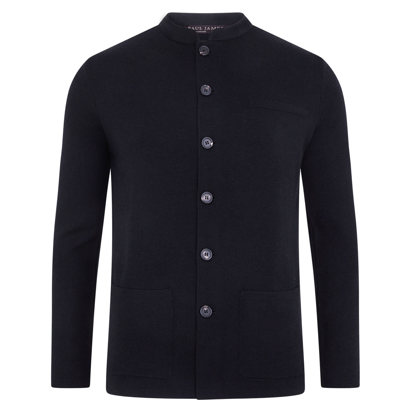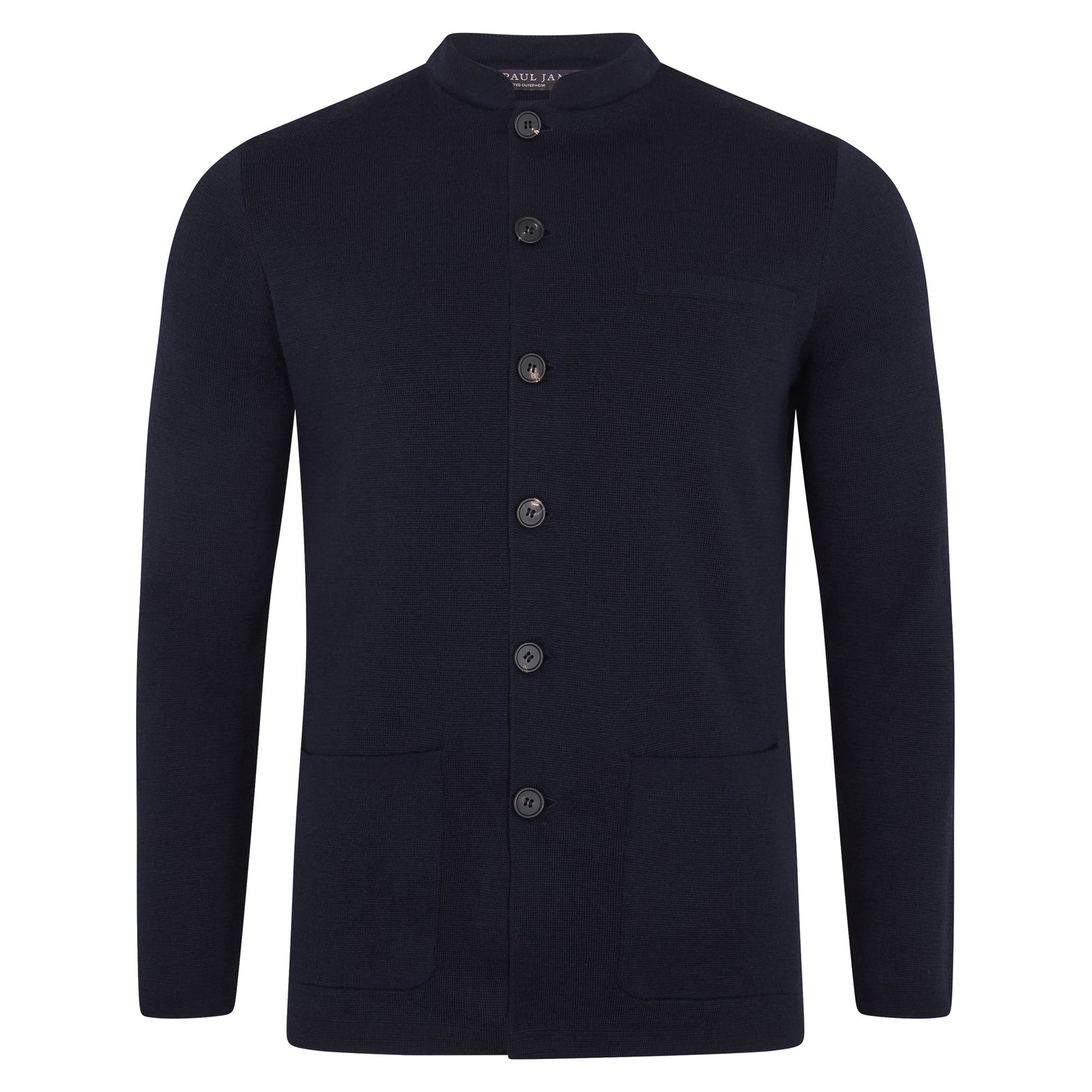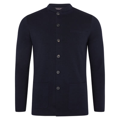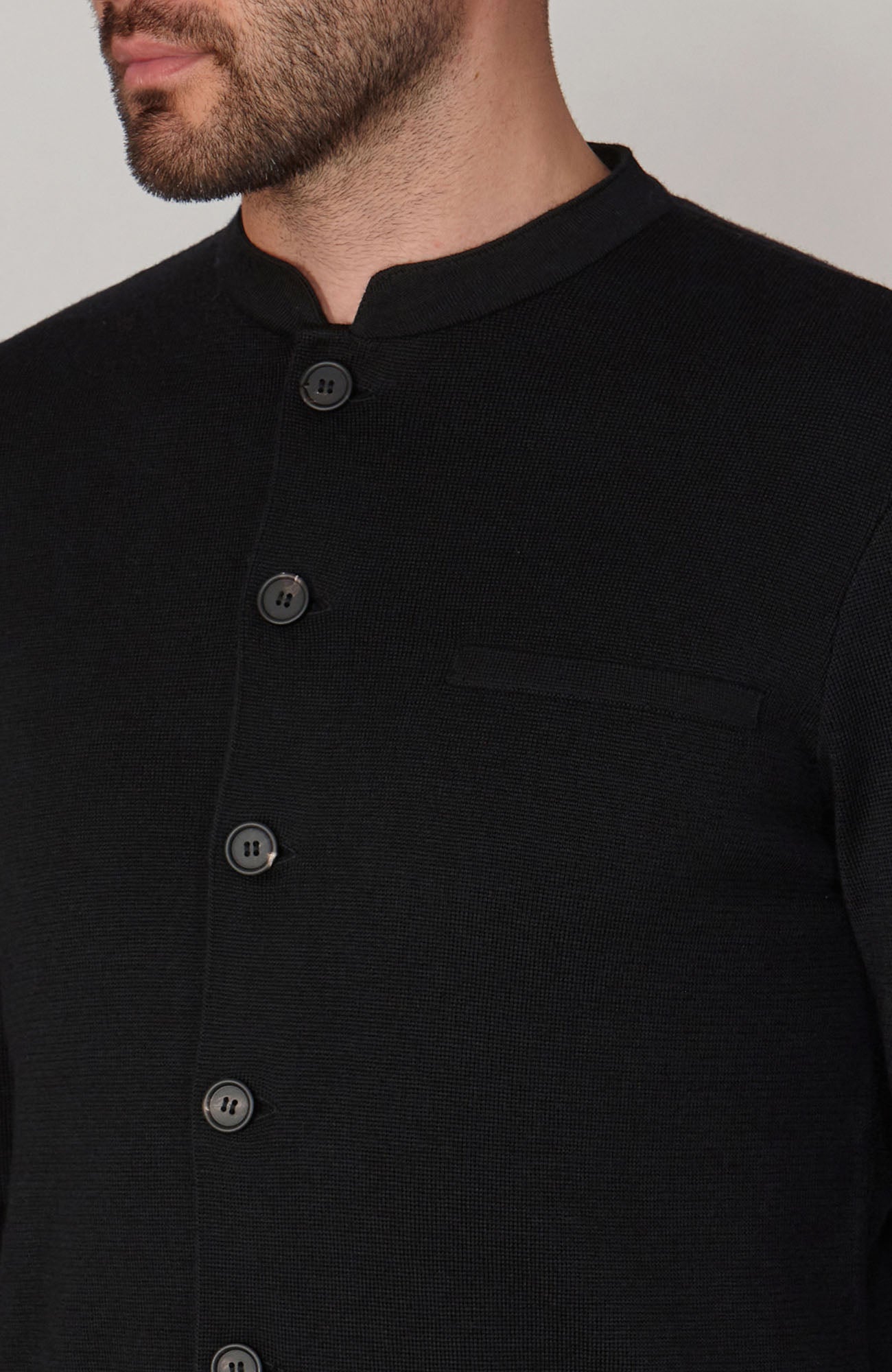 Mens Extra Fine Merino Wool Knitted Nehru Jacket