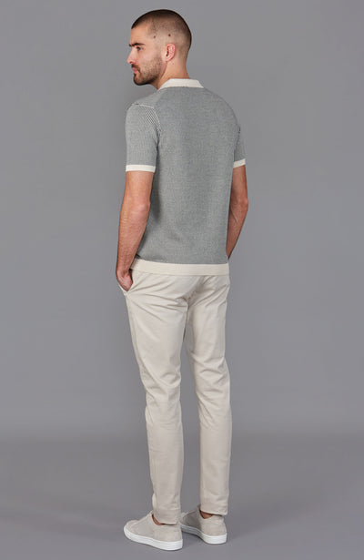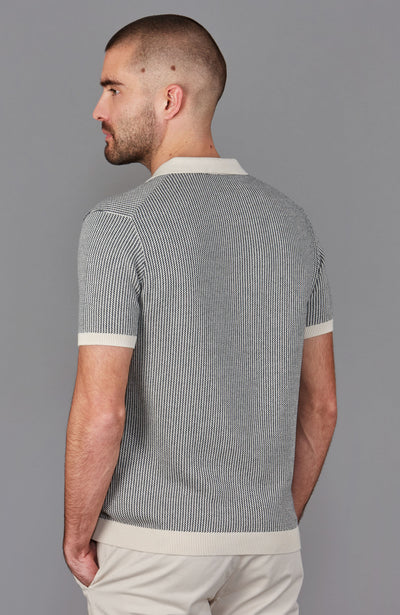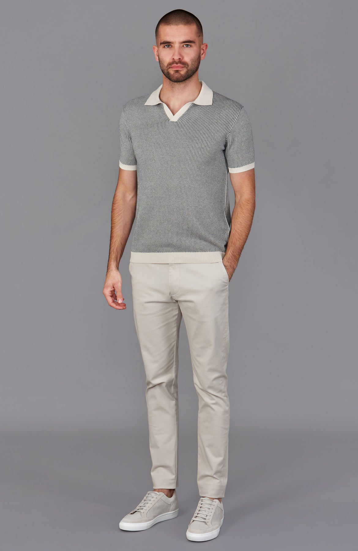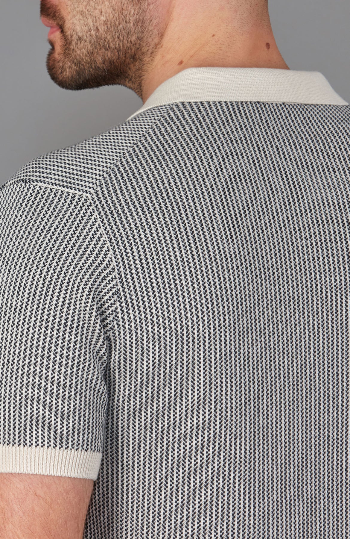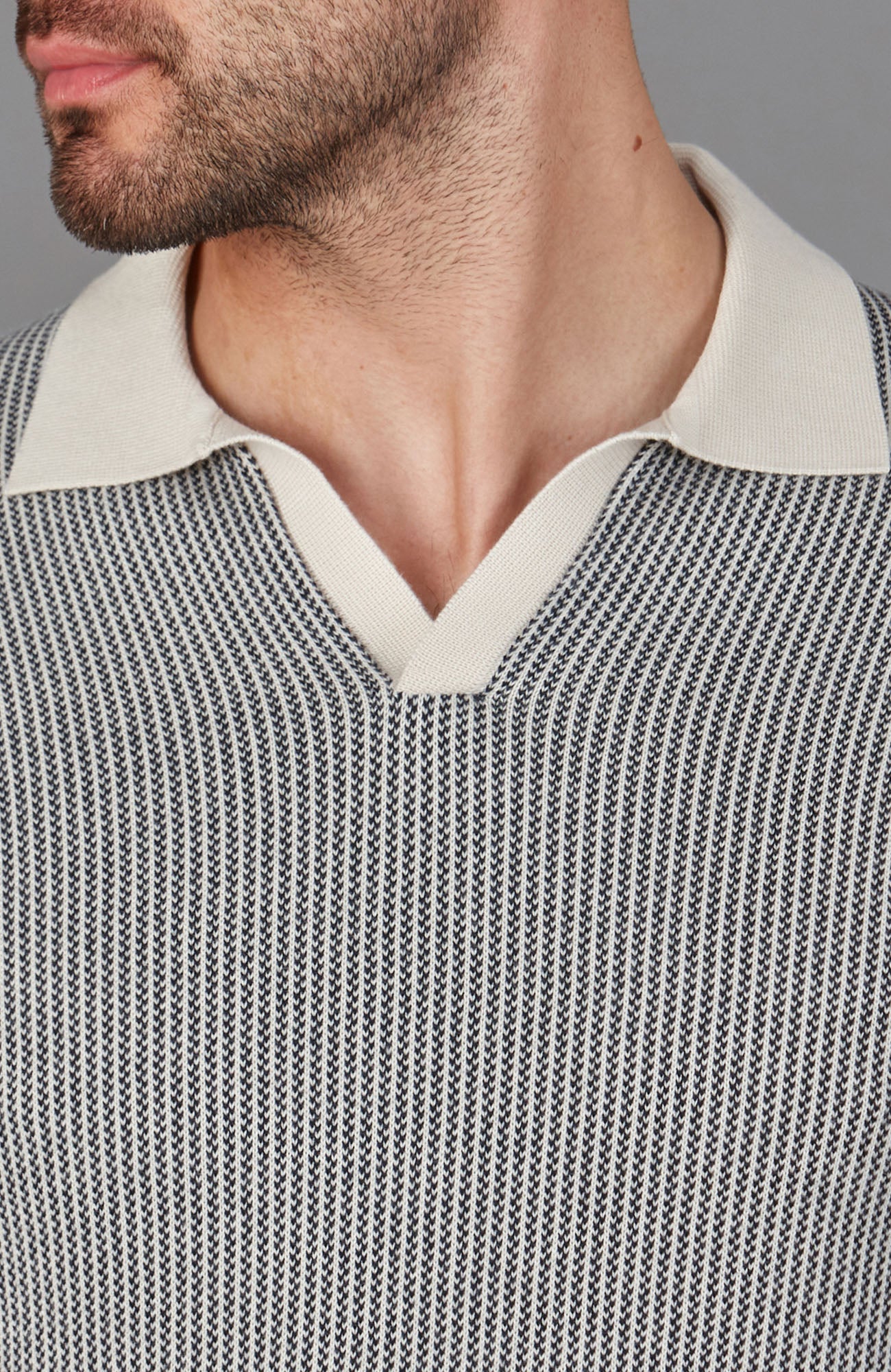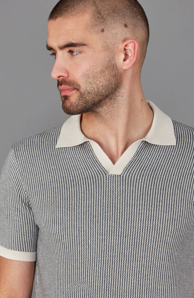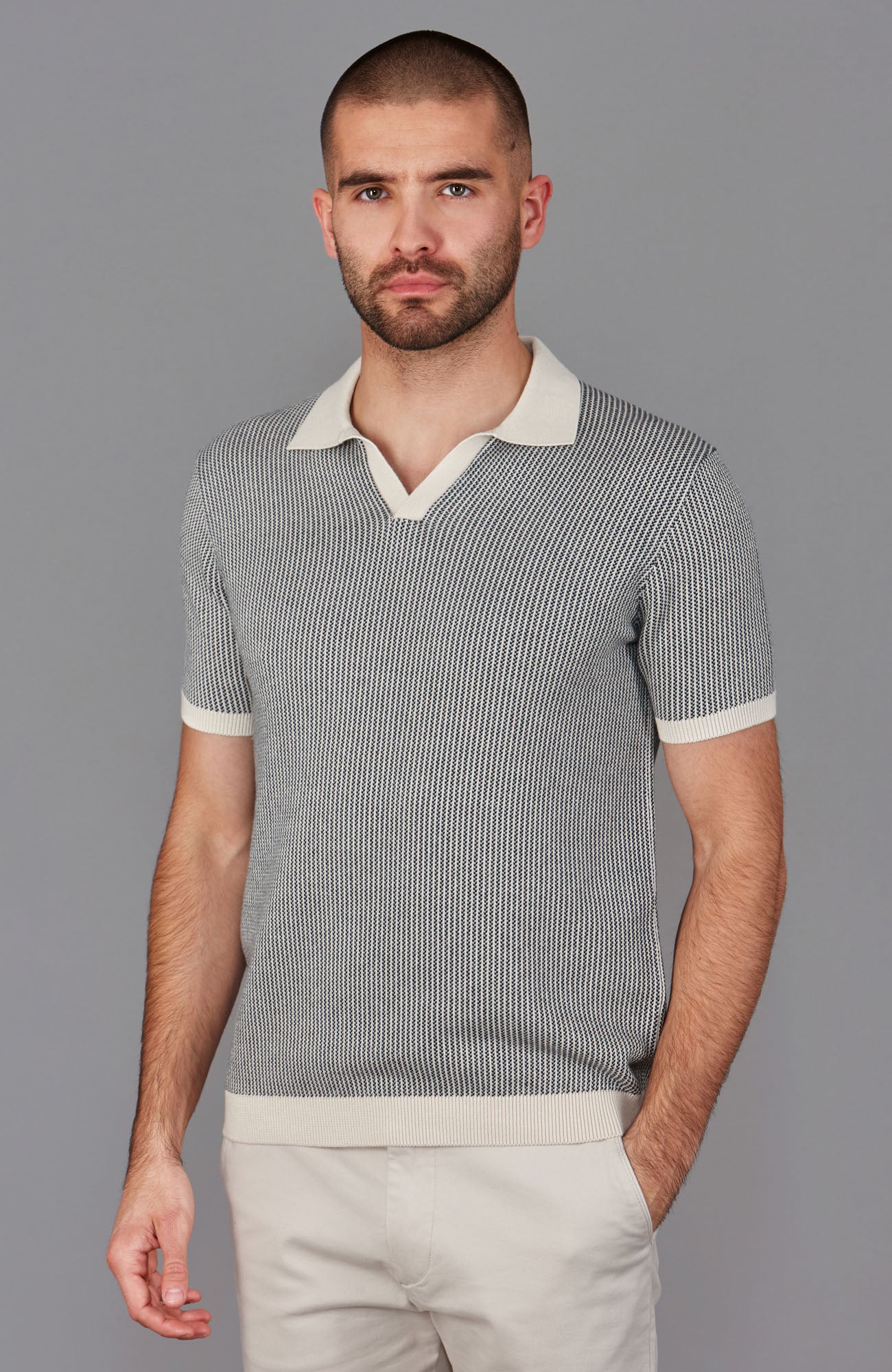 Inspired by our bestselling Cotton Tuck Stitch Fisherman Jumper, Gallo is a stylish open-collar polo shirt. With its similar Nordic aesthetic, the unique all-over jacquard structure, ribbed hem and cuff detail and regular silhouette make this an easy-to-style wardrobe staple. Offering a slightly heavier weight to our classic polo shirts, this regular-fit modern polo is perfect for the transitional months, and will look great all year round.