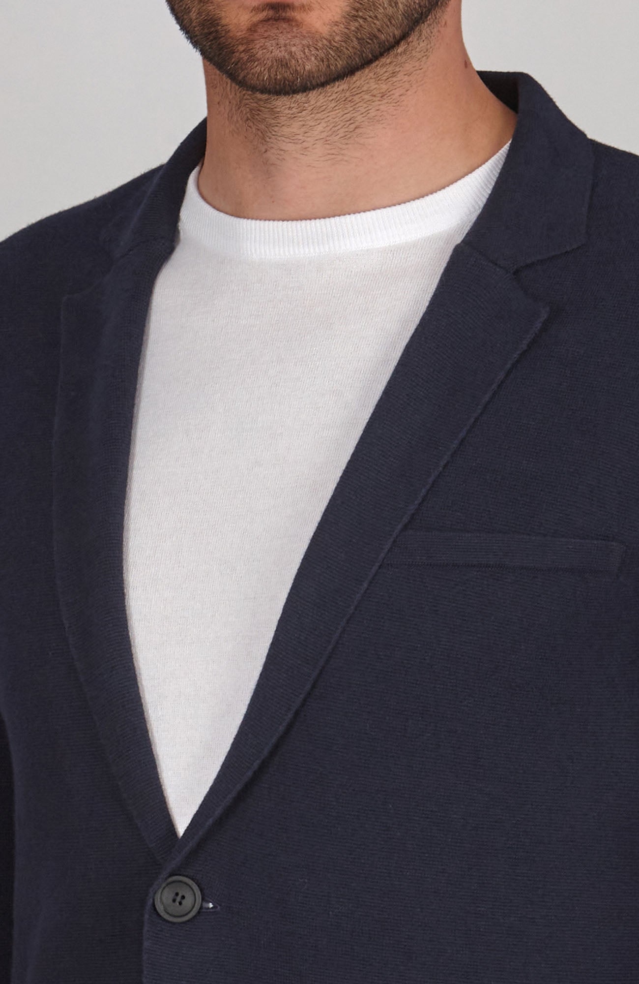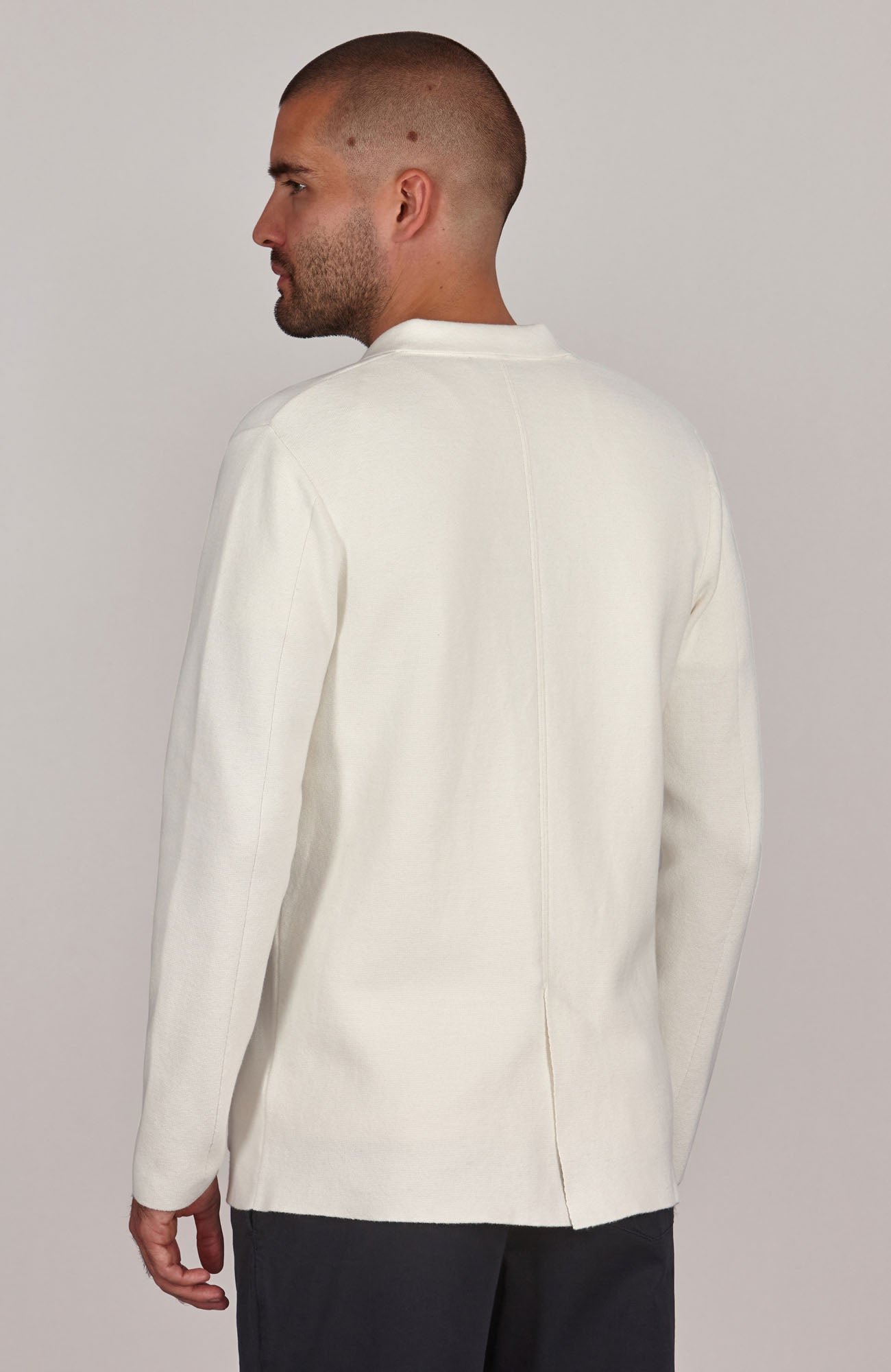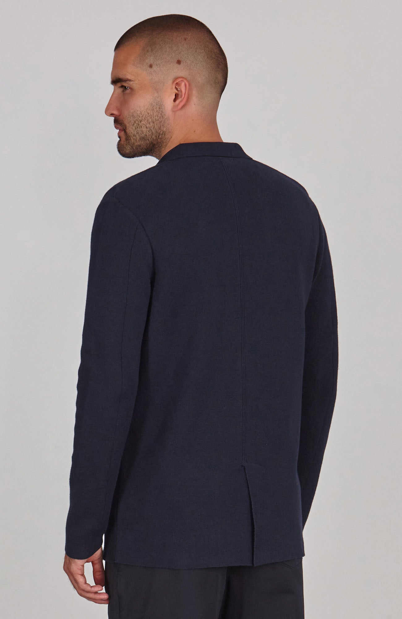 With a full Milano base knit in a 14-gauge structure, Luca combines a structured look with an unstructured, relaxed fit. Thoughtful details, including Italian made buttons, a mock welt pocket on the chest, and a back slit for ease of movement, make it adaptable for both professional and relaxed settings.