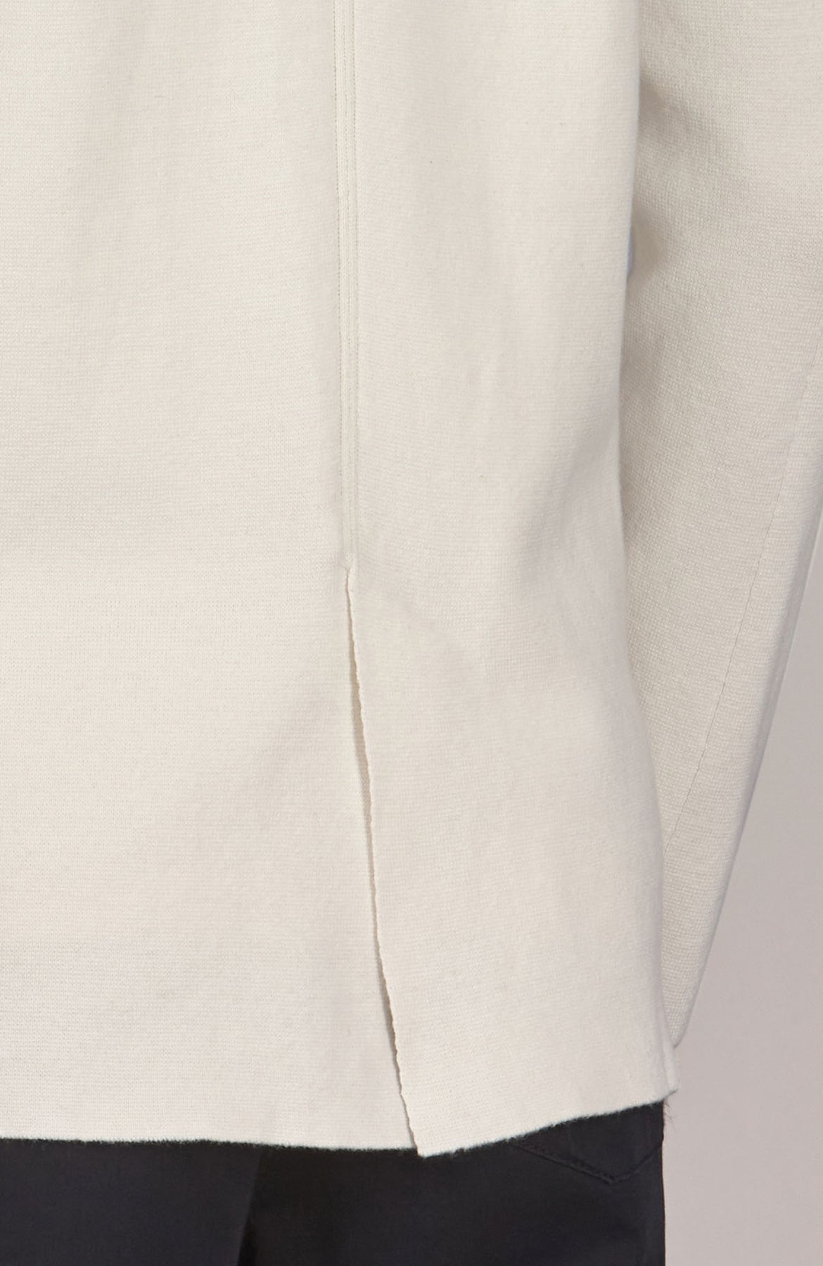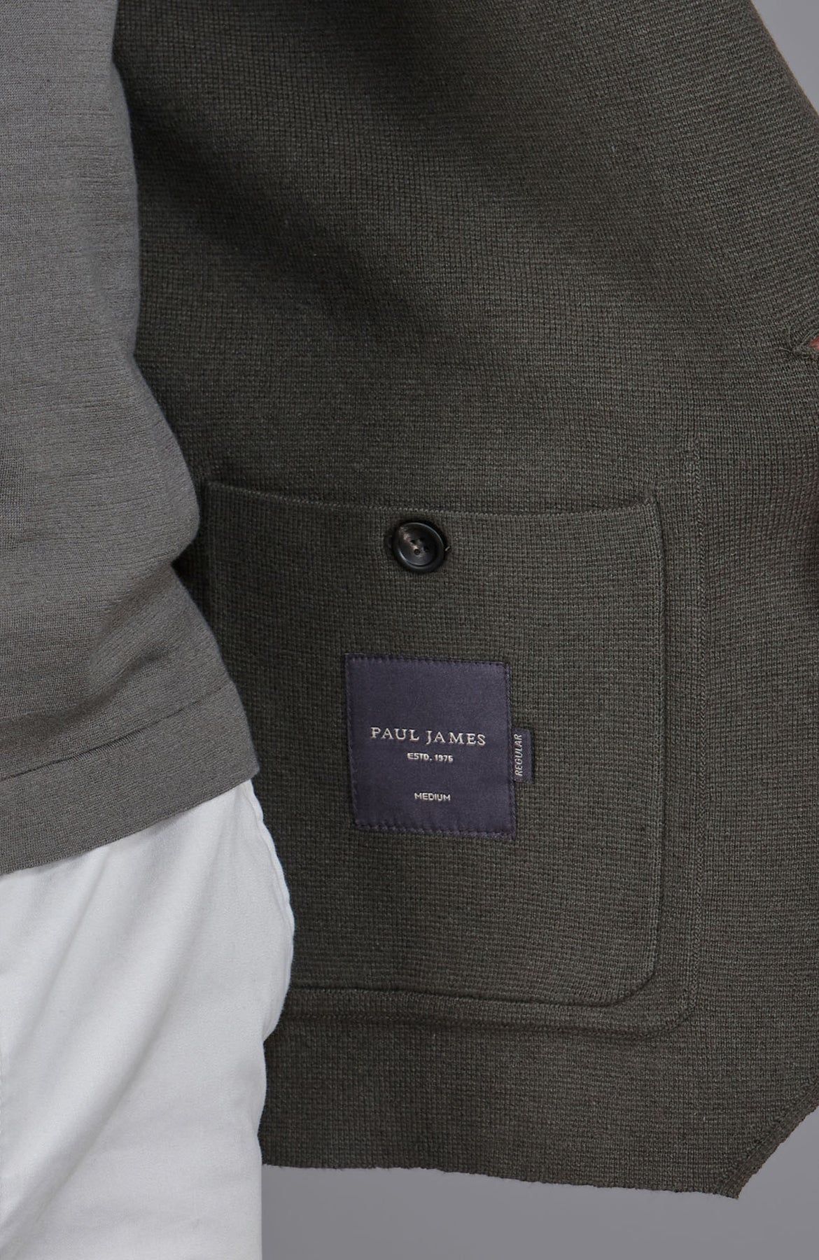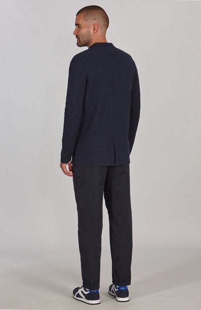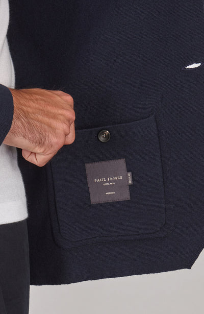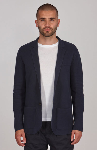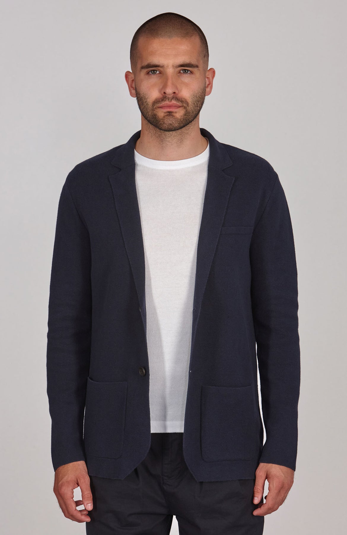 With a full Milano base knit in a 14-gauge structure, Luca combines a structured look with an unstructured, relaxed fit. Thoughtful details, including Italian made buttons, a mock welt pocket on the chest, and a back slit for ease of movement, make it adaptable for both professional and relaxed settings.