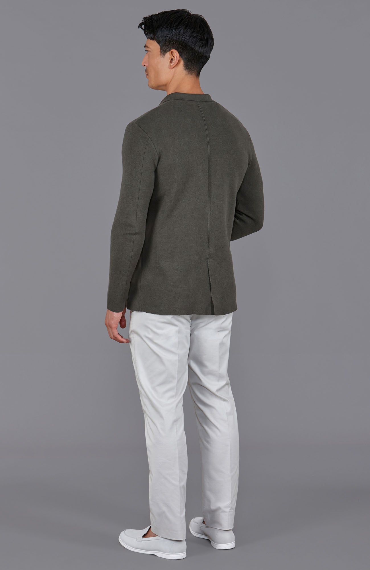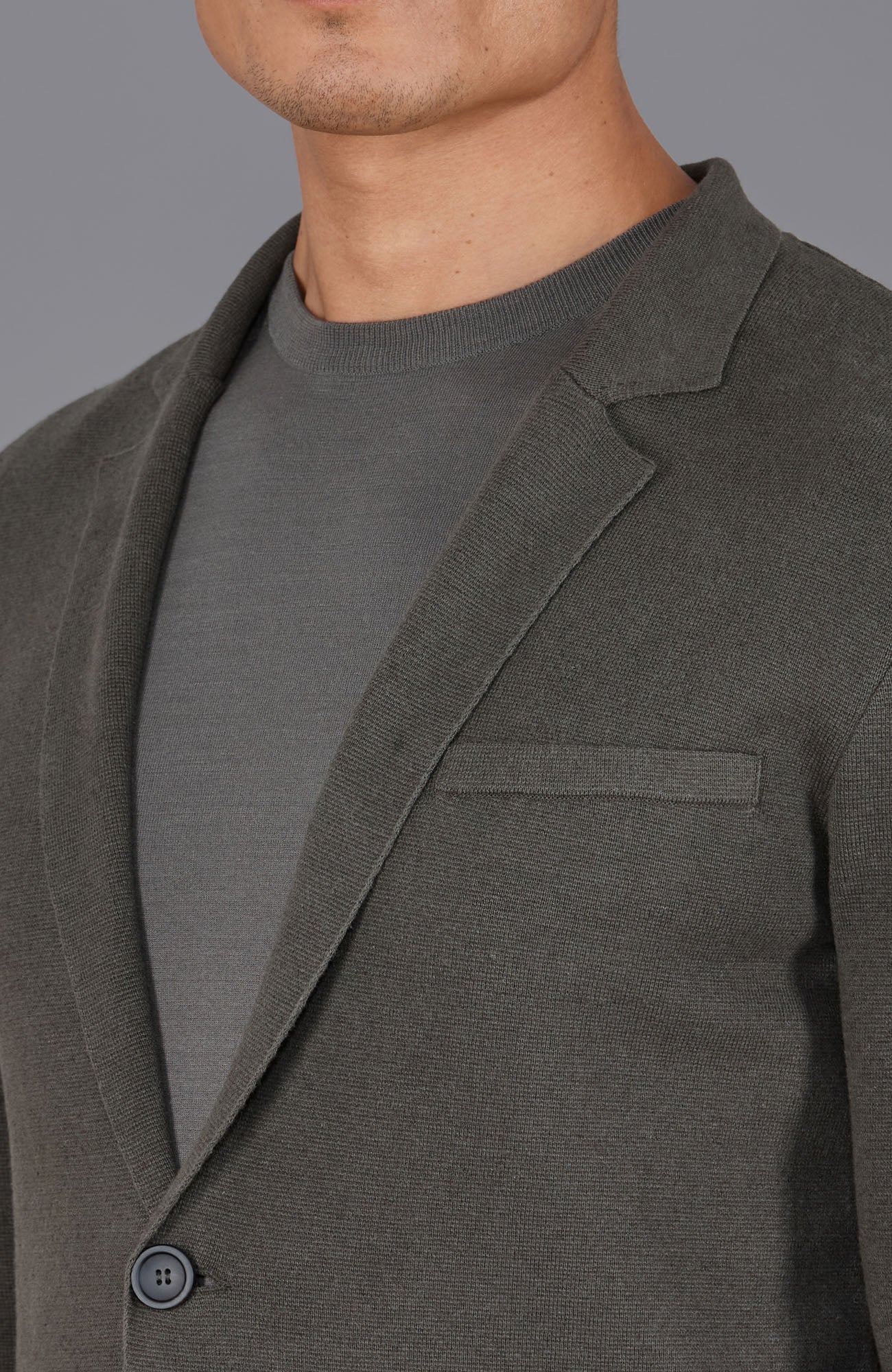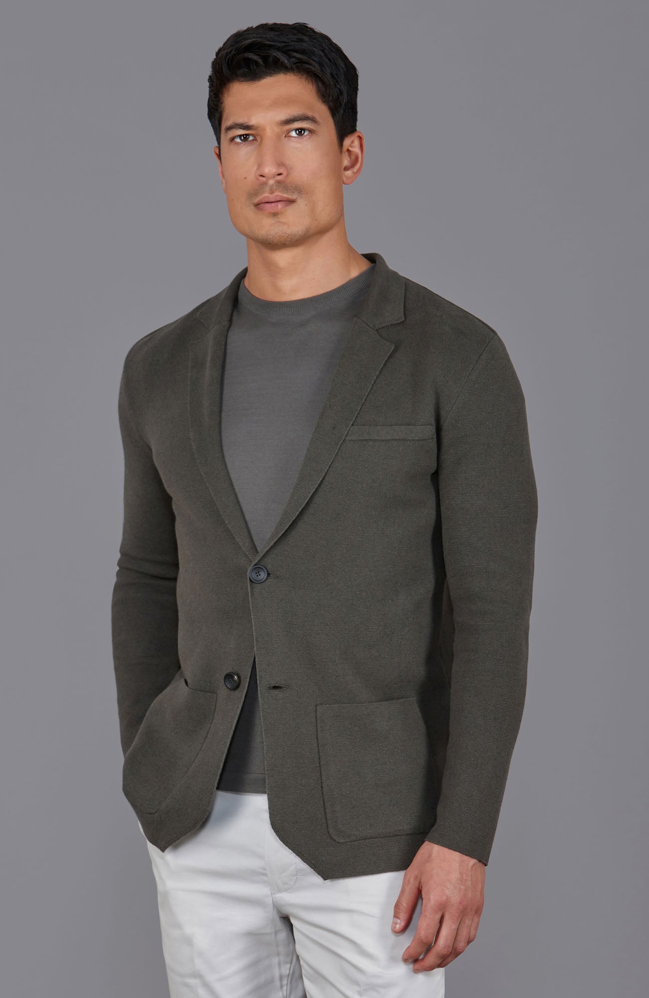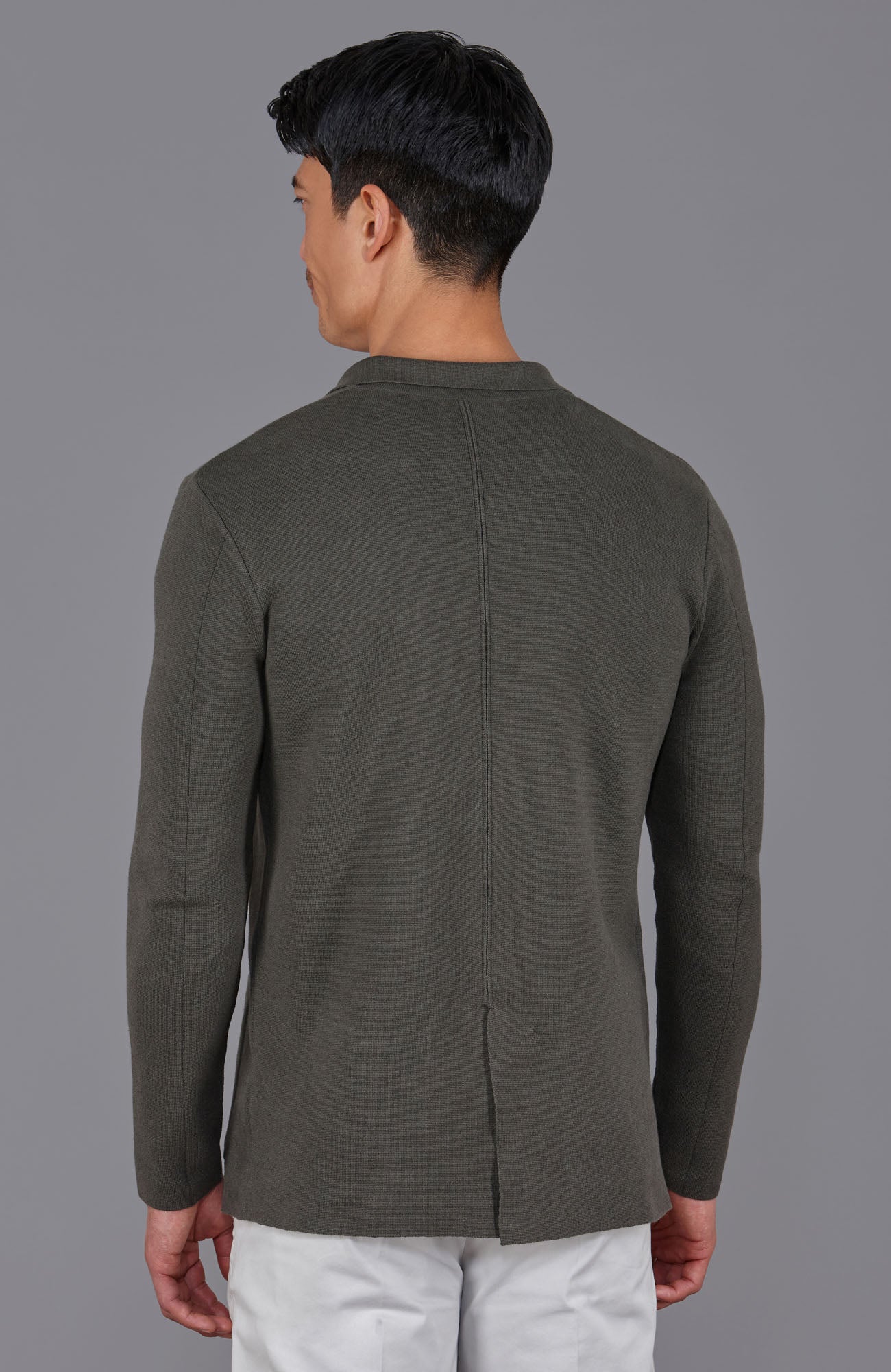 With a full Milano base knit in a 14-gauge structure, Luca combines a structured look with an unstructured, relaxed fit. Thoughtful details, including Italian made buttons, a mock welt pocket on the chest, and a back slit for ease of movement, make it adaptable for both professional and relaxed settings.