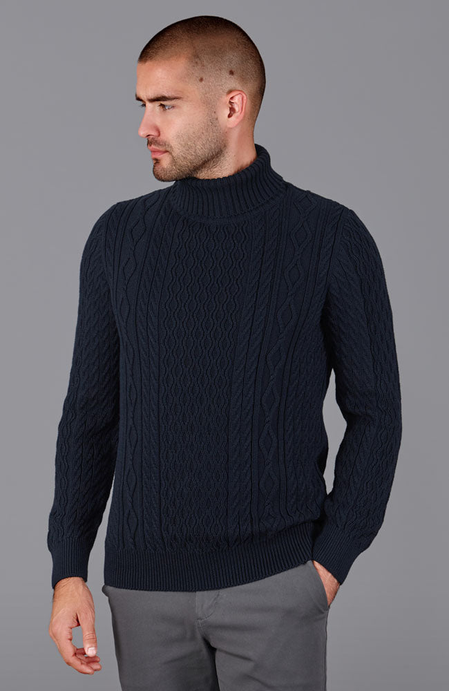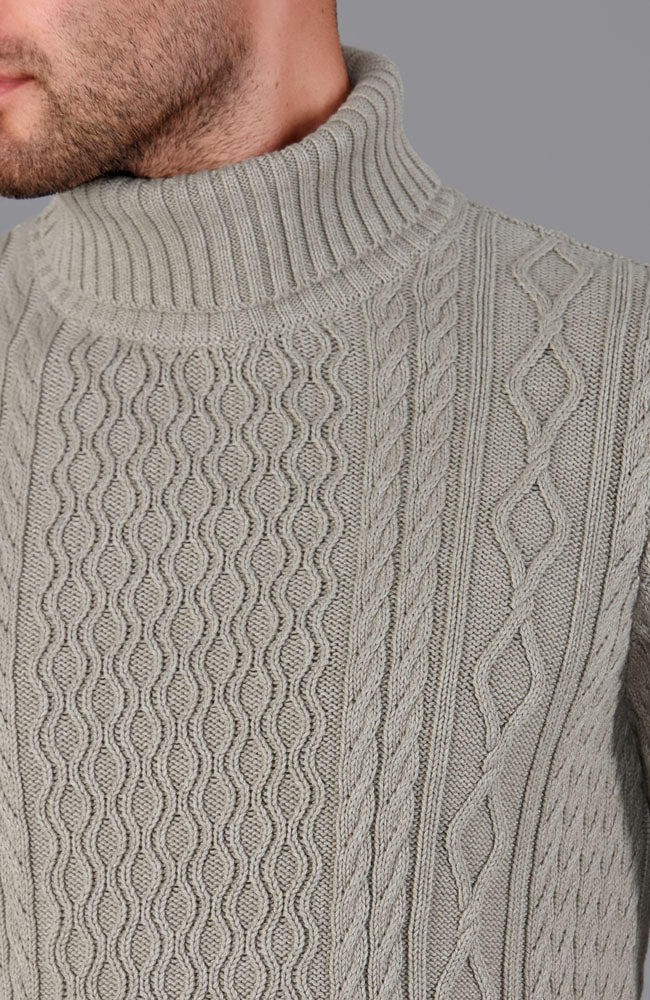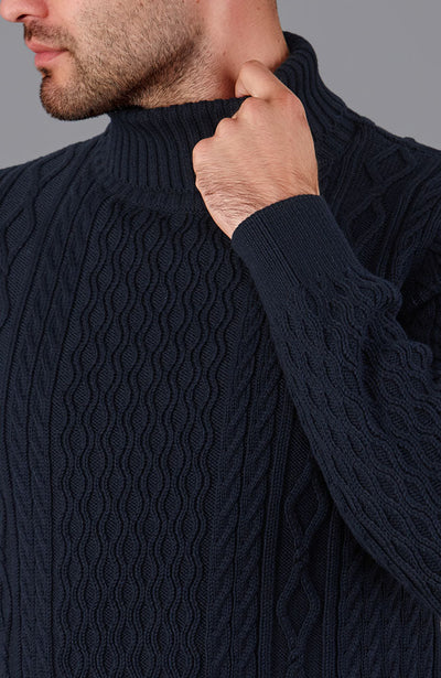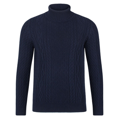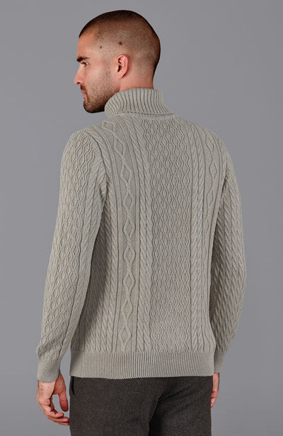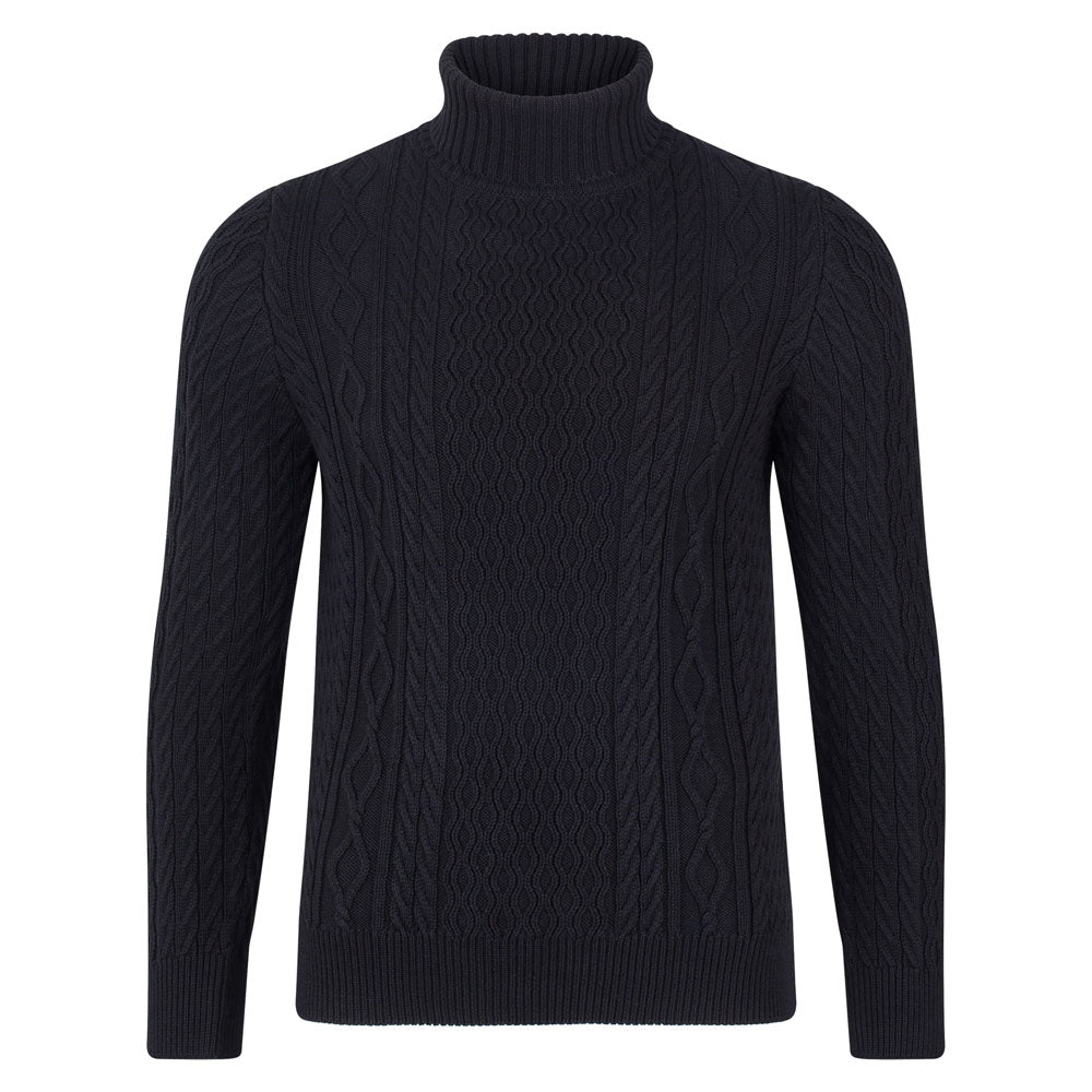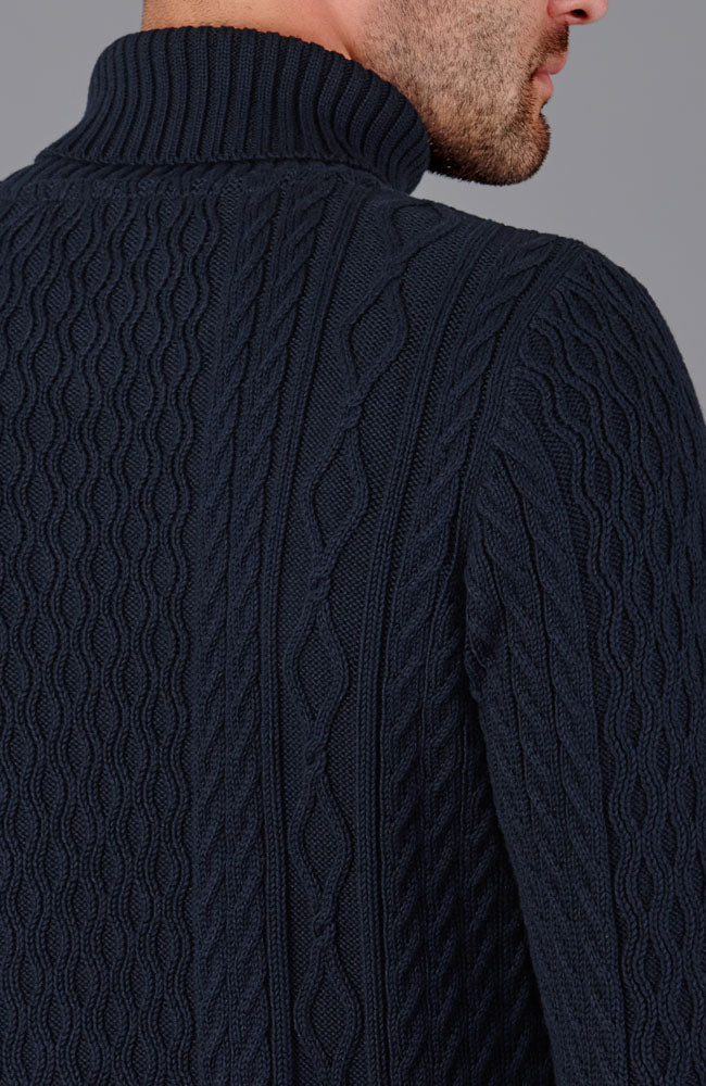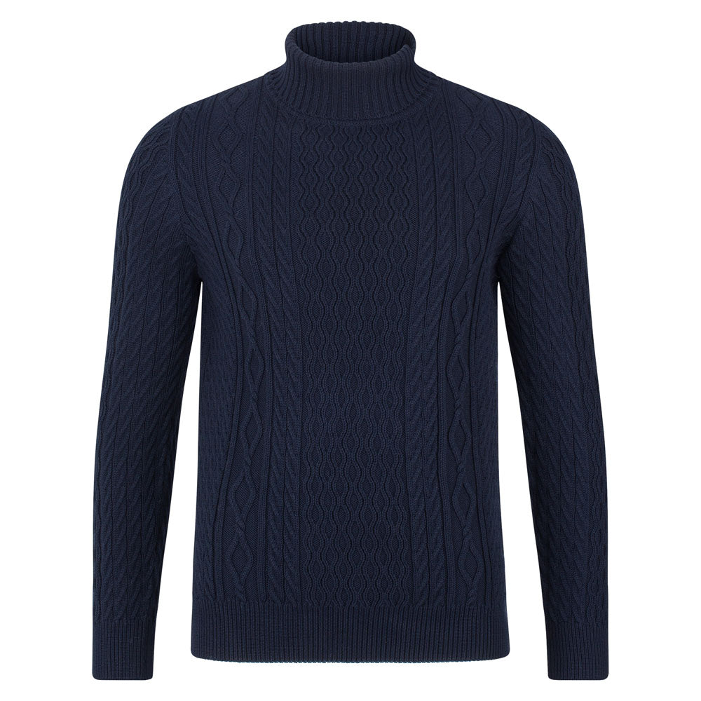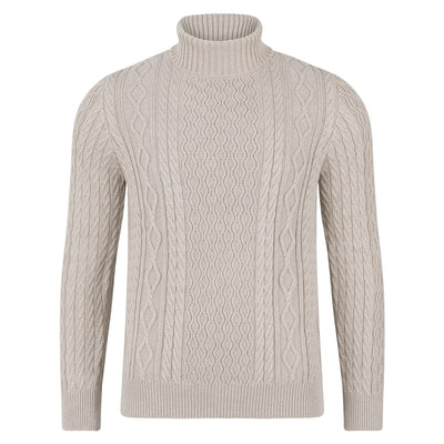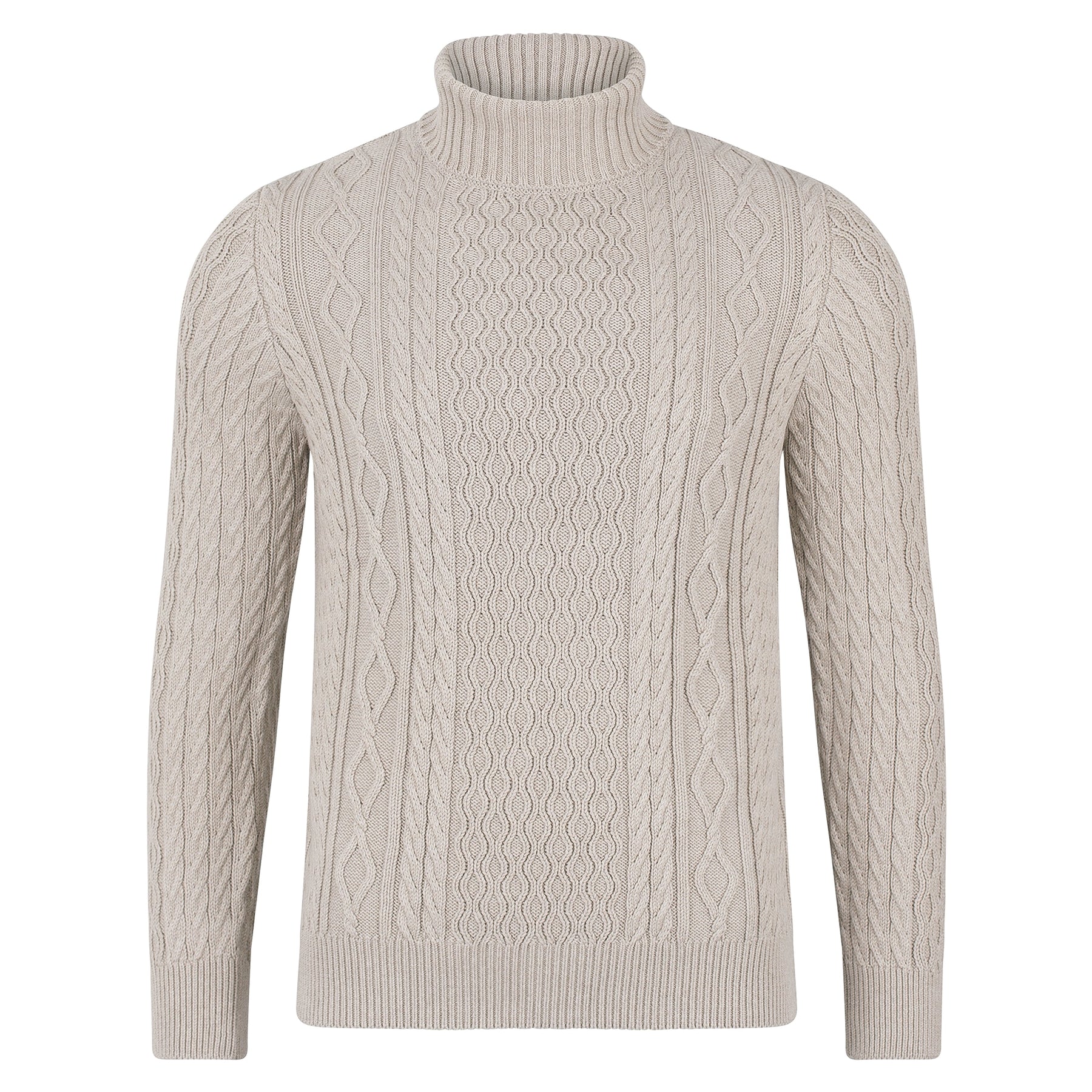 Mens Midweight Cotton Roll Neck Cable Jumper