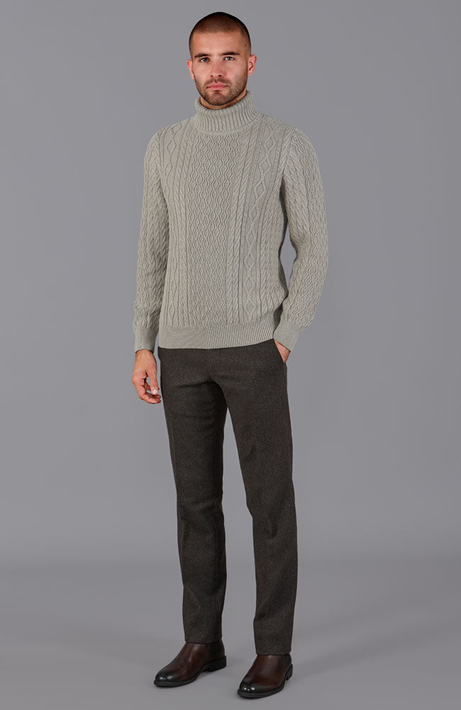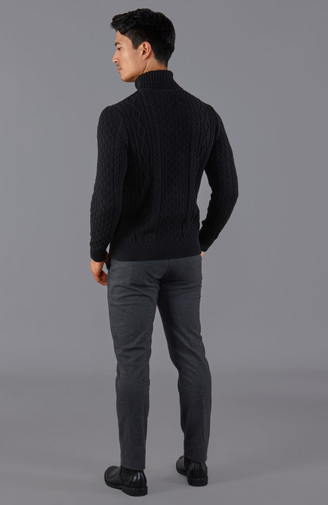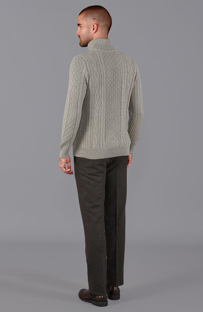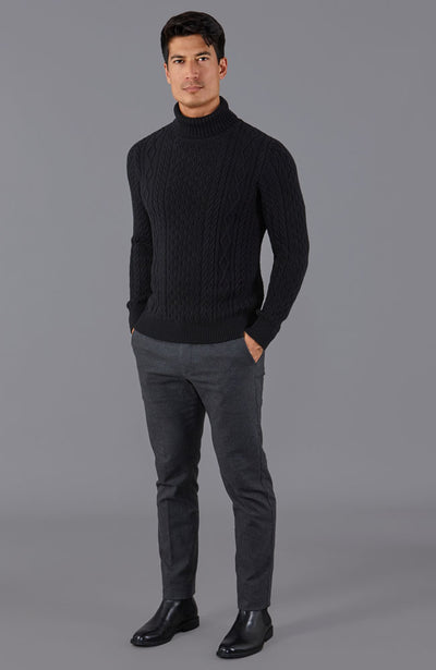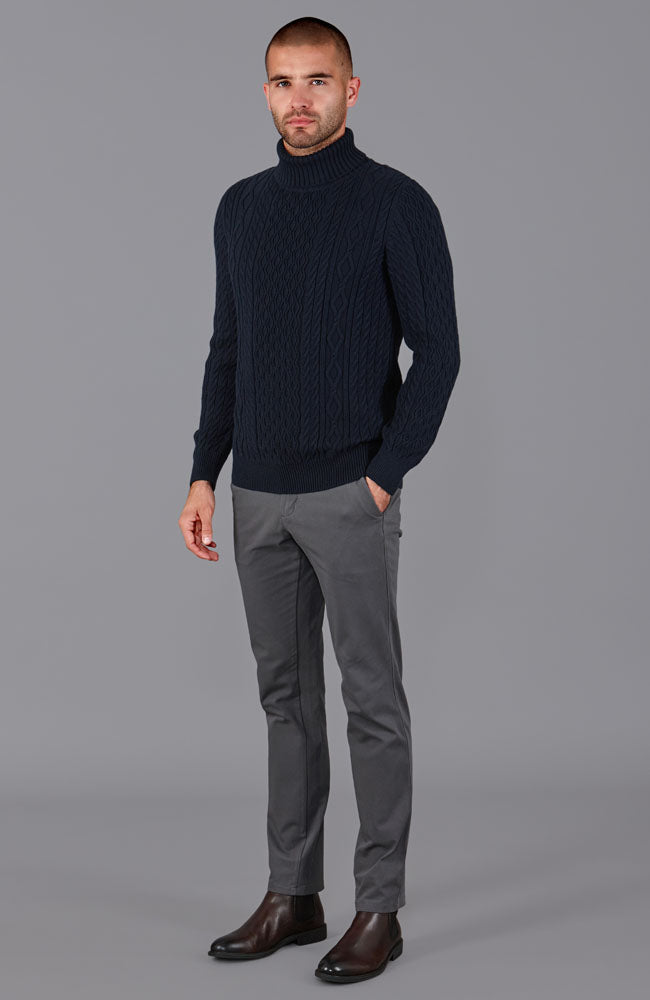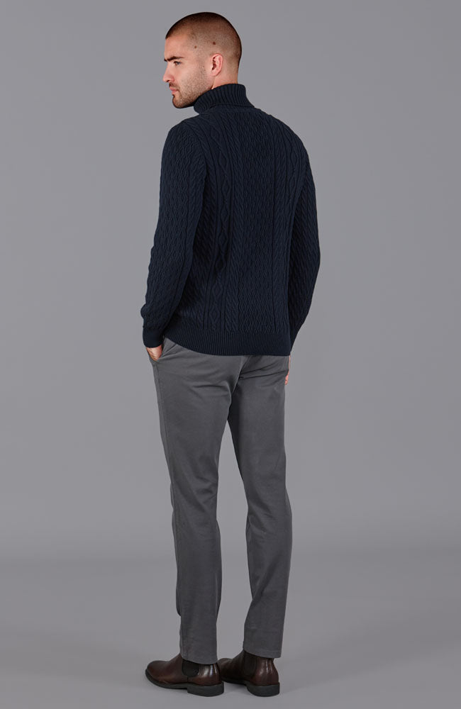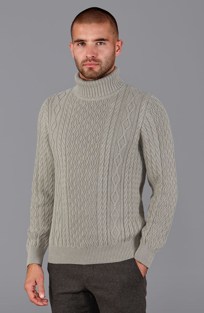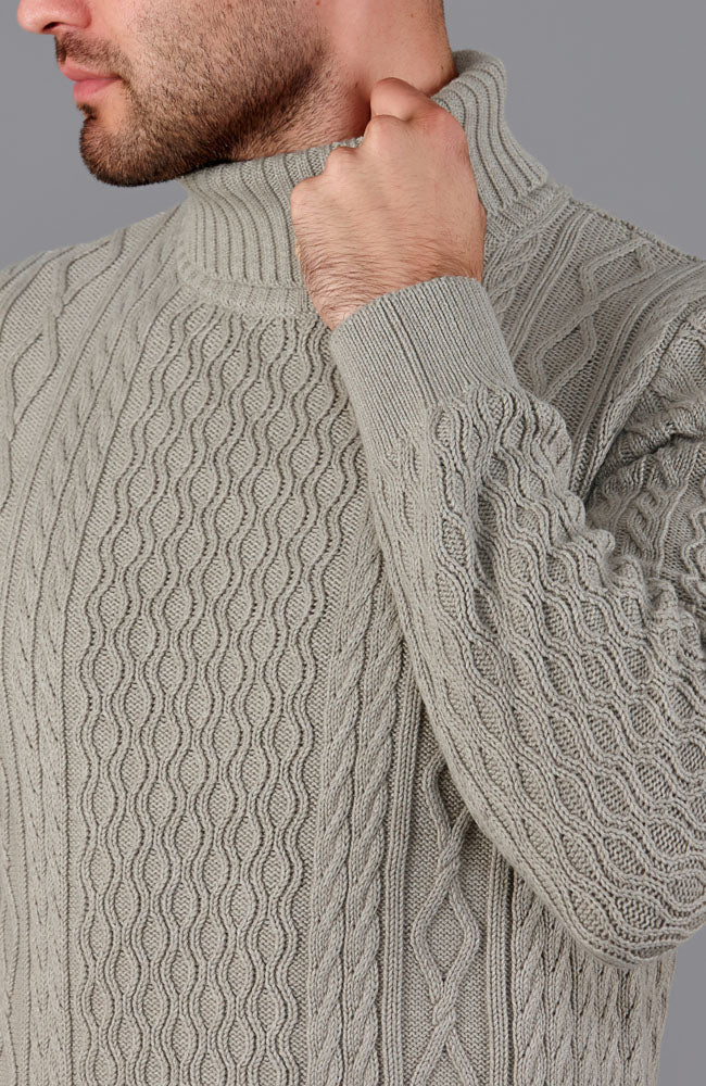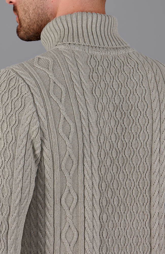 Mens Midweight Cotton Roll Neck Cable Jumper