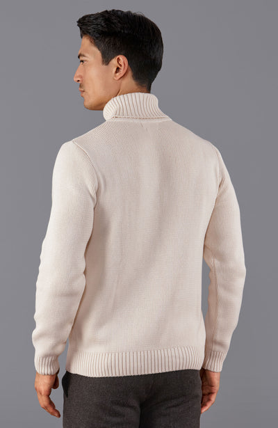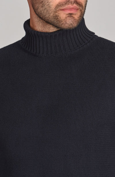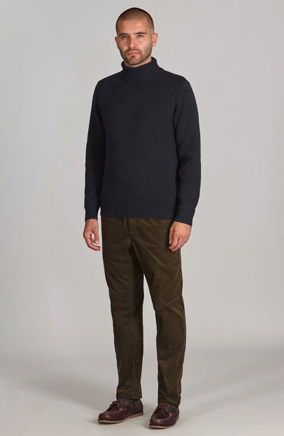 Mens Midweight Cotton Fitted Submariner Roll Neck Jumper