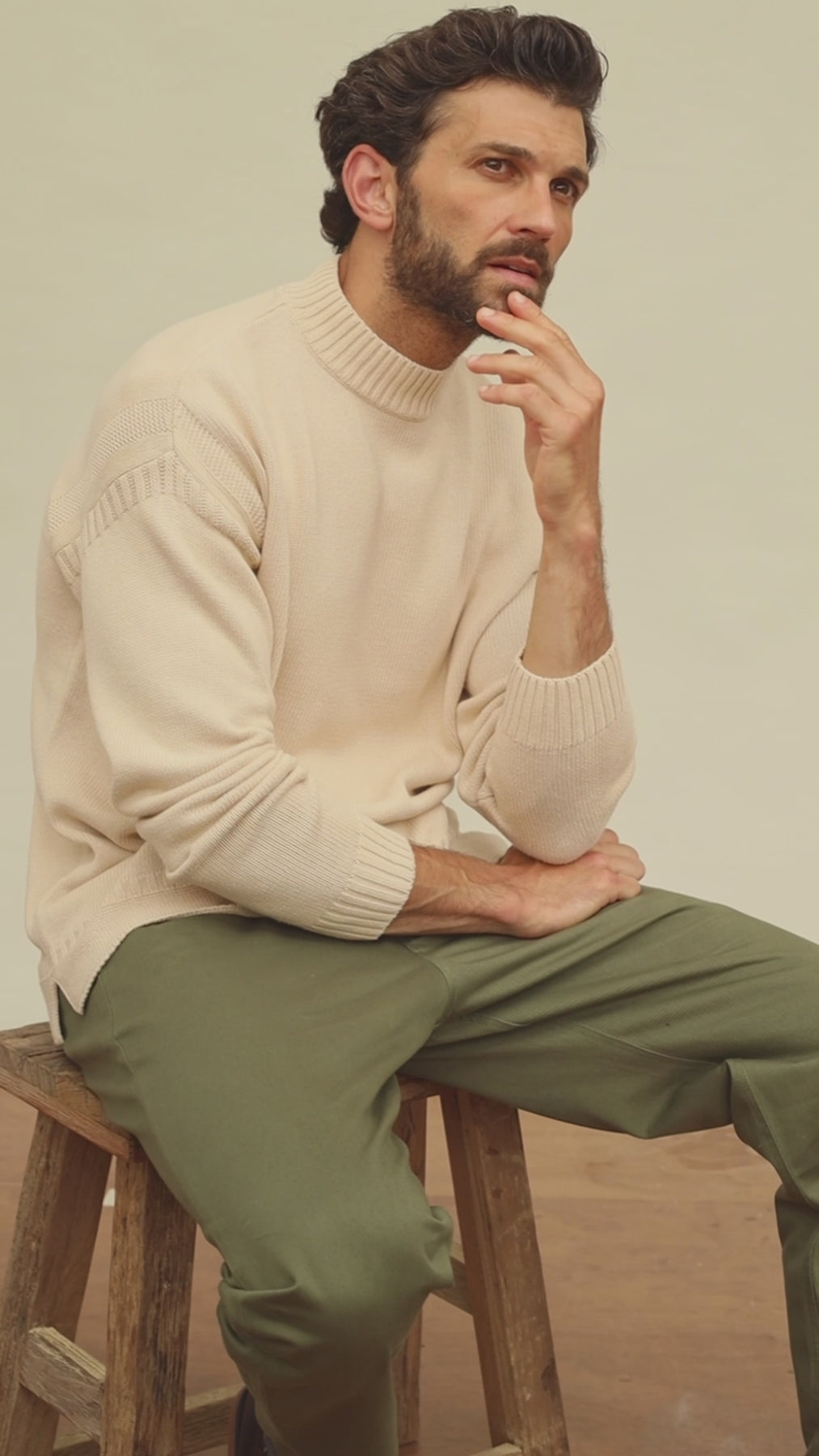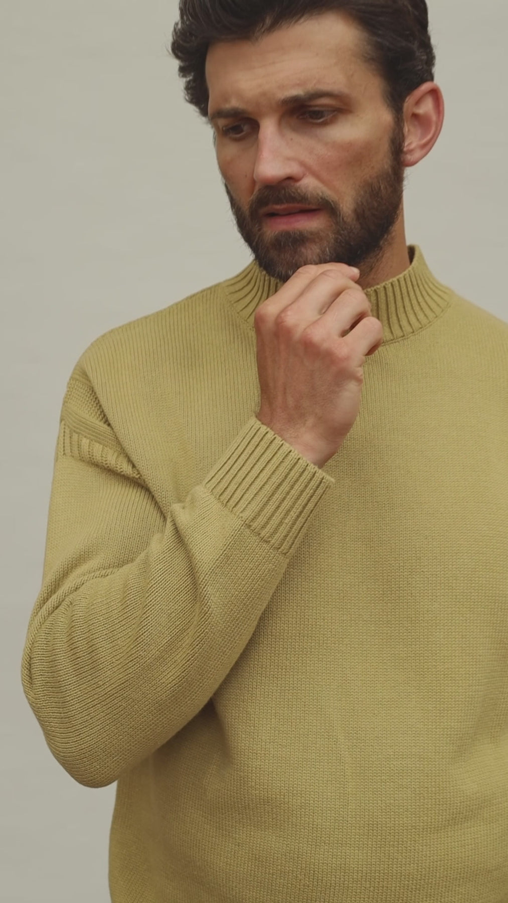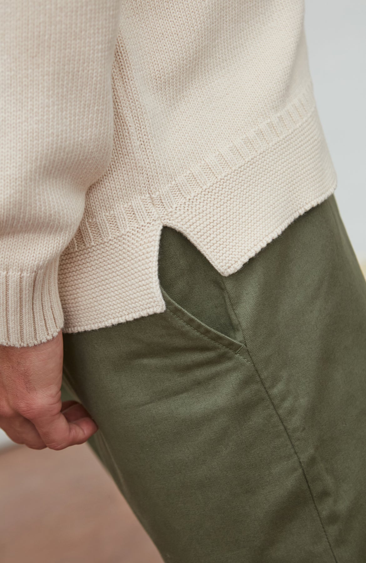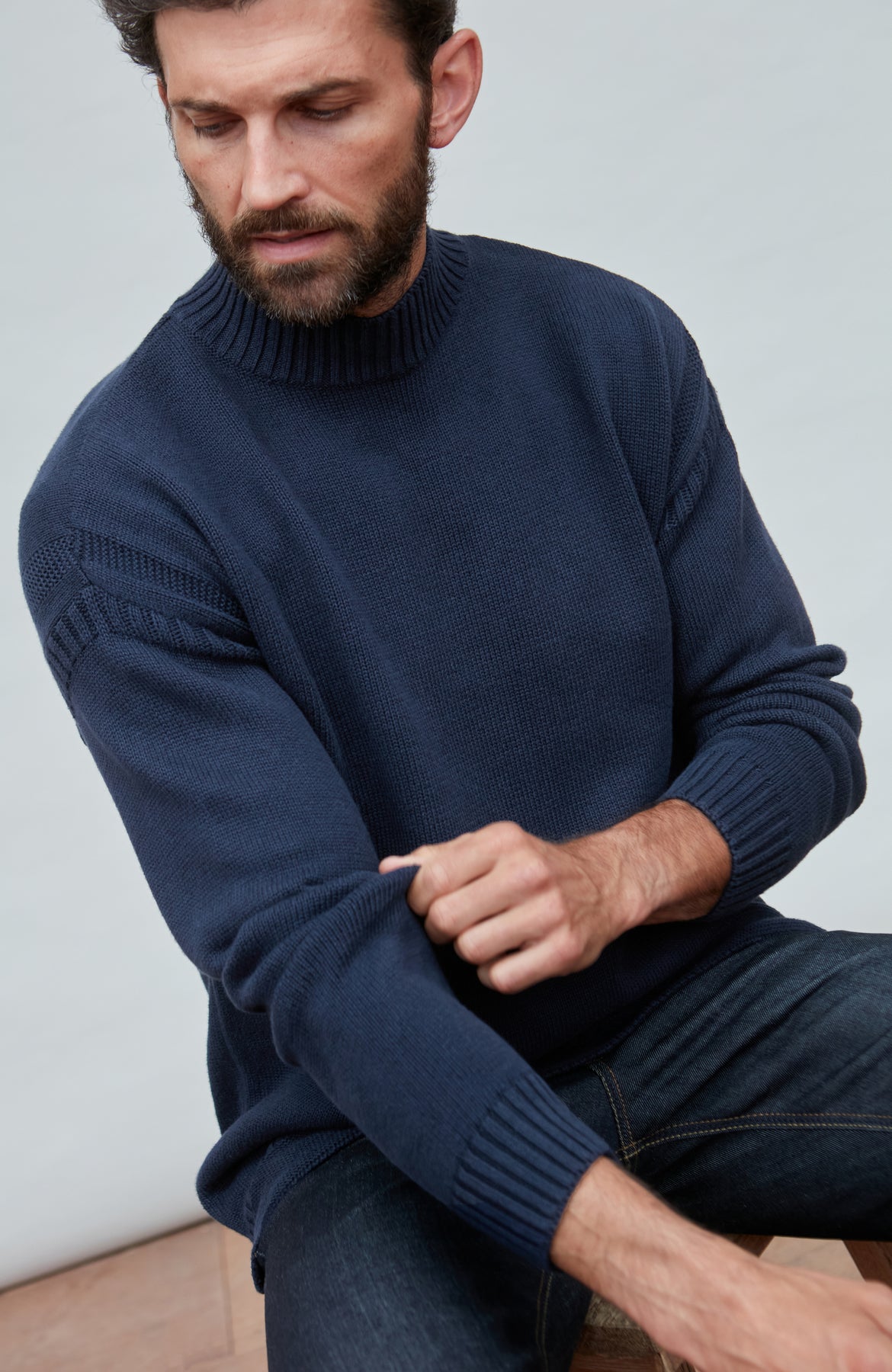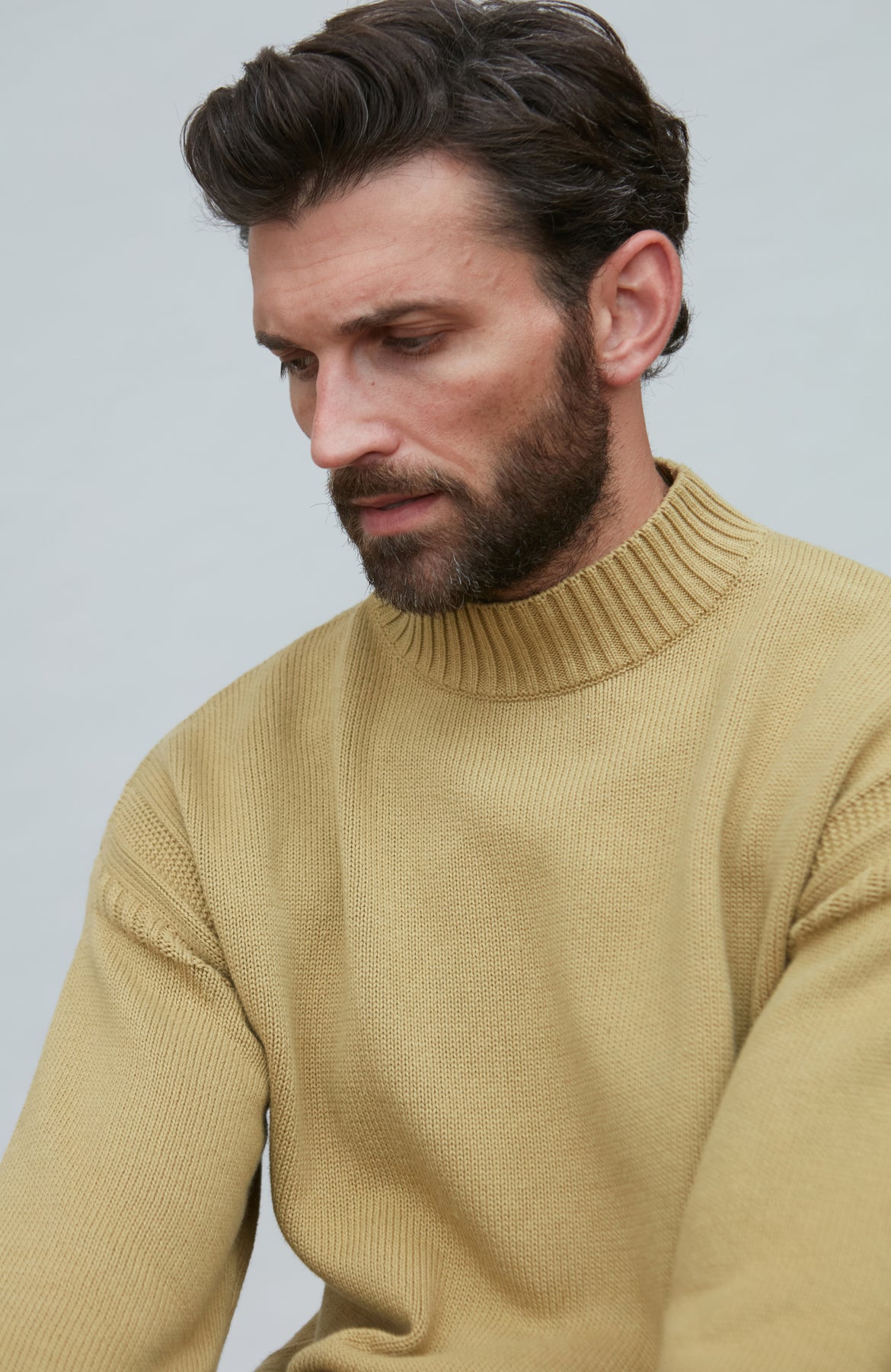 Mens Midweight Organic Cotton Linen Mock Neck Gansey Jumper