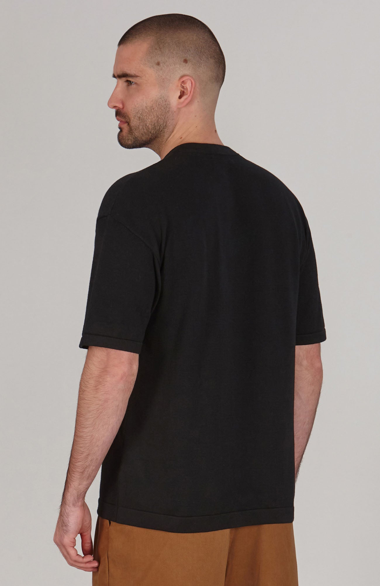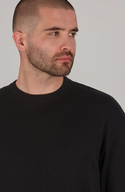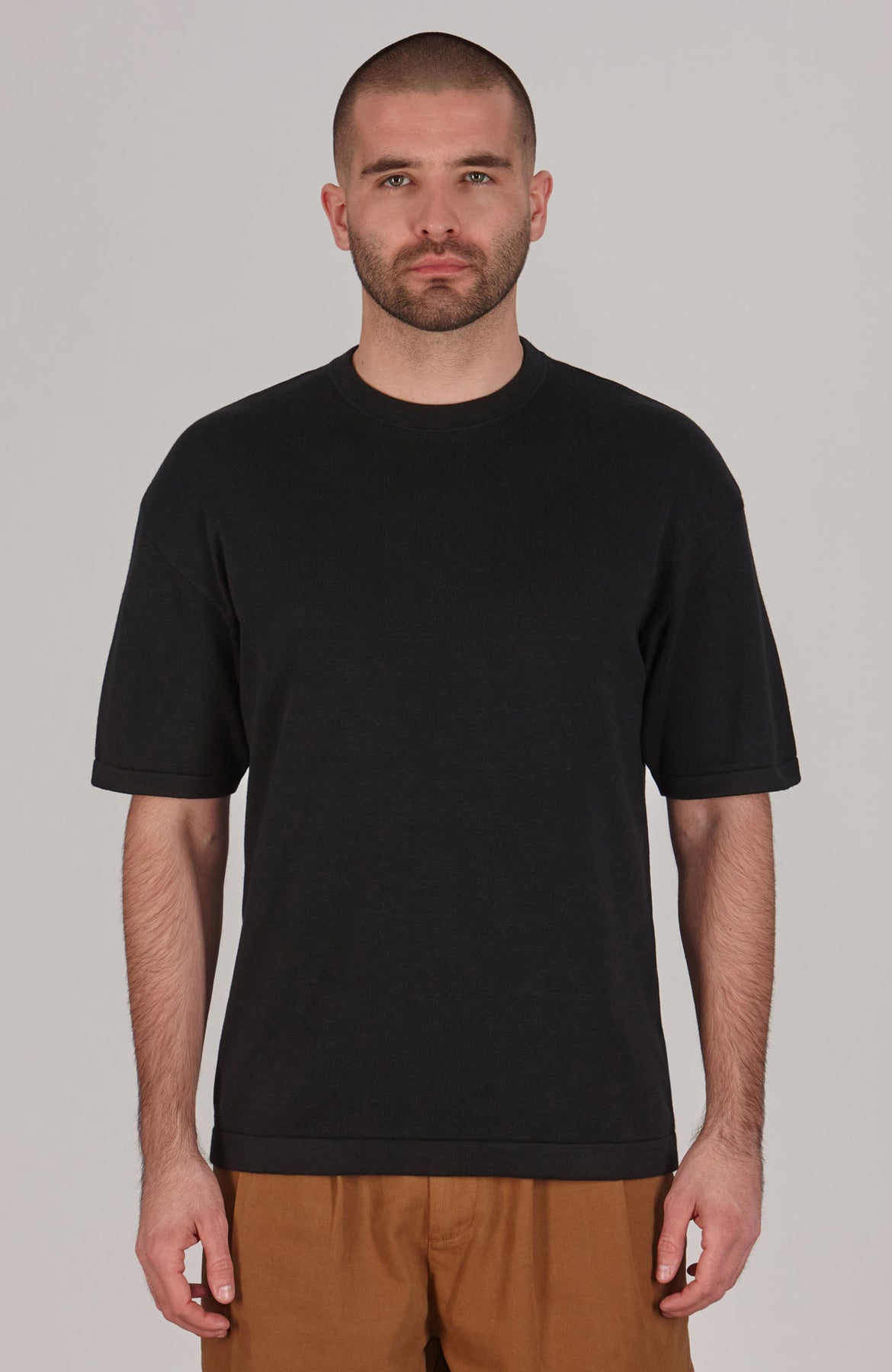 black mens relaxed fit knitted t-shirt