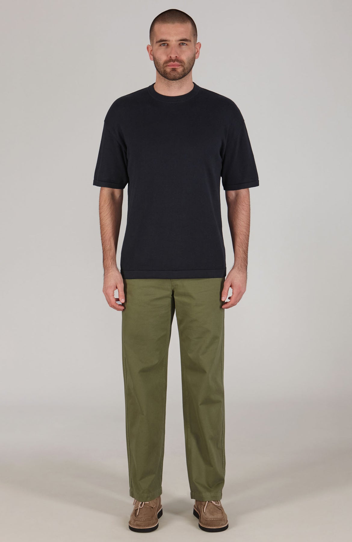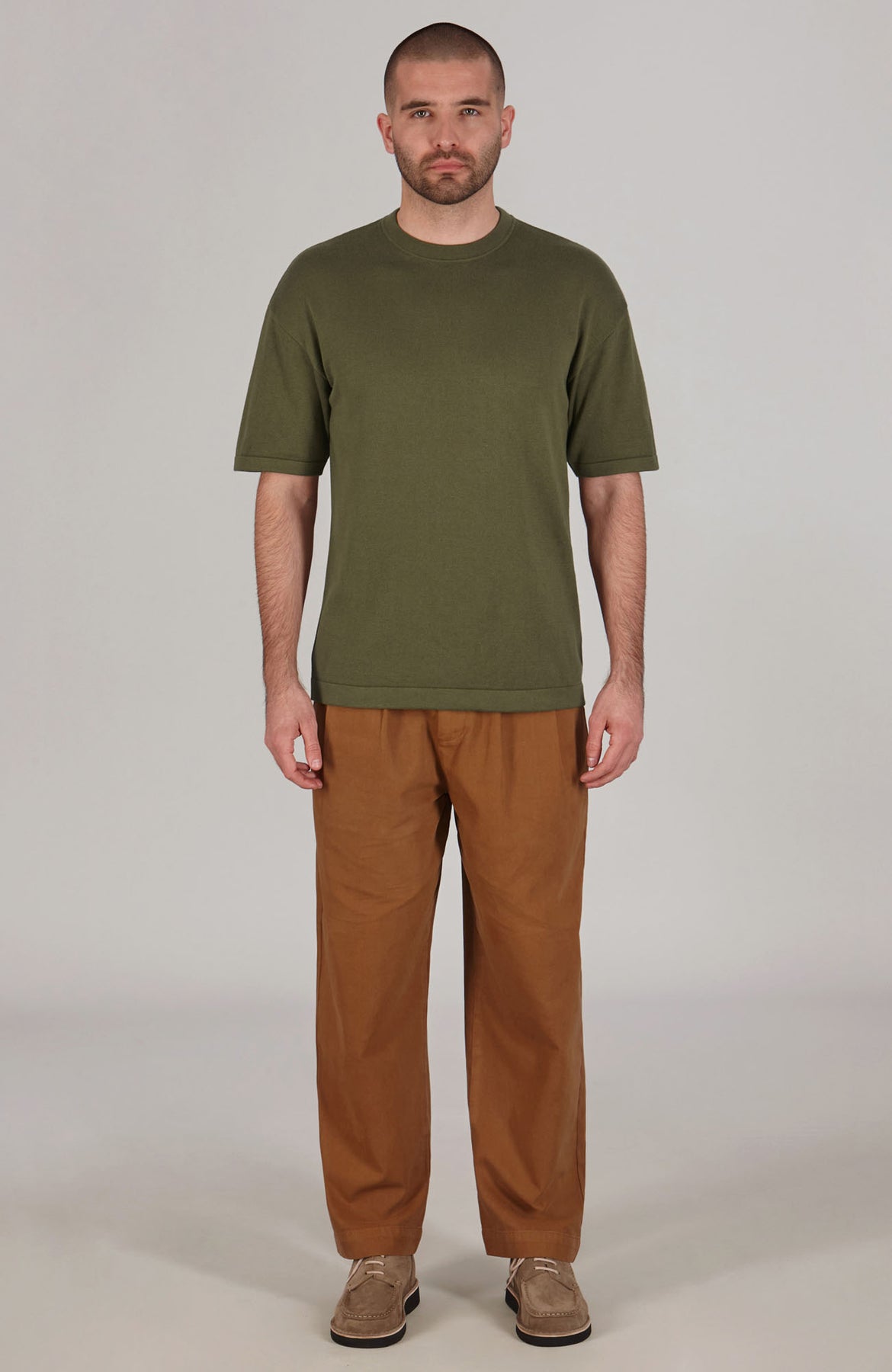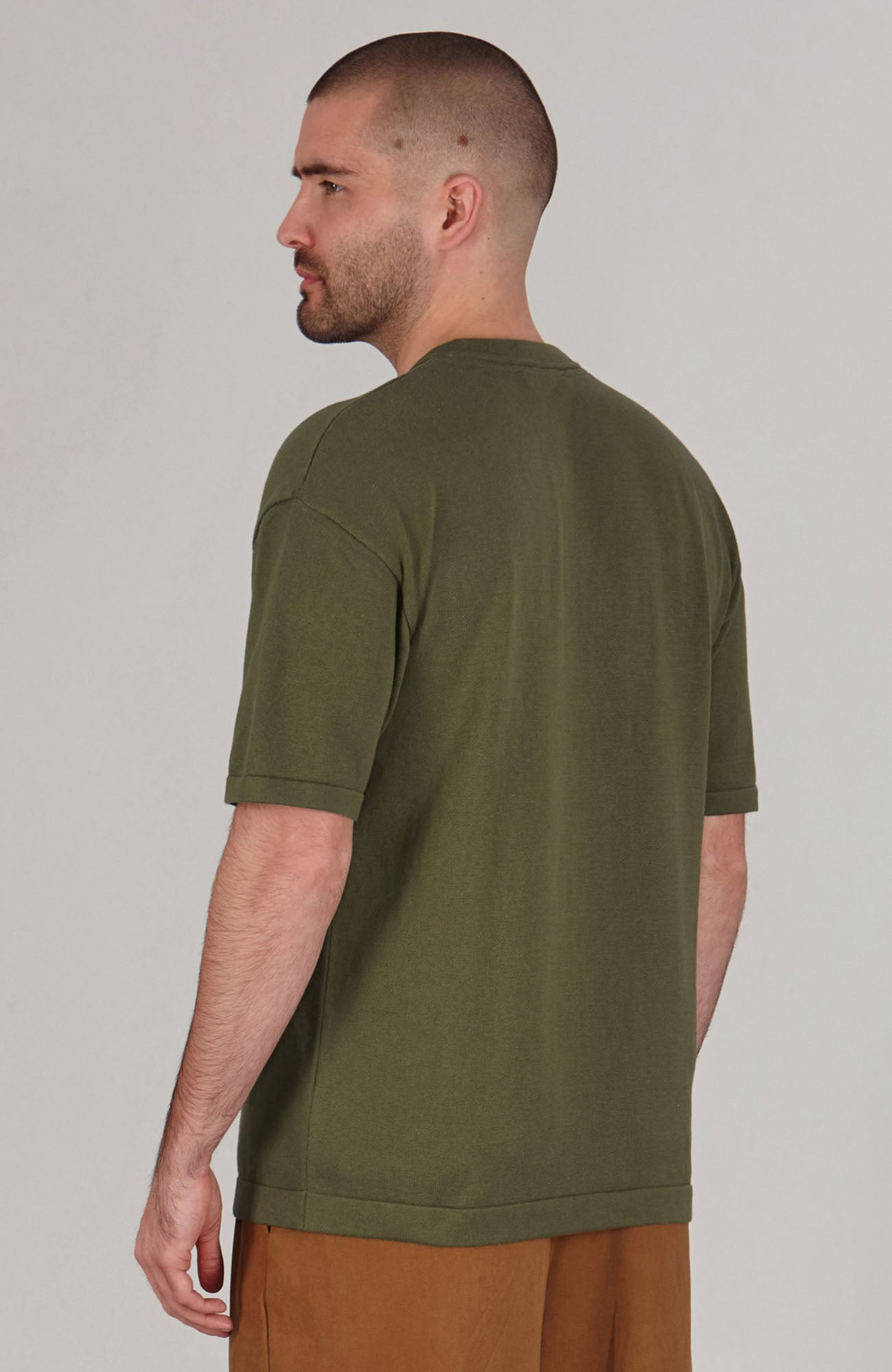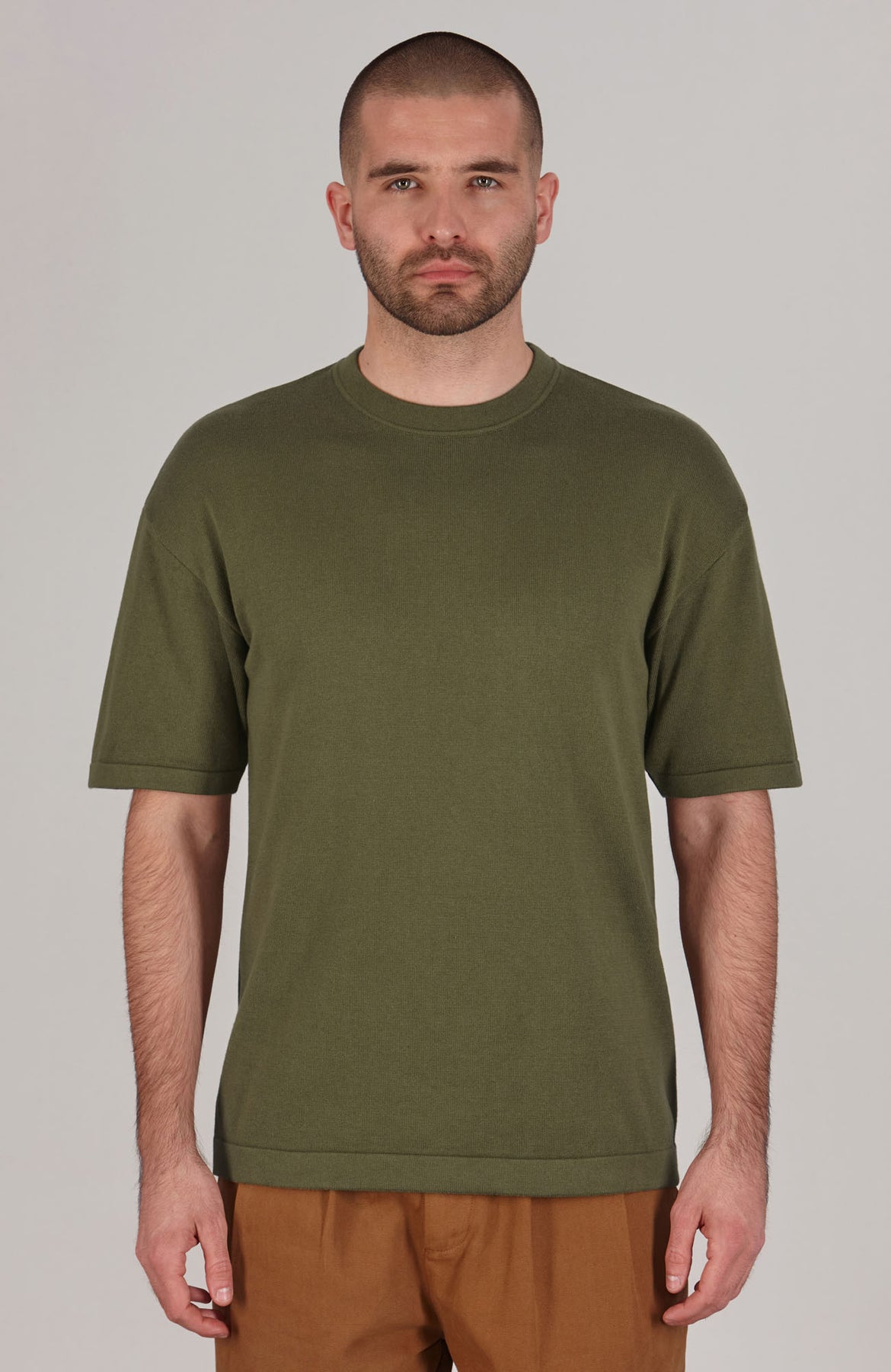 olive mens relaxed fit knitted t-shirt